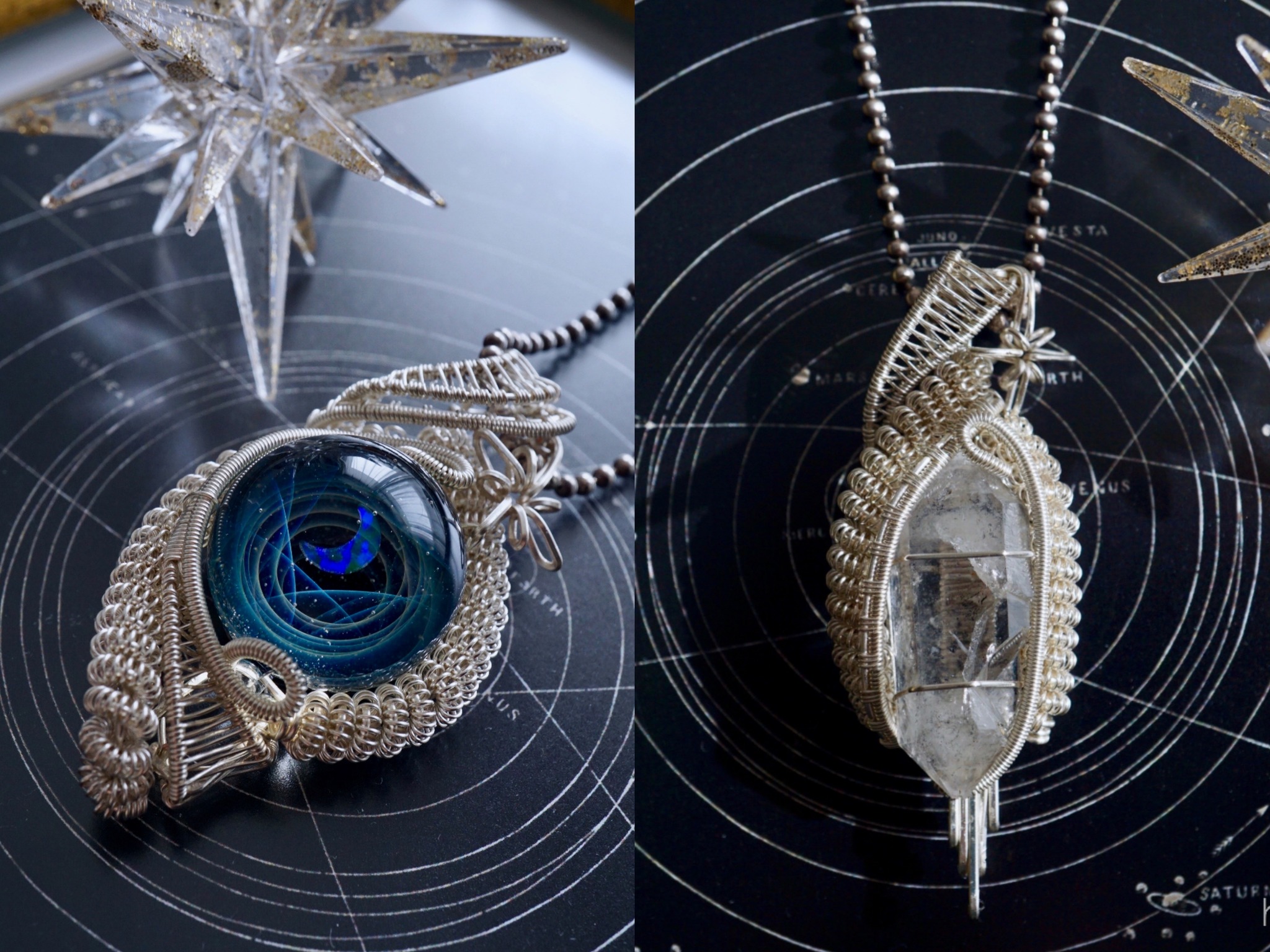 1つ目は、宇宙ガラスを使ったペンダントトップ写真のもの。