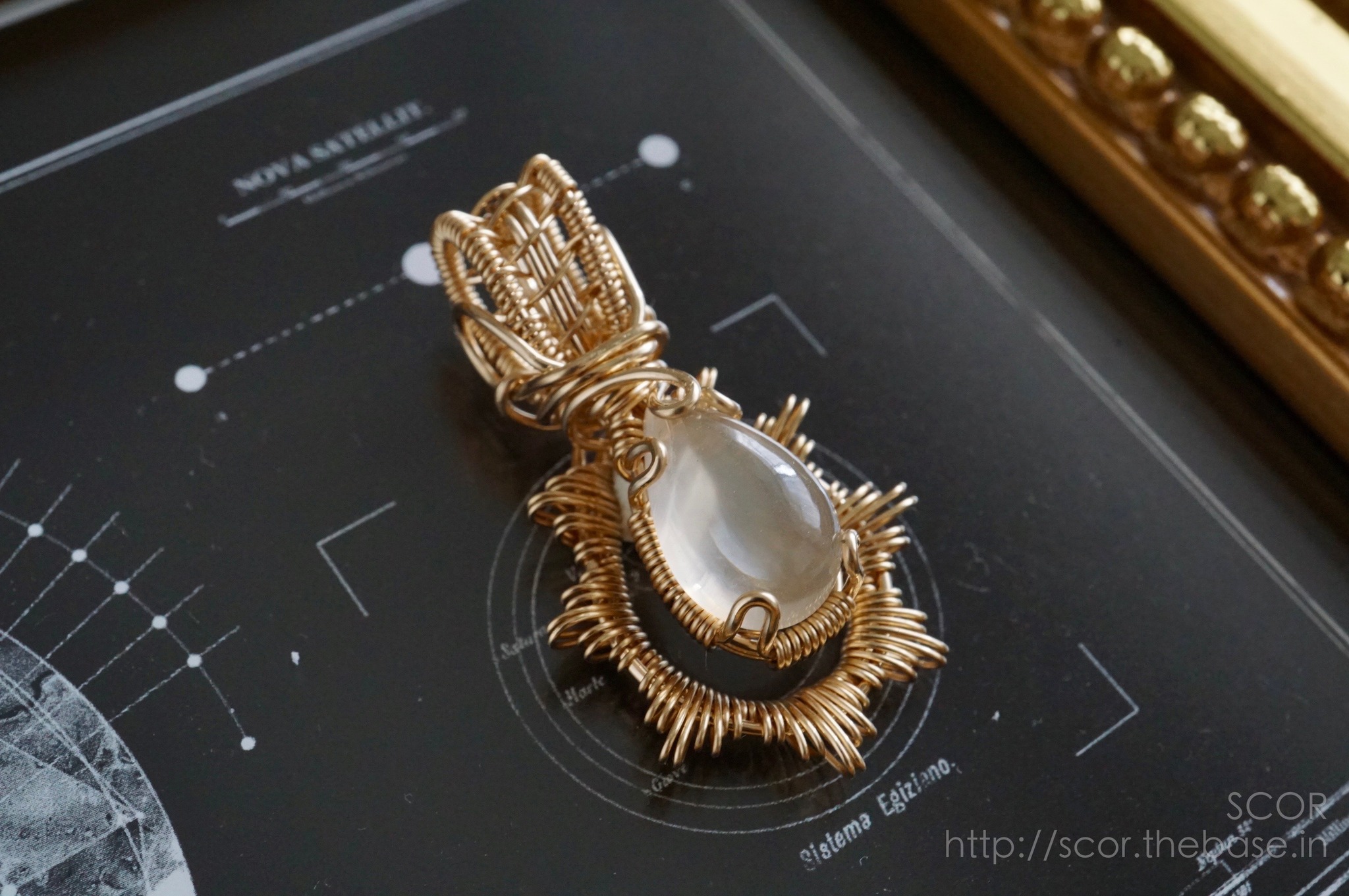 今回ご紹介するのは、日本未発売(未流通?)の「ゴールデンムーンストーン」を、14Kgfワイヤーでお作りしたセミオーダーワイヤーペンダントトップです。