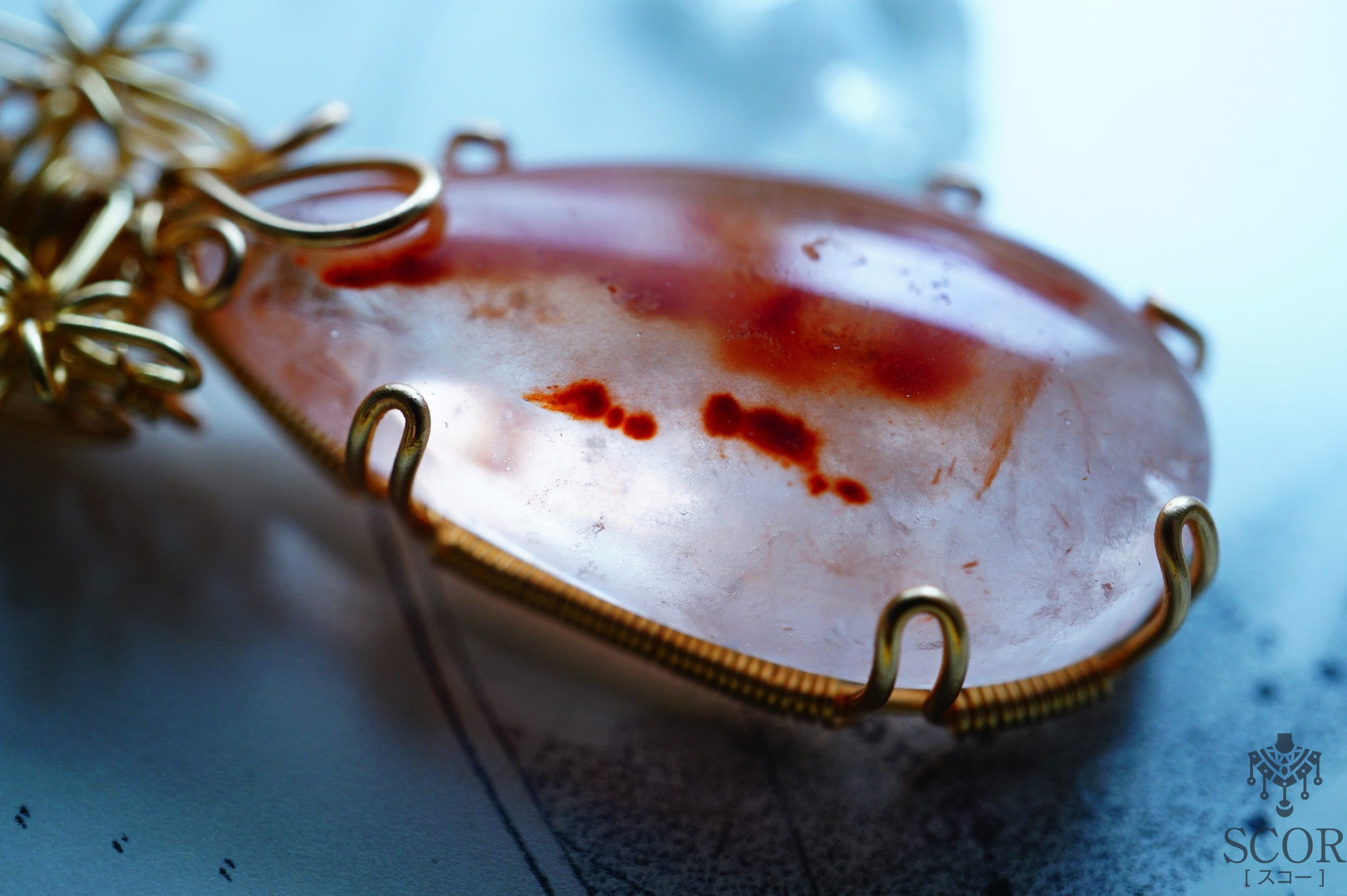 「表面に結晶部分があるんですよ」 とのおすすめを受けて仕入れたイエロースミソナイトを使ったペンダントトップ。
