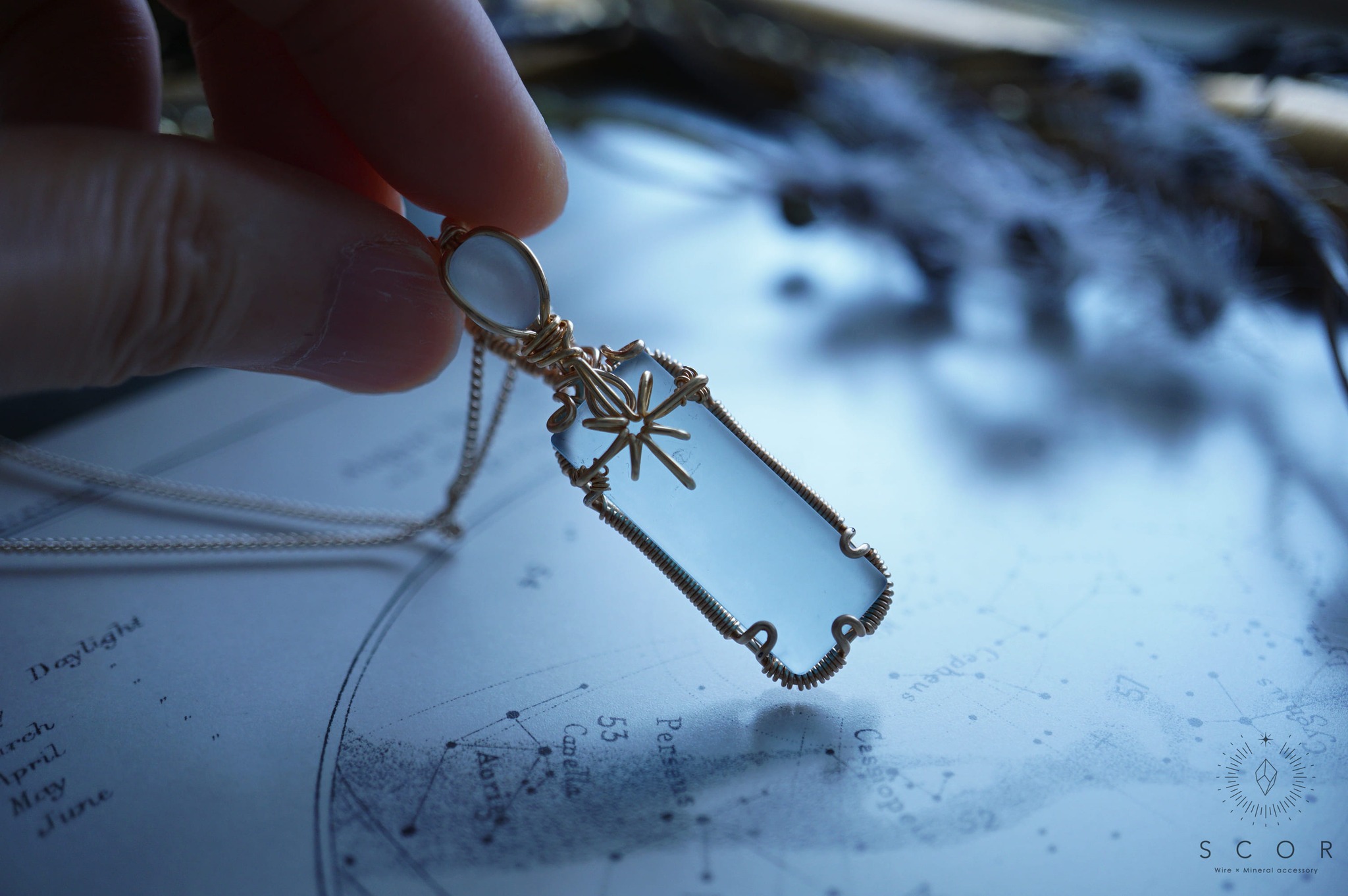◆Two stars - シルキーブルーの星々と金色の光(pt245-ba-g)