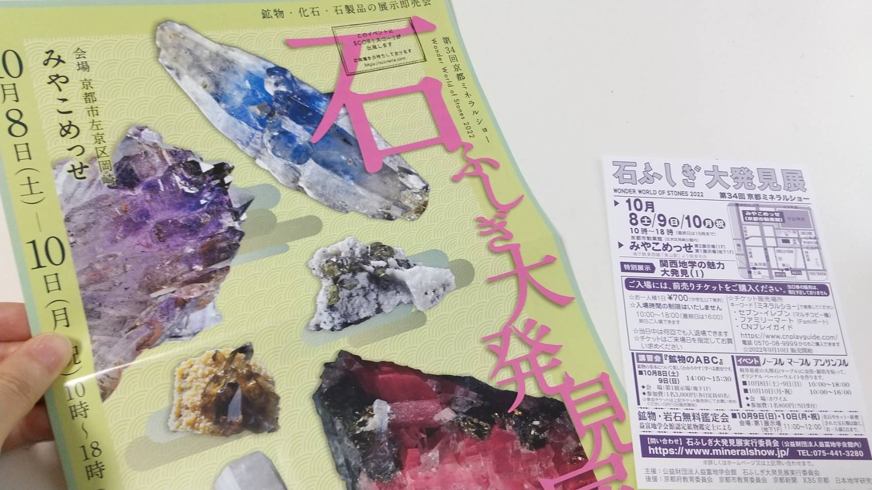 9/11発送分より、SCOR [ スコー ]が出展する関西最大規模のミネラルショー「石ふしぎ大発見展(第34回京都ミネラルショー)」のチラシ(またはご案内ハガキ)を同封しています。