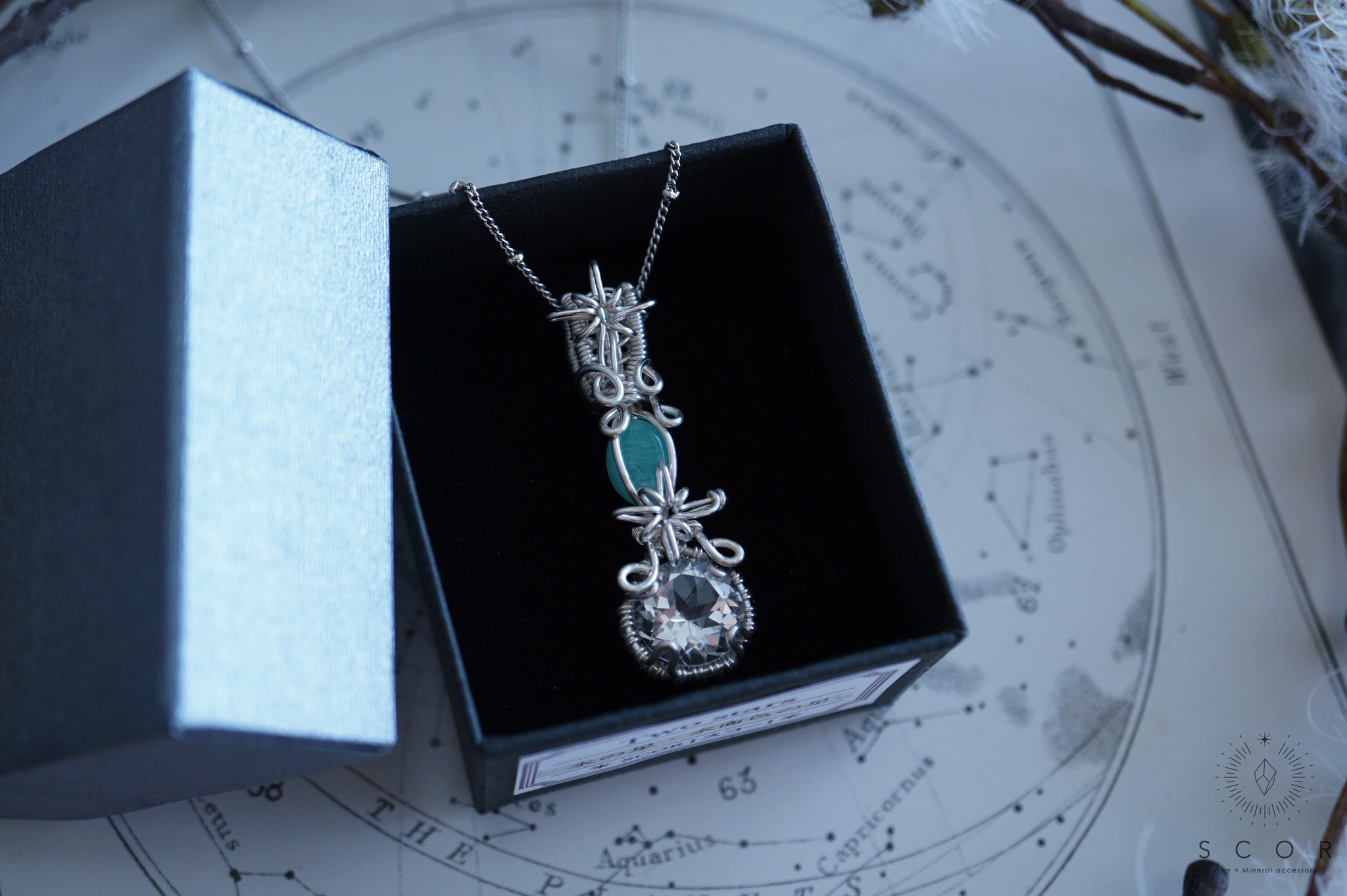◆【動画あり】Two stars - 水の星・水面色の星 (pt379-tr-s) (天然クオーツ・アマゾナイト ペンダントトップ)
