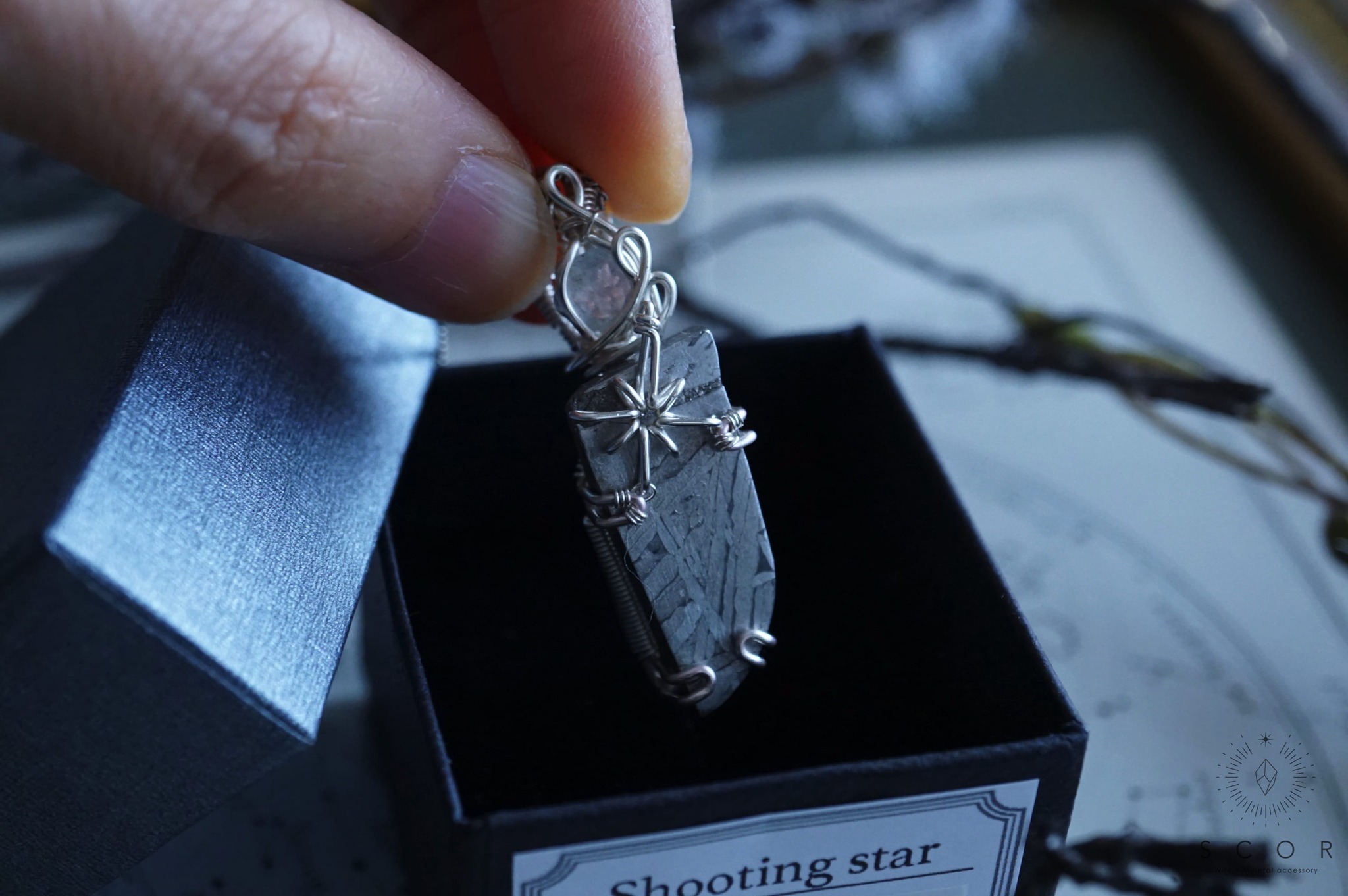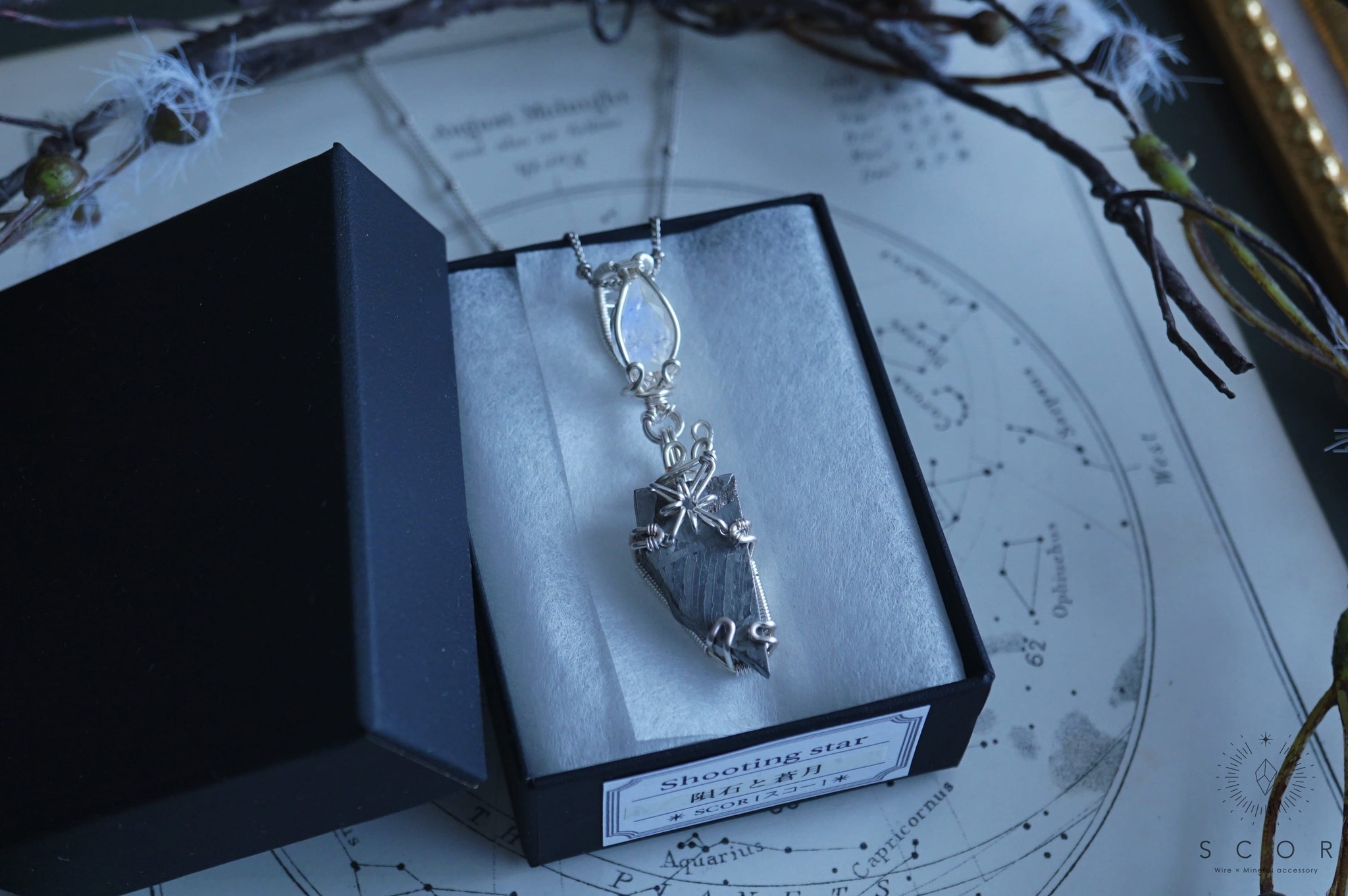 ◆【動画あり】Shooting star - 隕石と蒼月 (pt429-ar-s)(アルタイ隕石・レインボームーンストーン ペンダントトップ)