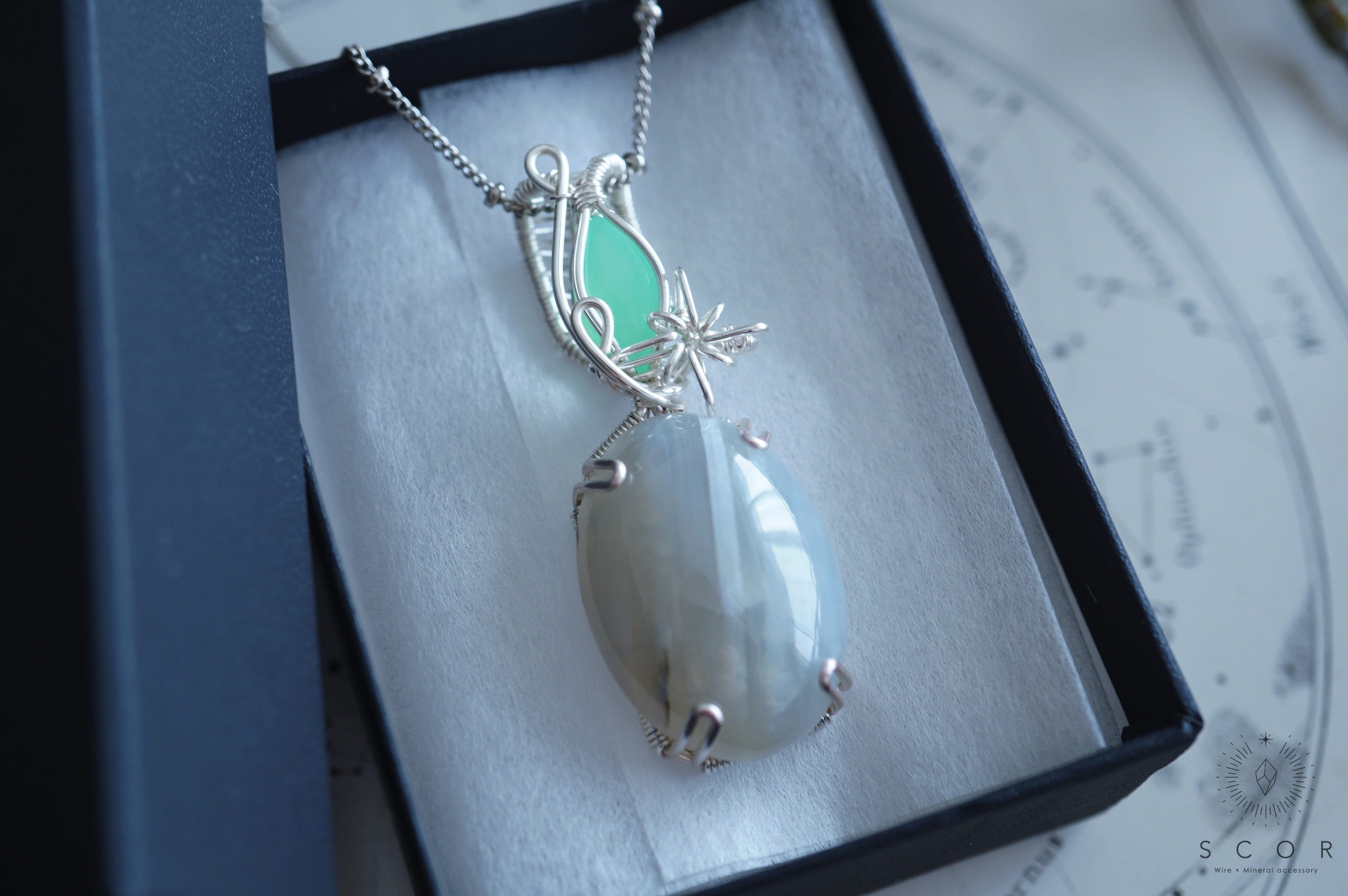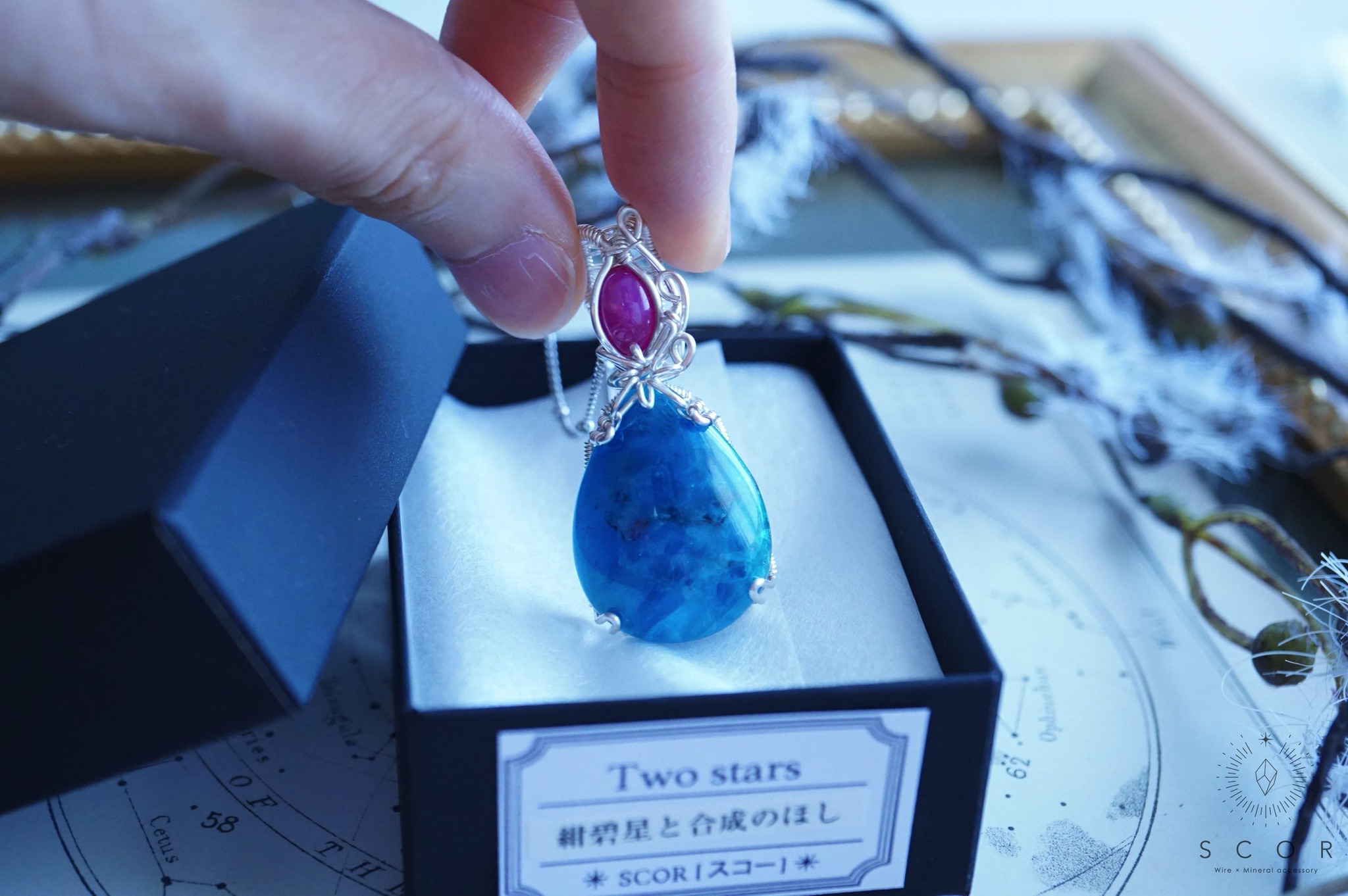 ◆【動画あり】Two stars - 紺碧星と合成のほし(pt464-bs-s)(ブルーアパタイト・合成スタールビー ペンダントトップ)
