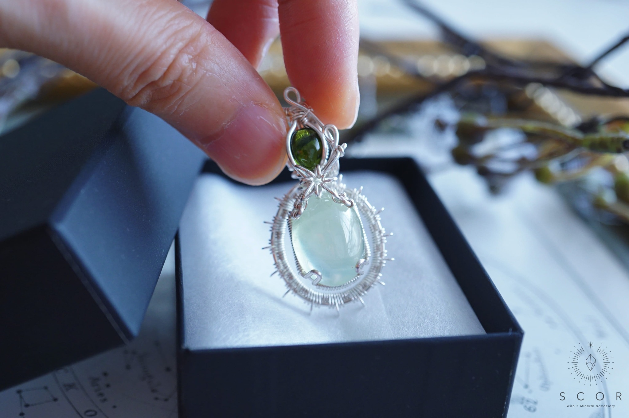 ◆【動画あり】Two stars - 葡萄星・衛星・流星 #2 (pt473-pt-s) (プレナイト・トルマリン ペンダントトップ)