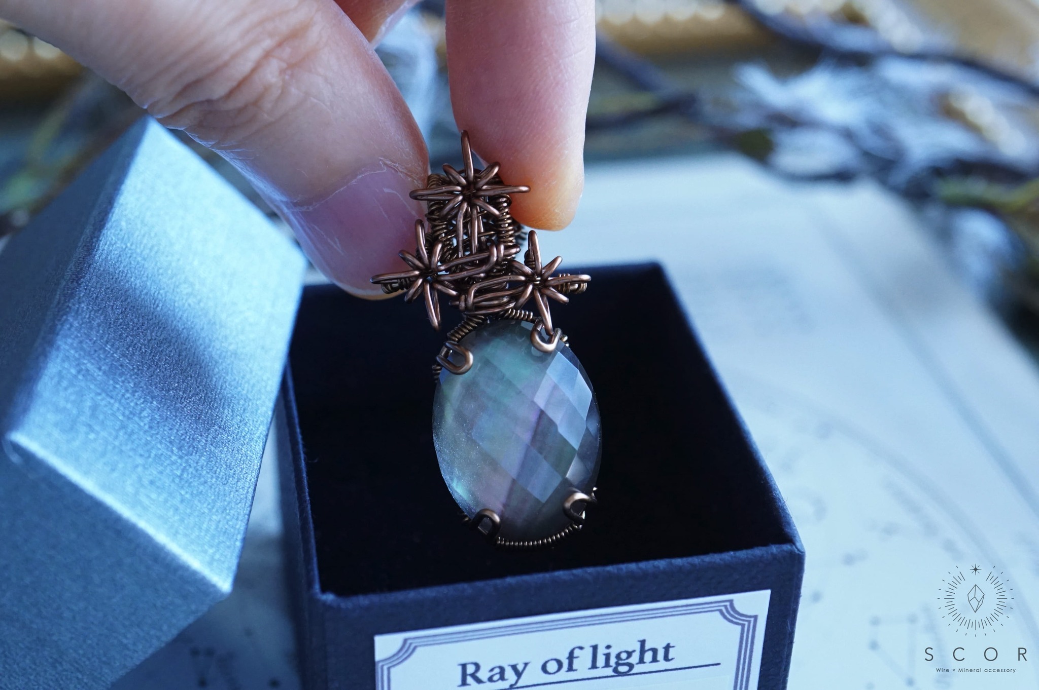 ◆【動画あり】Ray of light - 幻緑星 (pt495-r-g)(ラブラドライト ペンダントトップ)