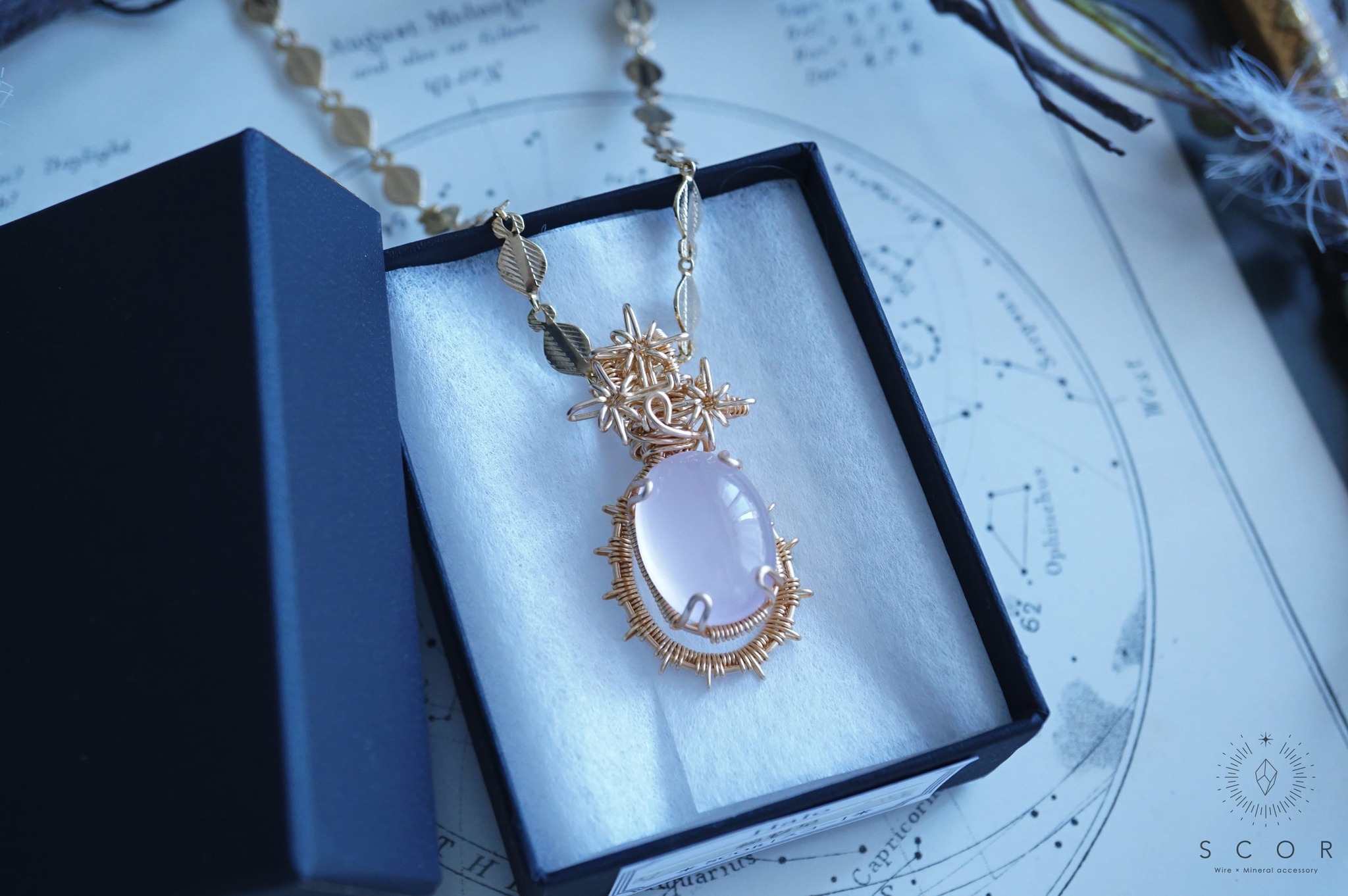 ◆【動画あり】Halo - 線彩星 (pt500-r-g)(ローズクオーツ ペンダントトップ)
