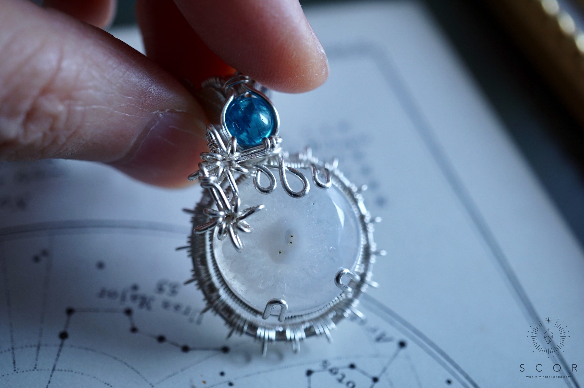◆【動画あり】Halo - 氷の星と青い衛星 (pt520-sa-s)(ソーラークオーツ・アパタイト ペンダントトップ)