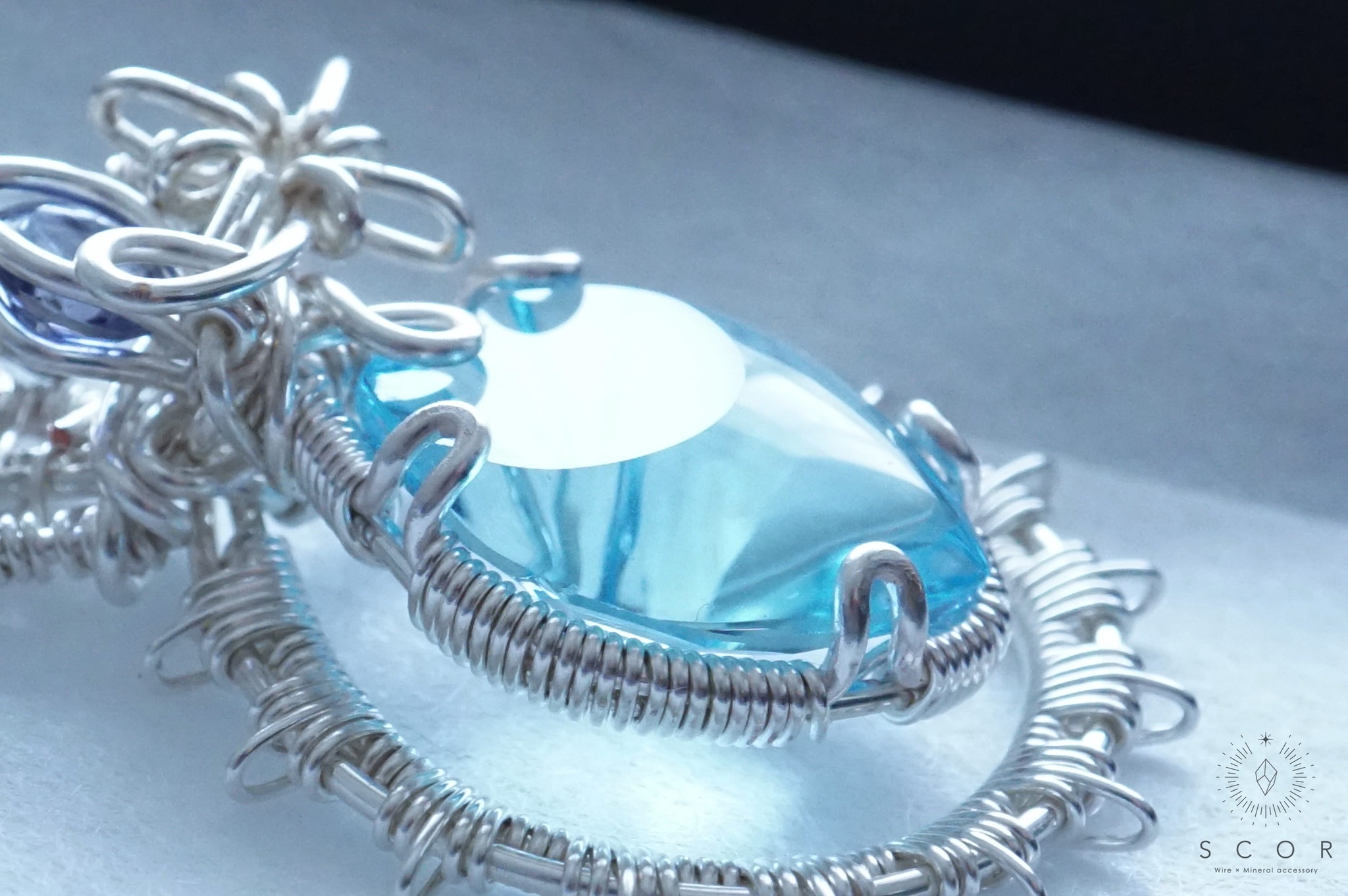 ◆【動画あり】Halo - 青氷星 (pt550-sc-sg)(シーブルーカルセドニー ・クリソプレーズ ペンダントトップ)