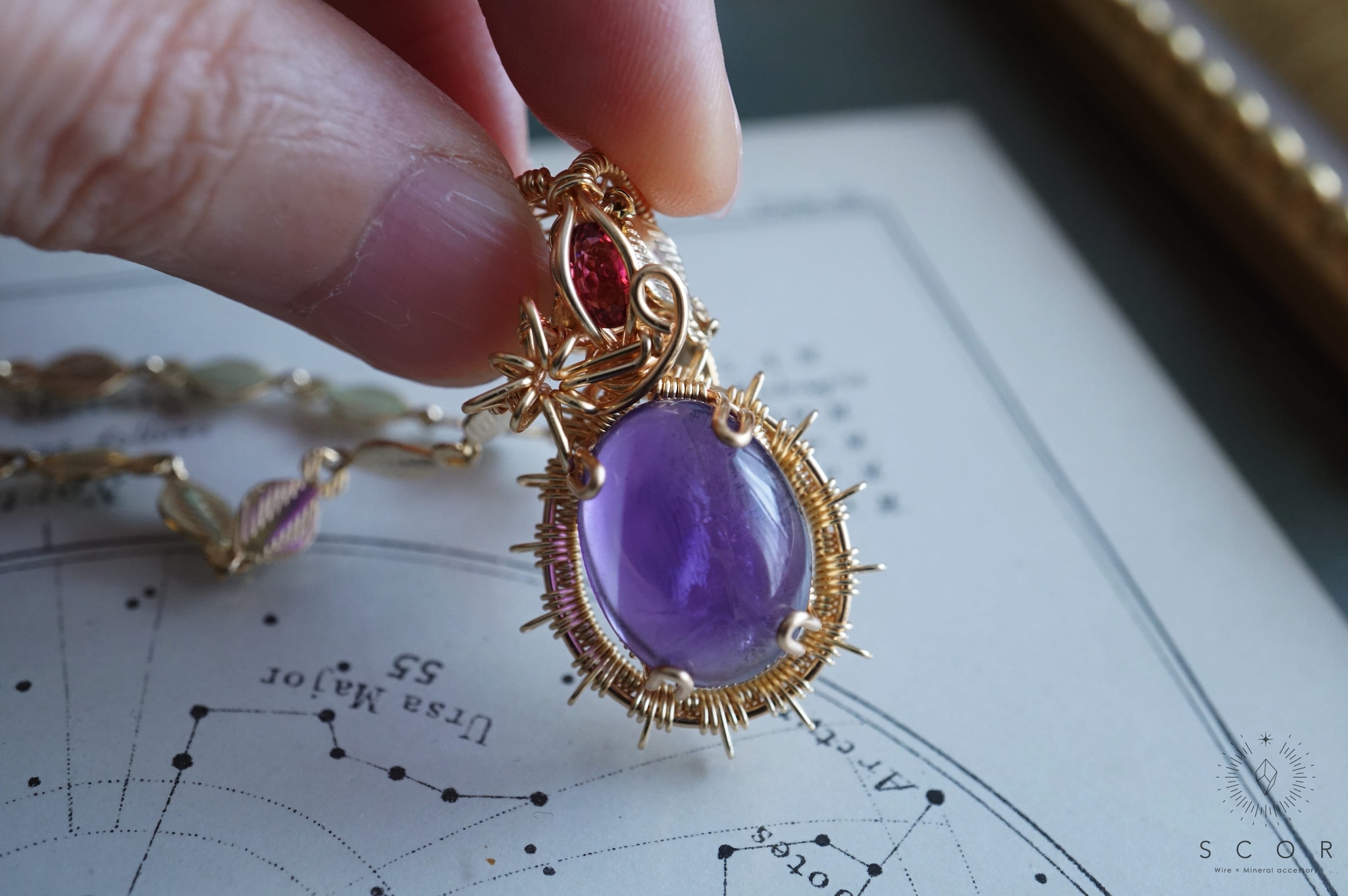 ◆【動画あり】Halo - 2つの薔薇星 (pt582-rr-g)(ロードクロサイト × 2 ペンダントトップ)