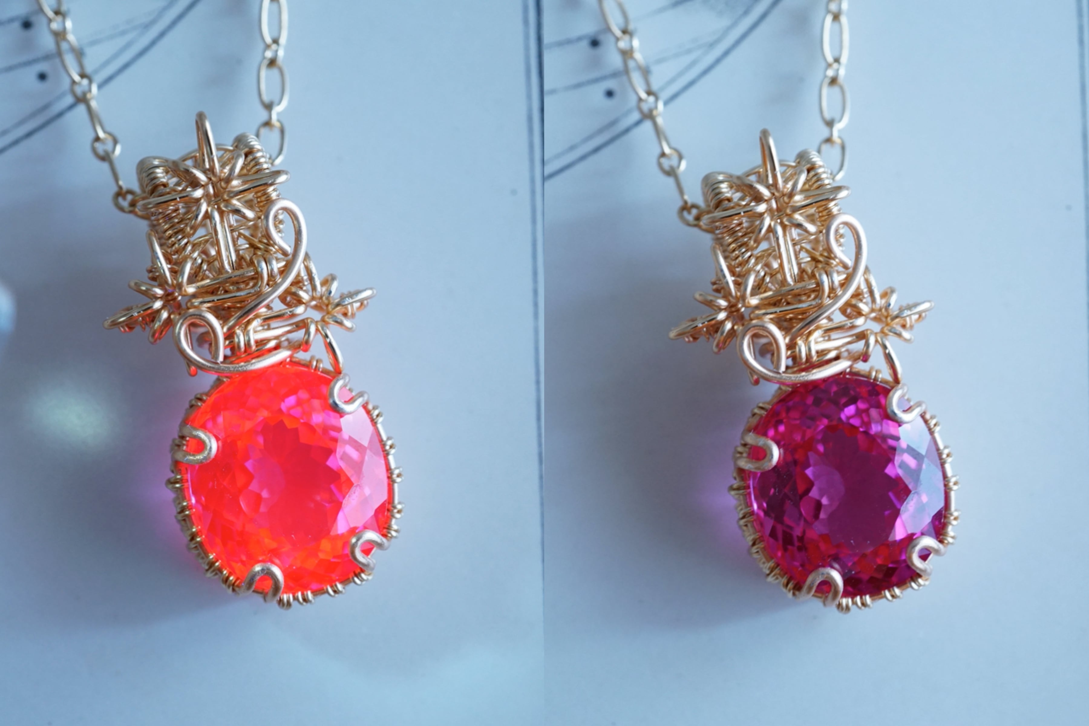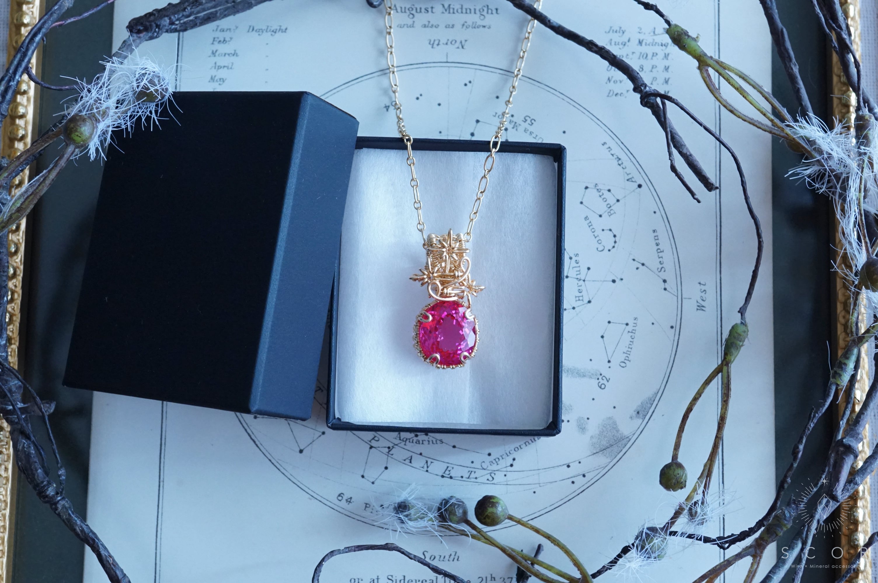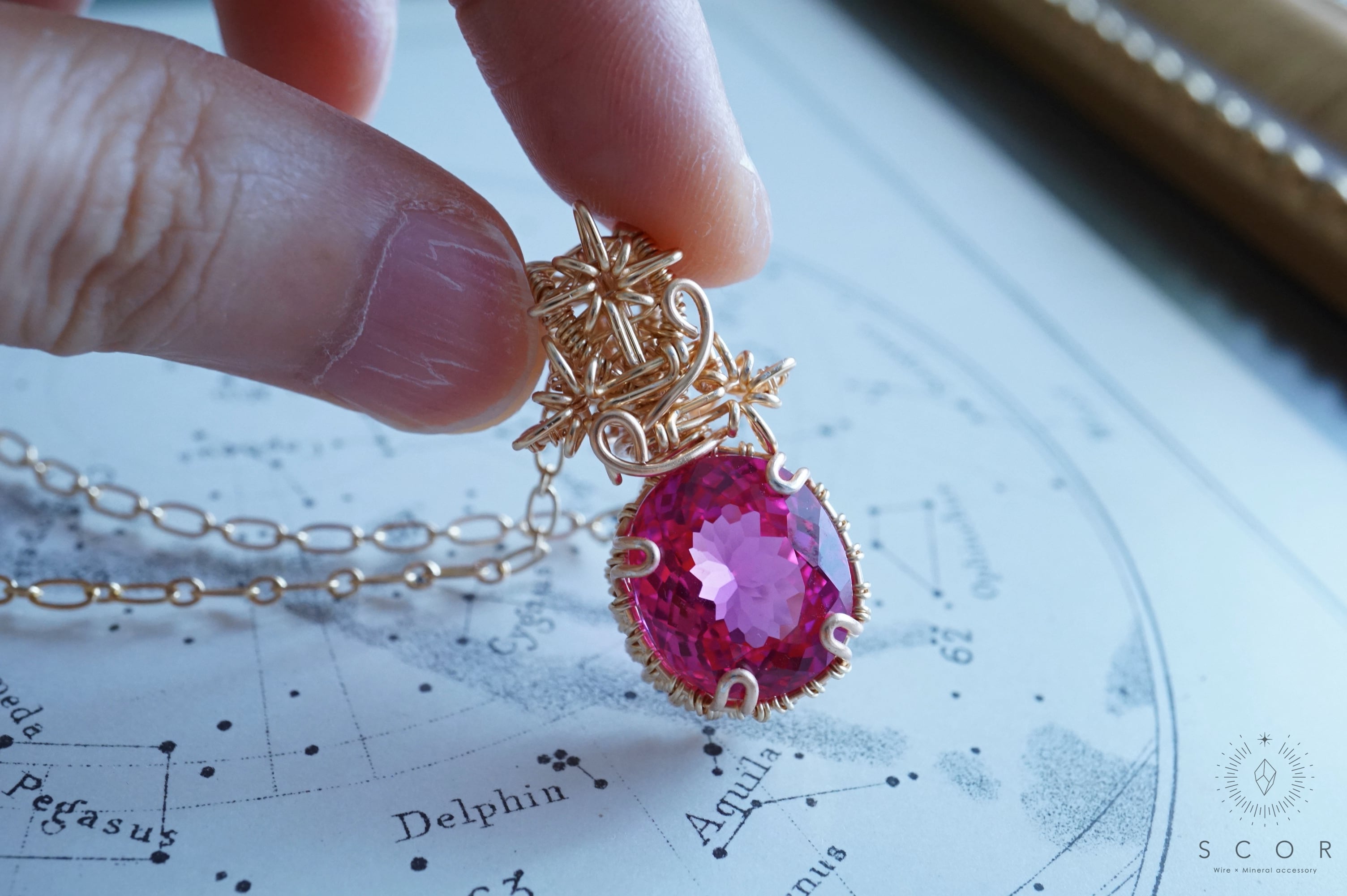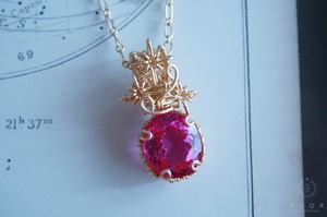 【動画あり】Ray of light - 合成のほし #9 (pt557-s-g)(合成ピンクサファイア ペンダントトップ)