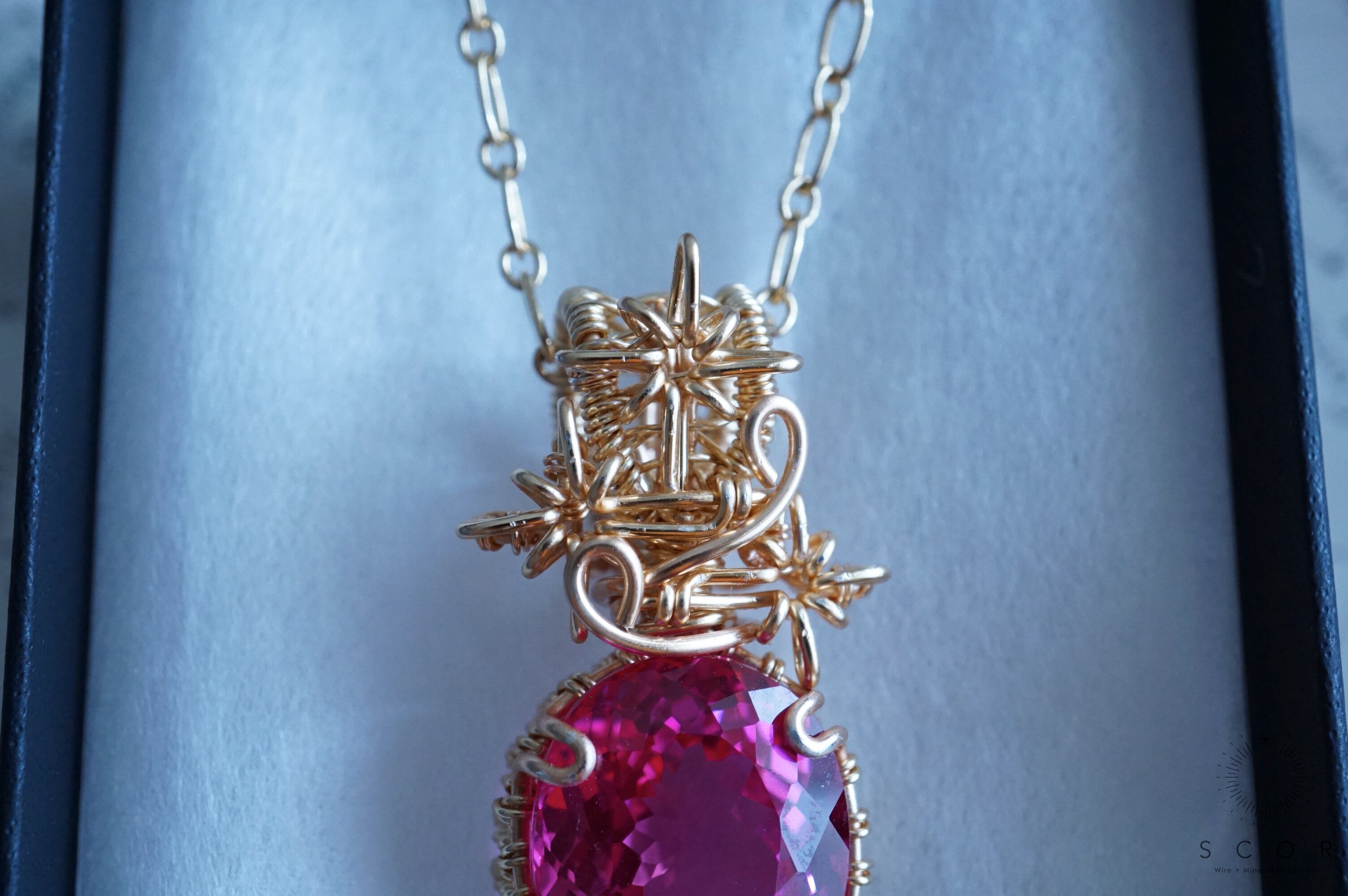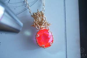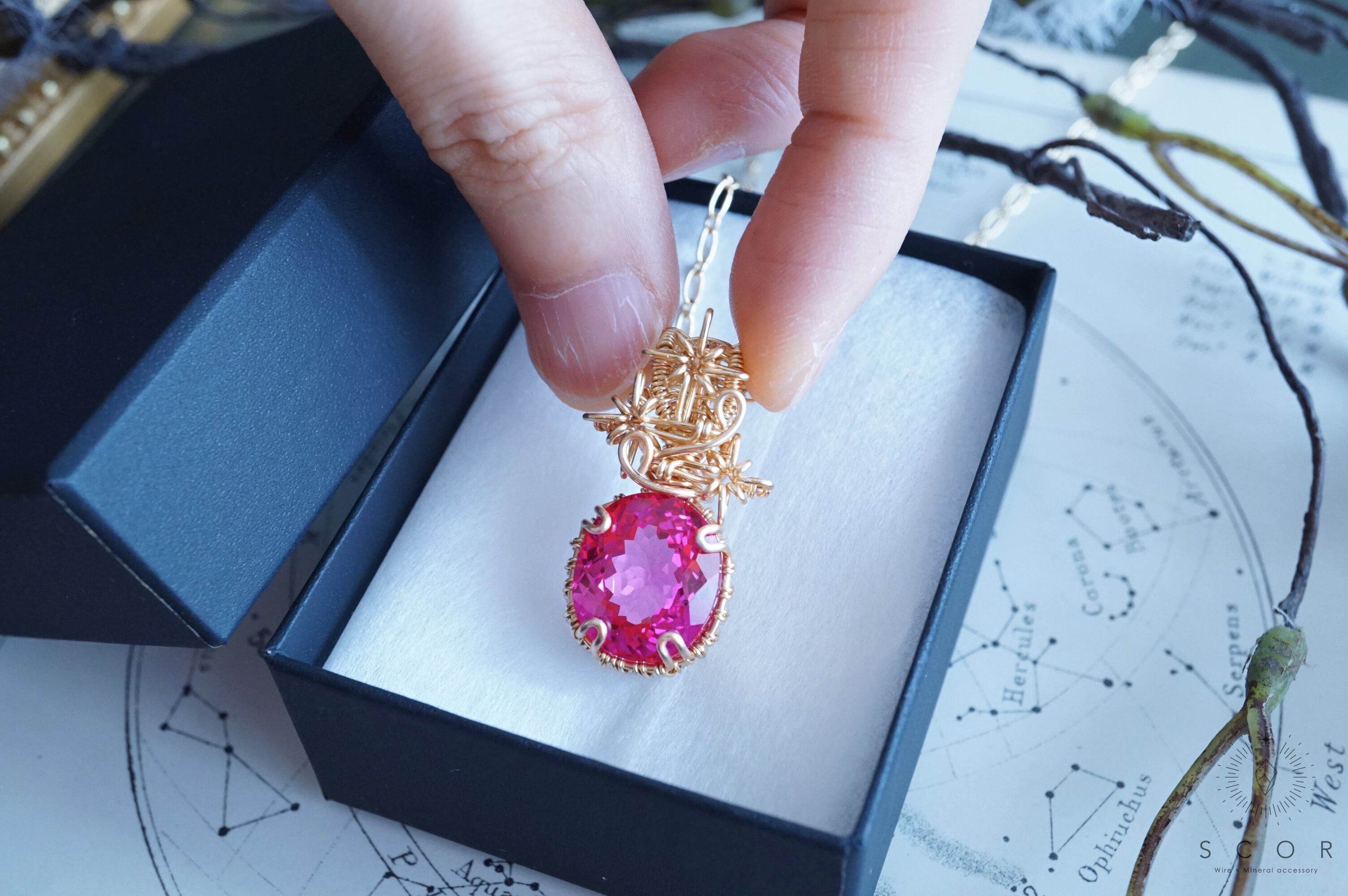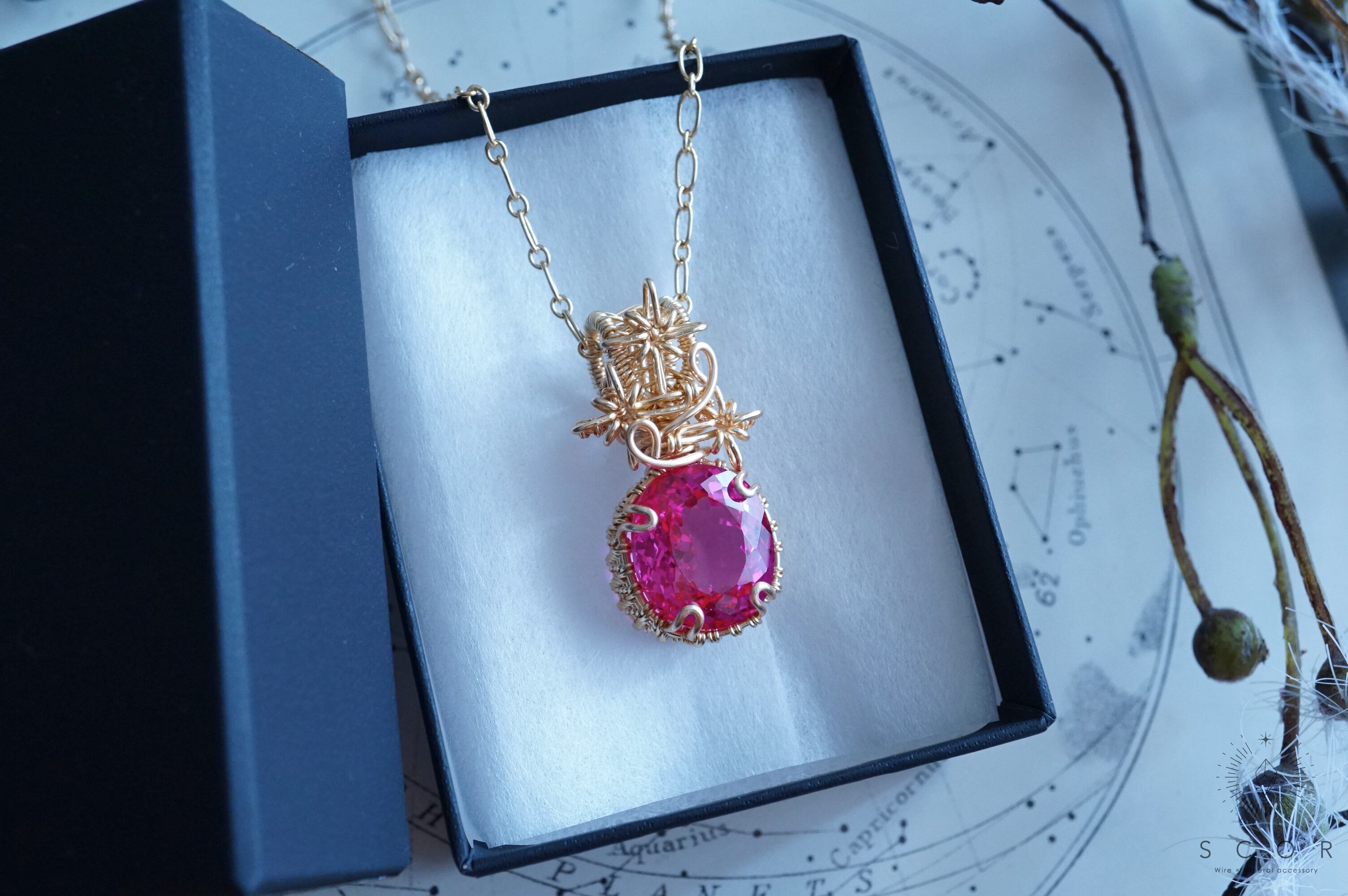 【動画あり】Ray of light - 合成のほし #9 (pt557-s-g)(合成ピンクサファイア ペンダントトップ)