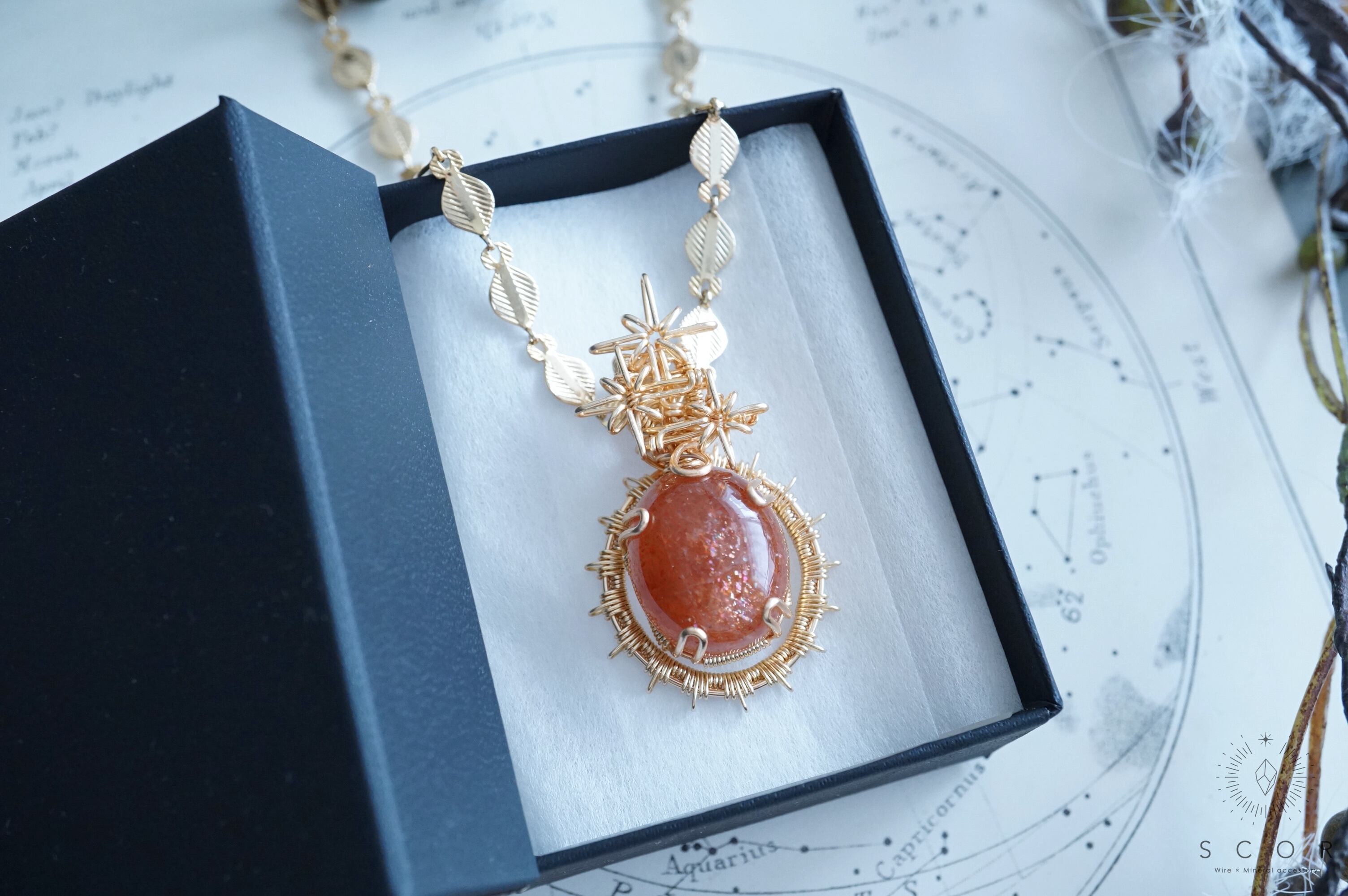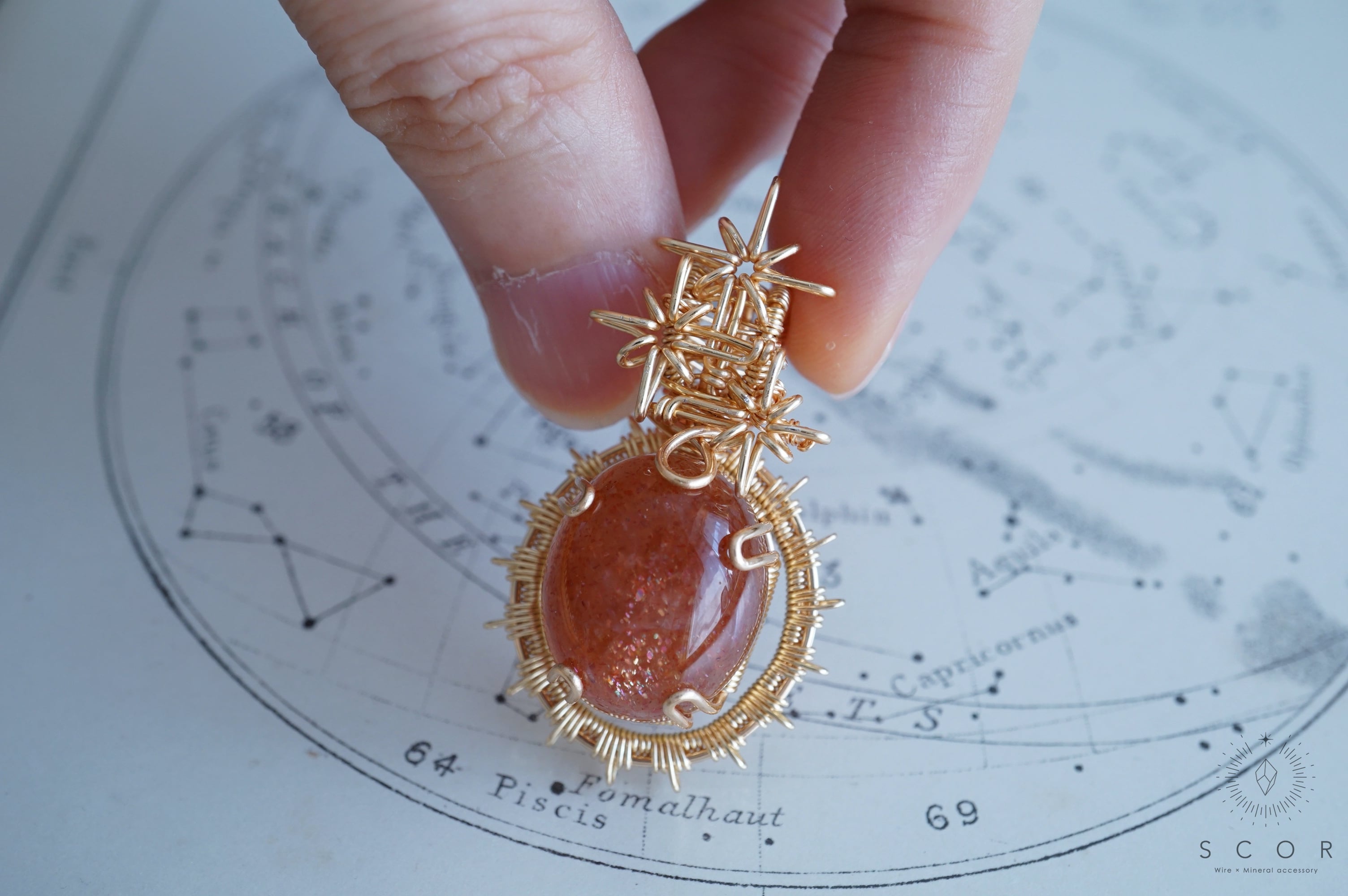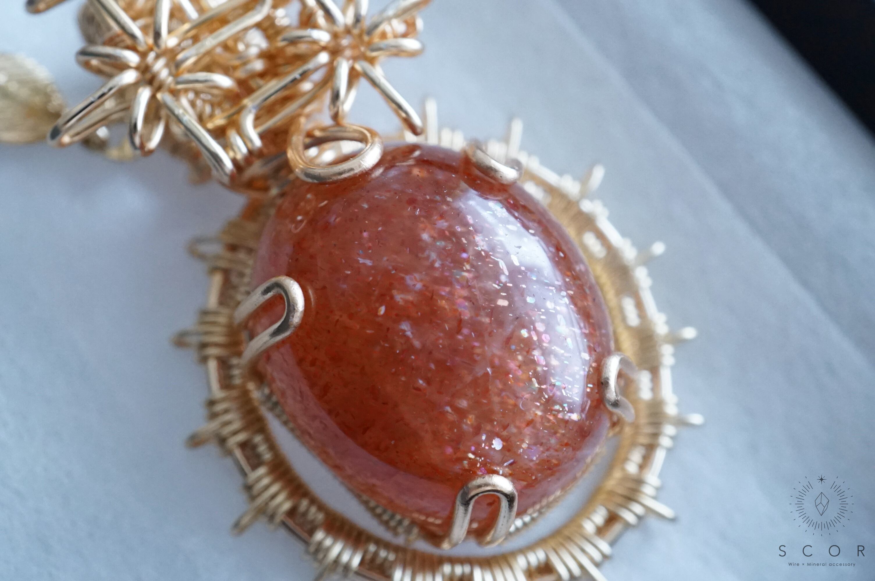 【動画あり】Halo - 箔片恒星 (pt566-s-g)(サンストーン ペンダントトップ)