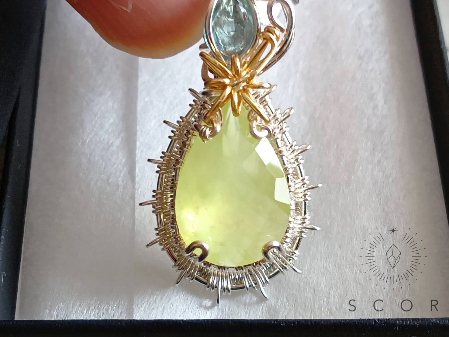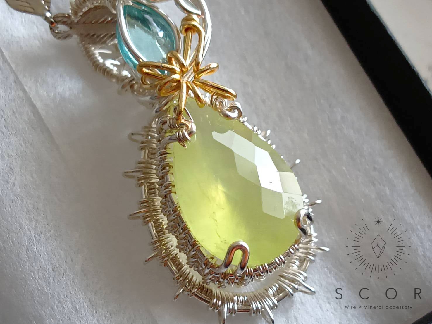 プレナイトは、緑がかったレモンイエローが印象的なファセットカットのピースを使用。