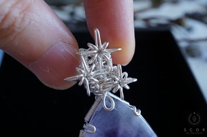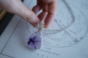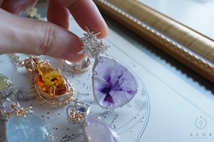 アメジストは、裾広がりなペアシェイプのカボションを使用。