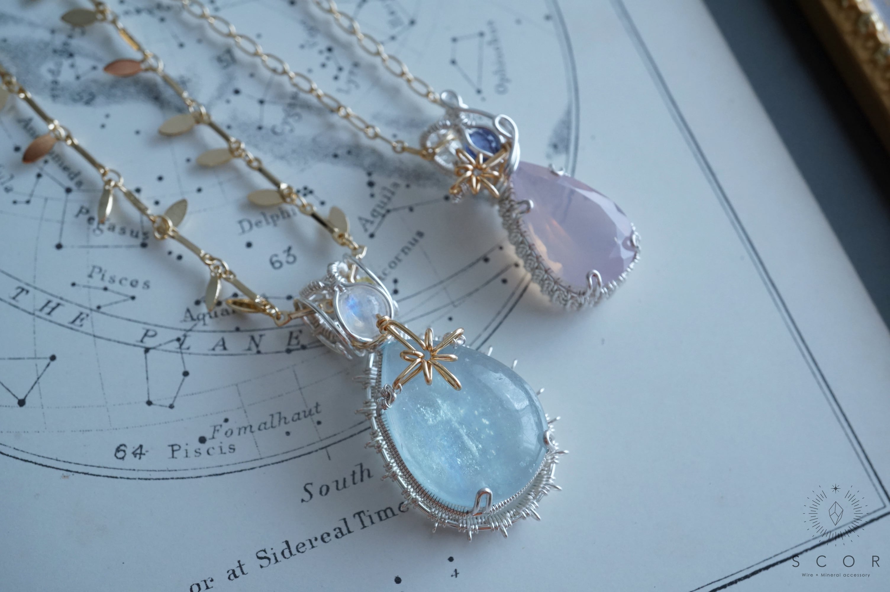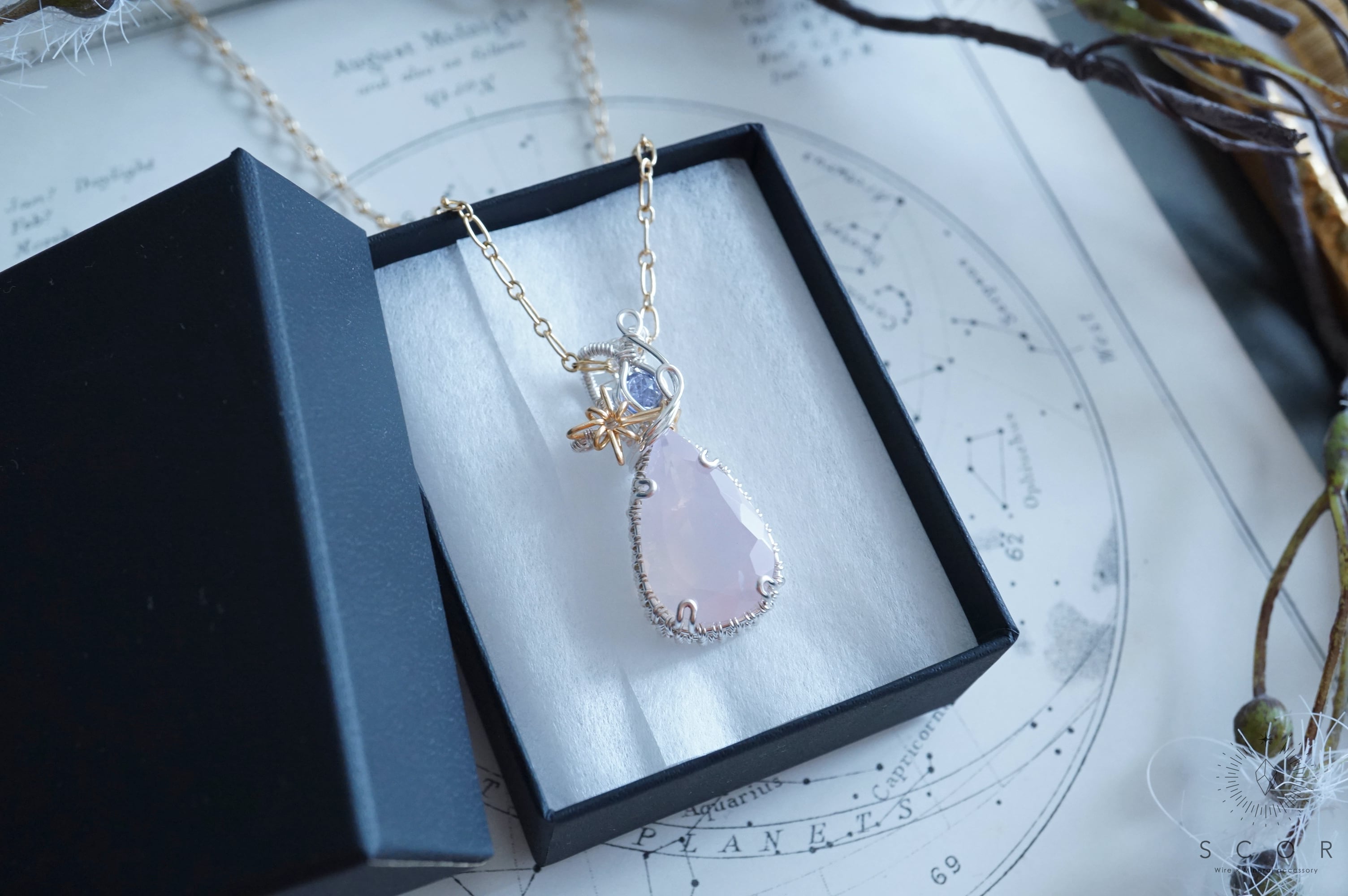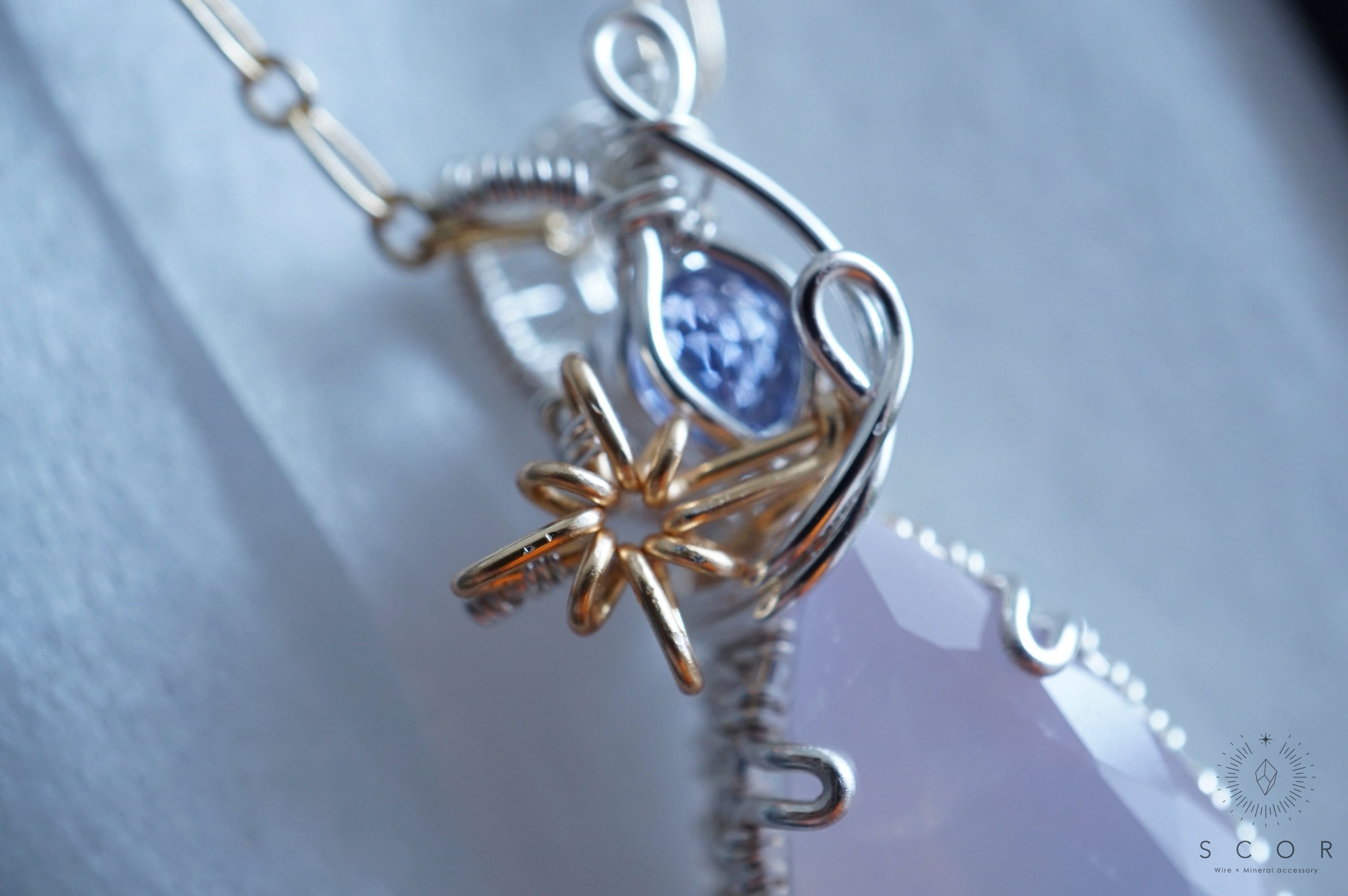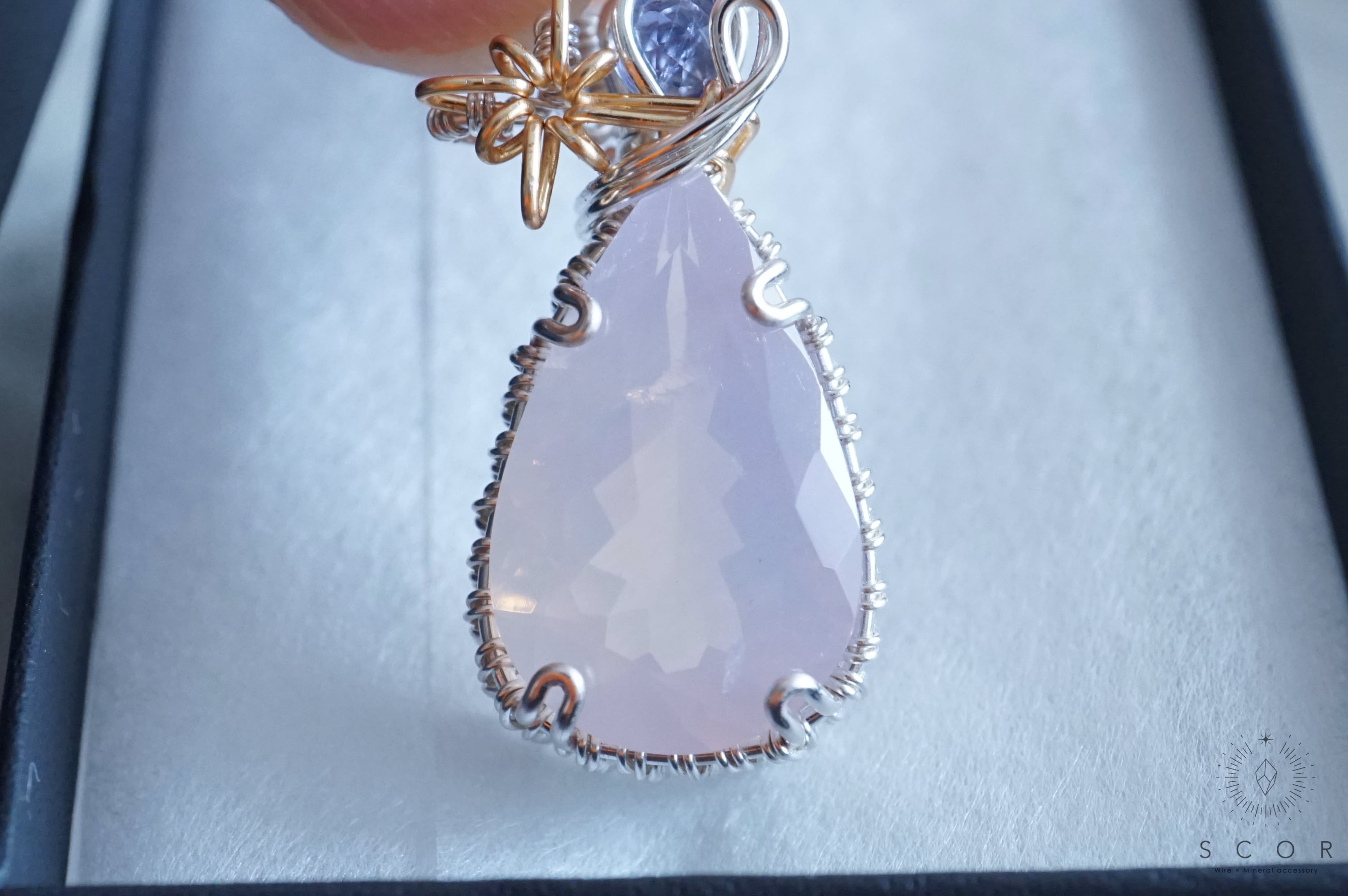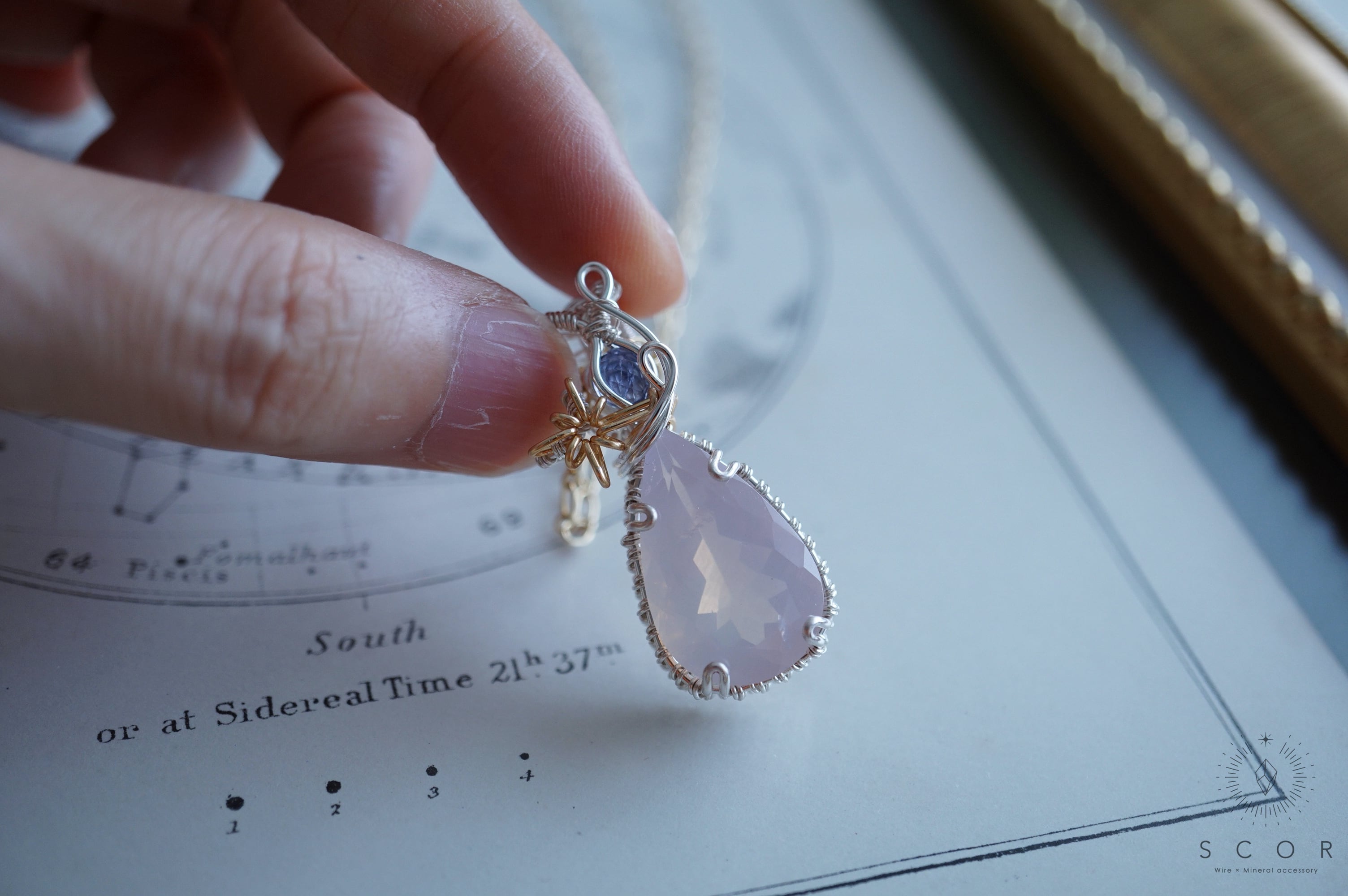 【動画あり】Ray of light - 桜薫衣星 (pt570-r-sg)(ラベンダーローズクオーツ・アイオライト ペンダントトップ)