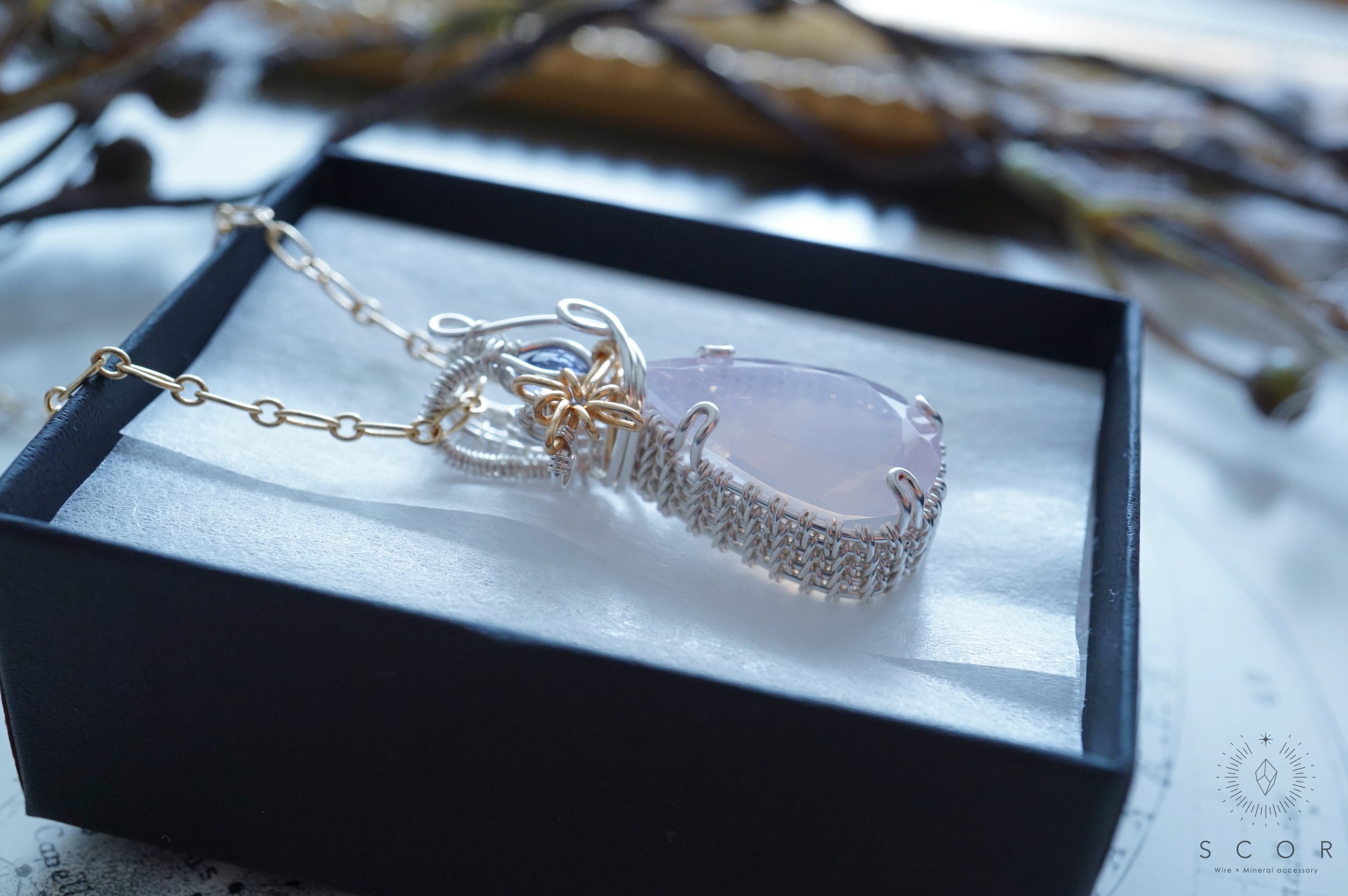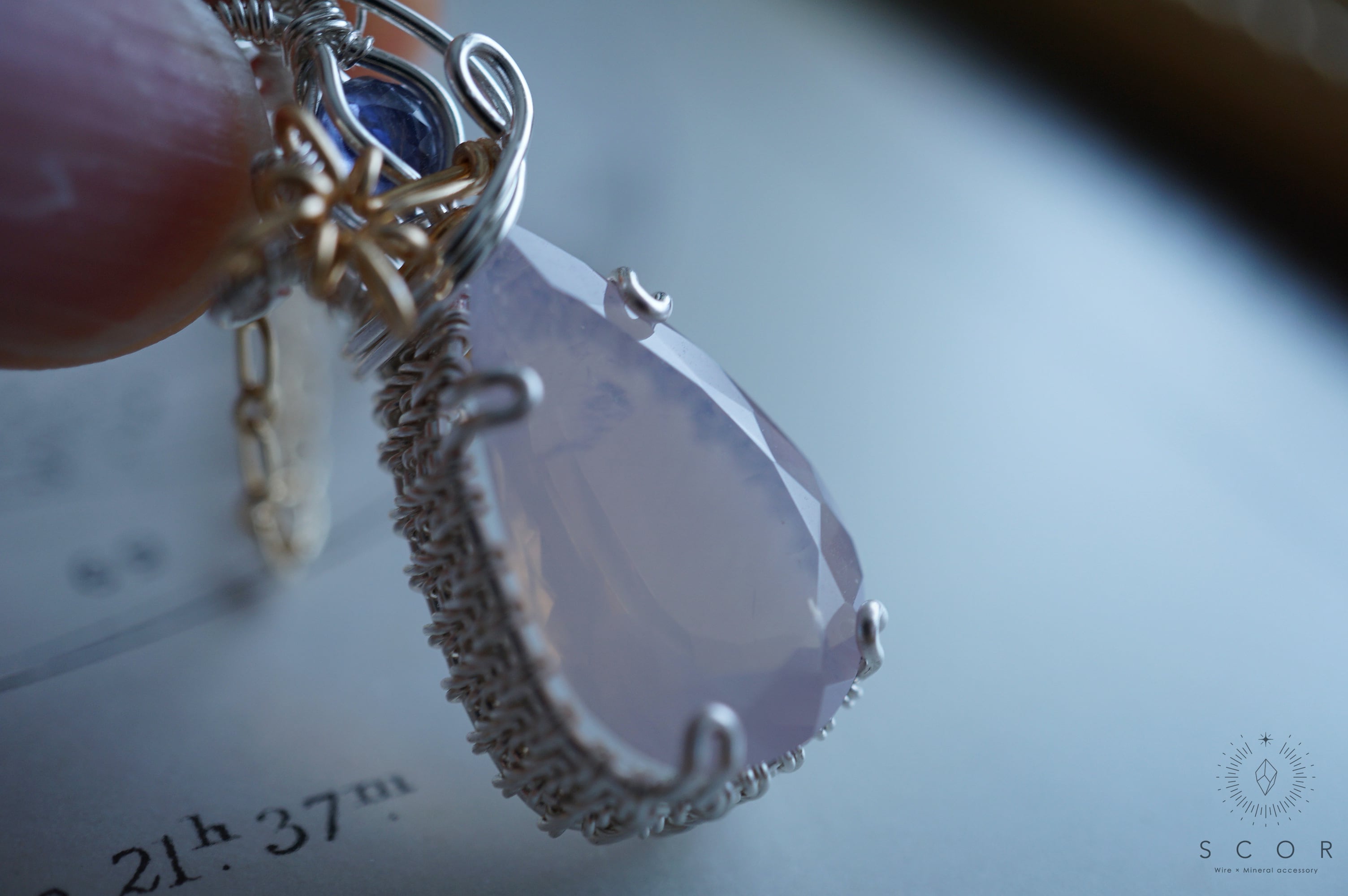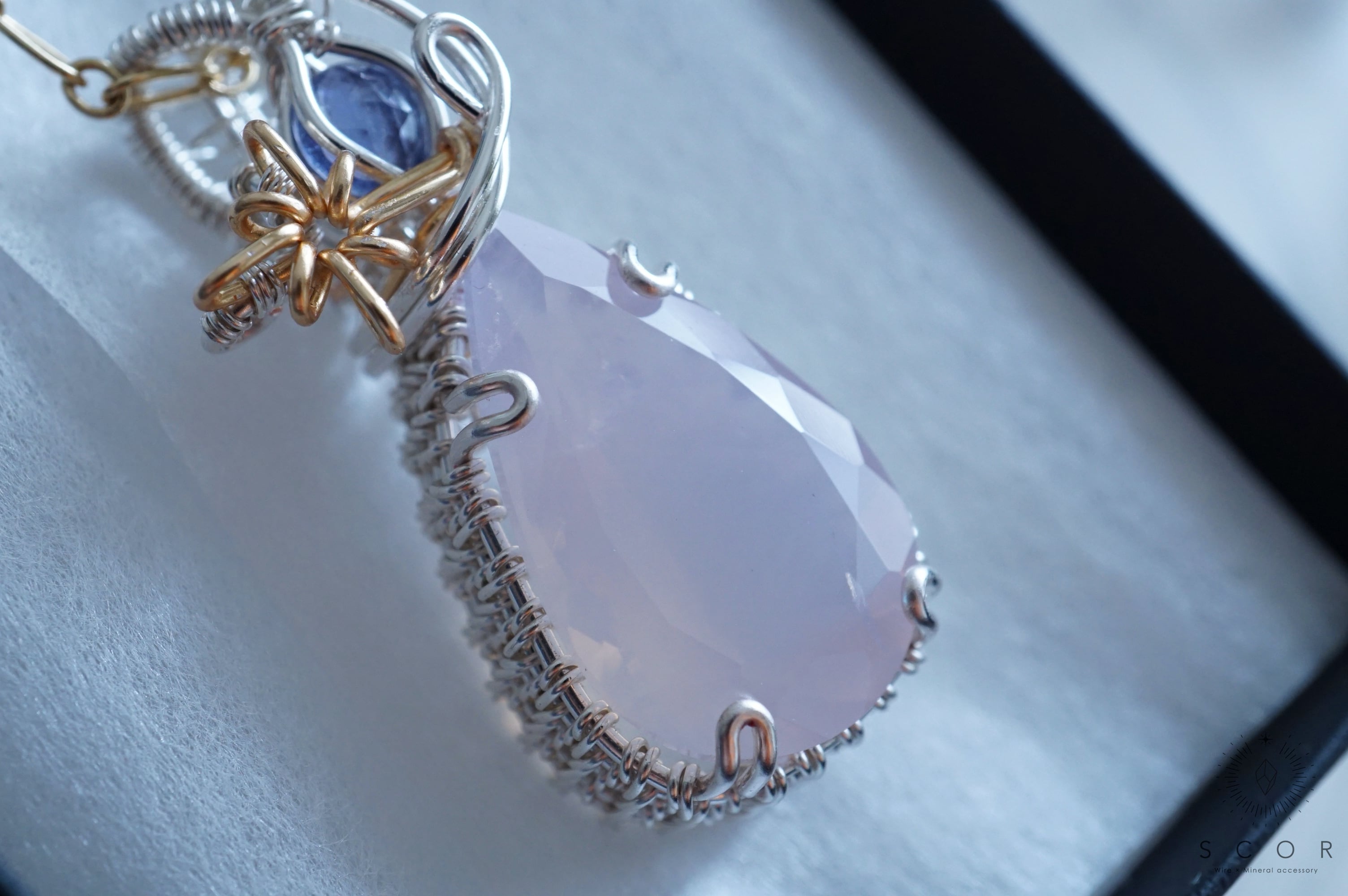 ラベンダーローズクオーツとアイオライトを使ったペンダントトップです。