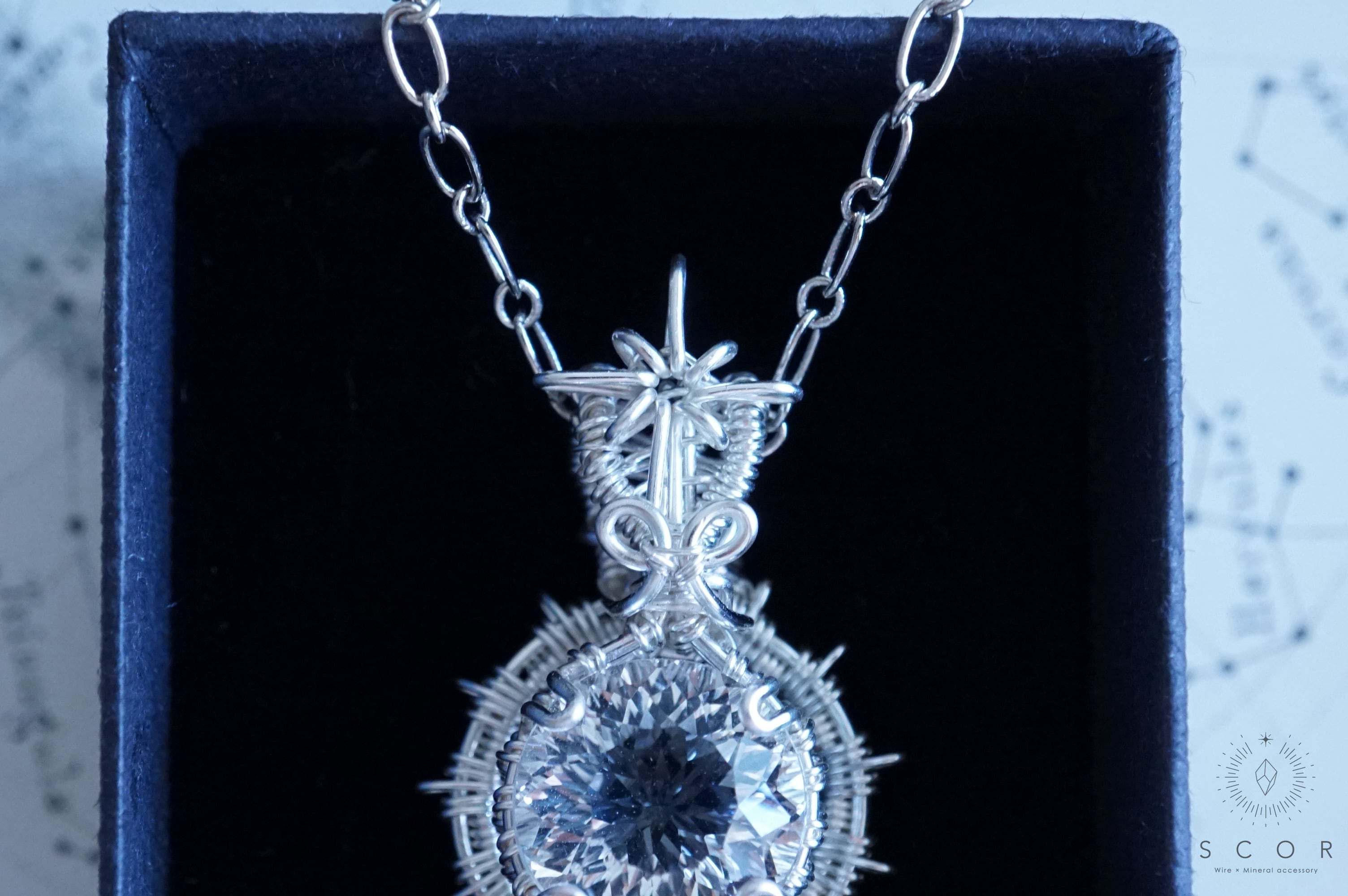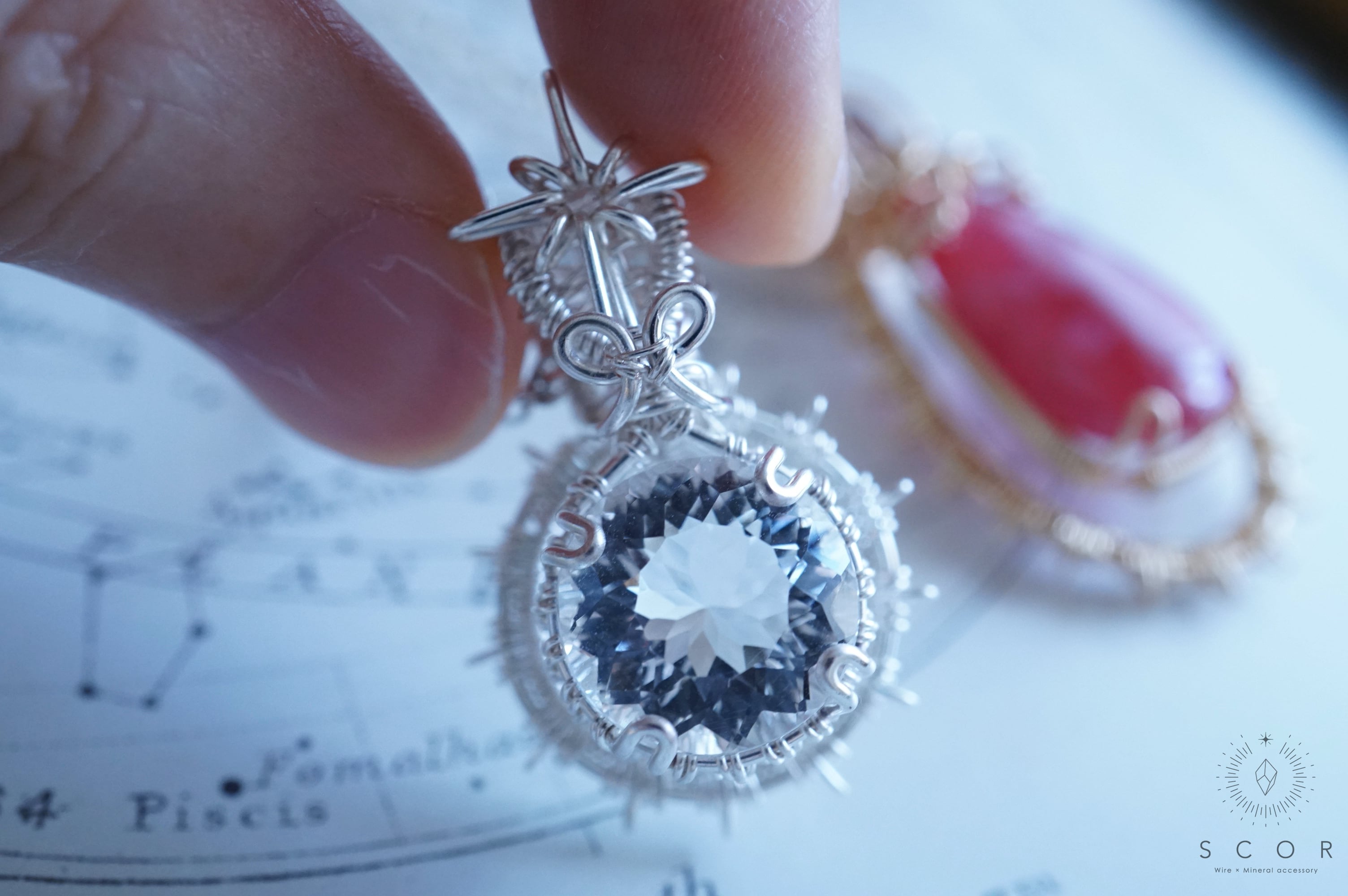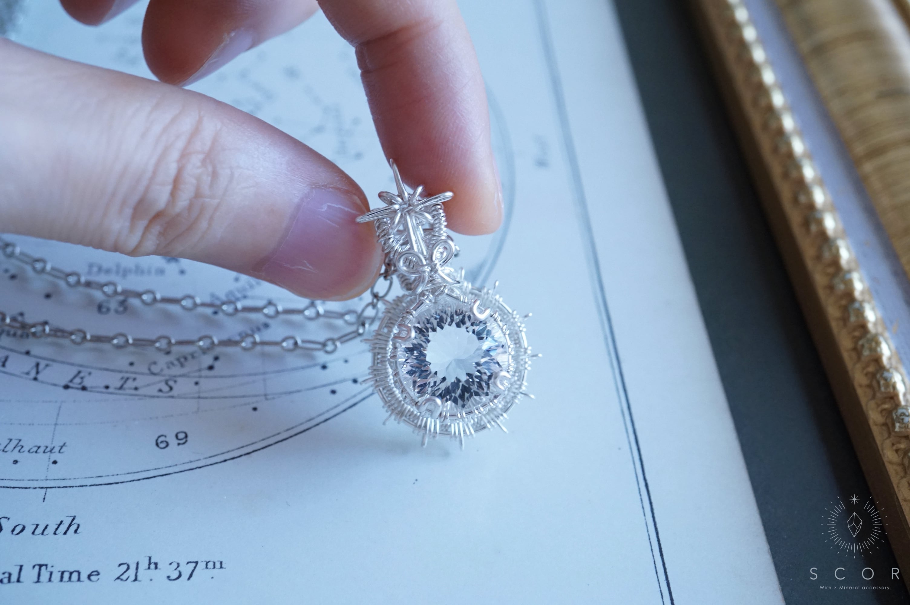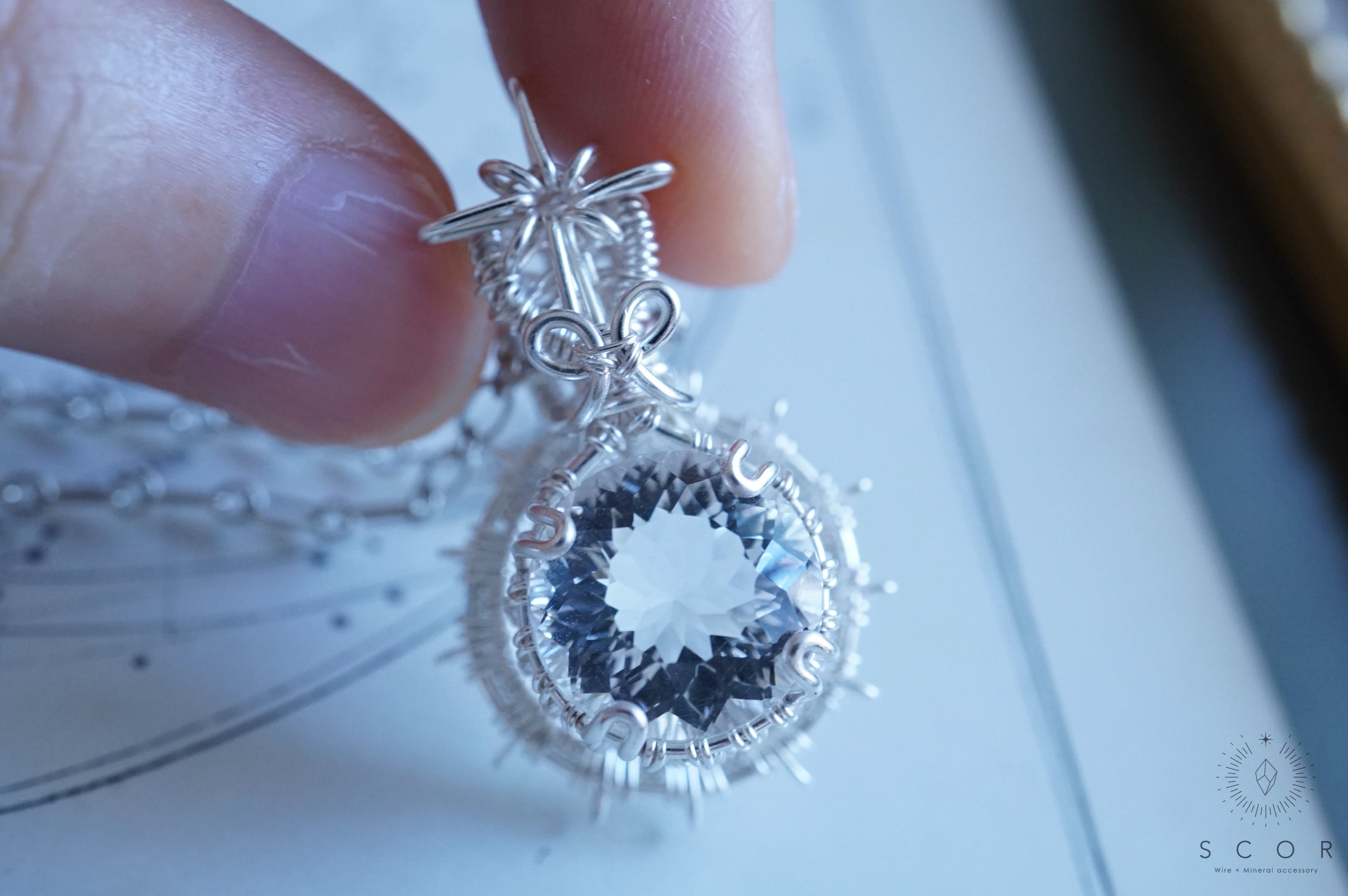 【動画あり】Halo - 煌めきの花星 (pt576-q-s)(水晶 ペンダントトップ)