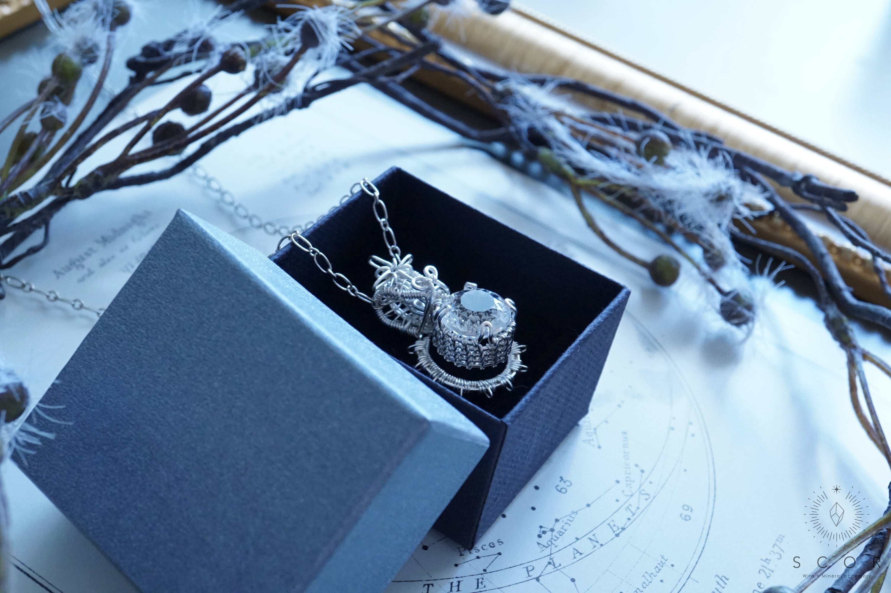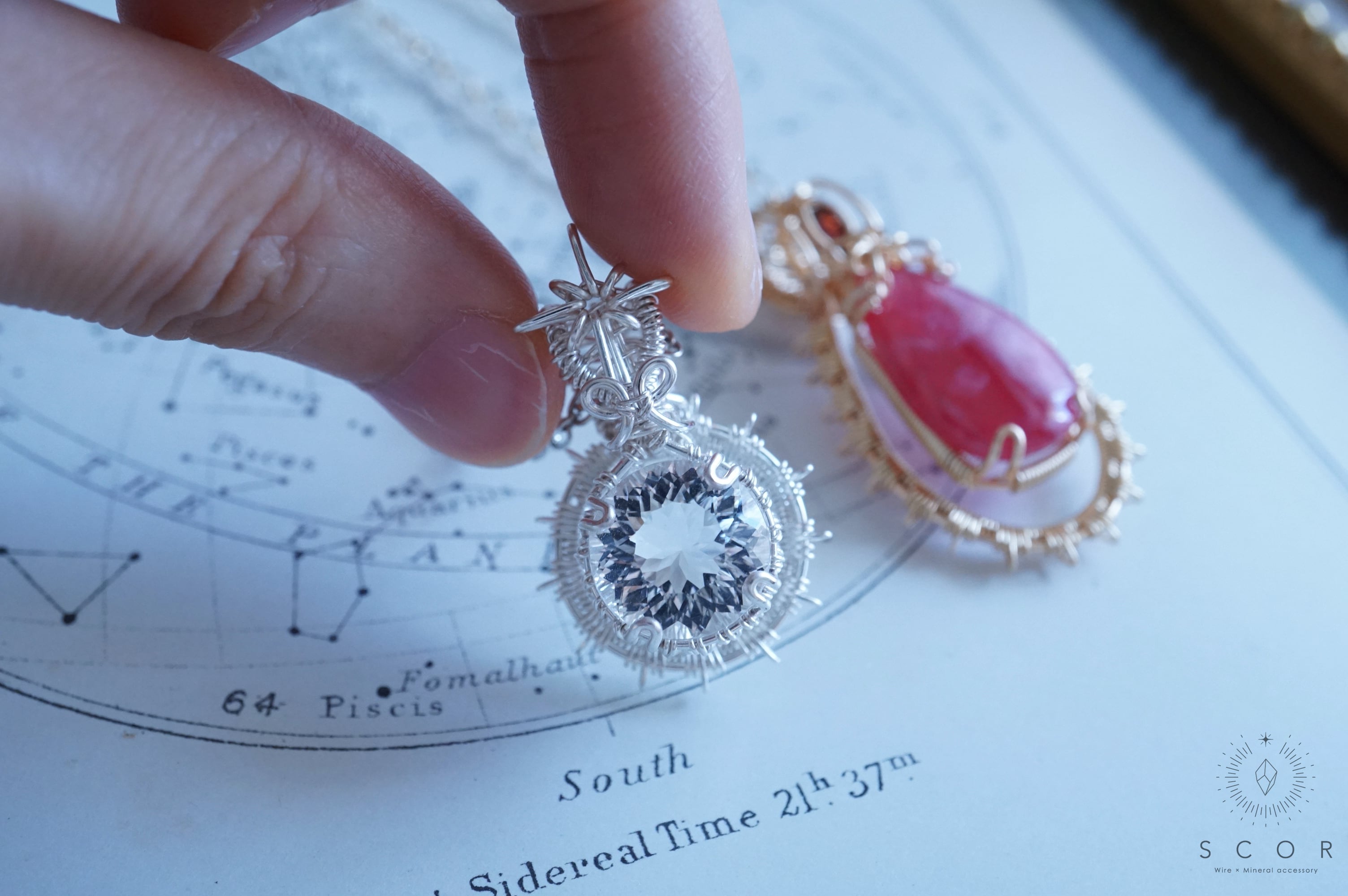 石を星に見立て、その放射光を細いワイヤー装飾(光背モチーフ)で表現したHaloシリーズ。