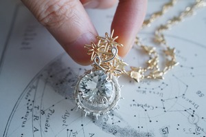 金色のネックレスと合わせると、光芒型のワイヤーモチーフと石色が際立ち華やかな雰囲気に。