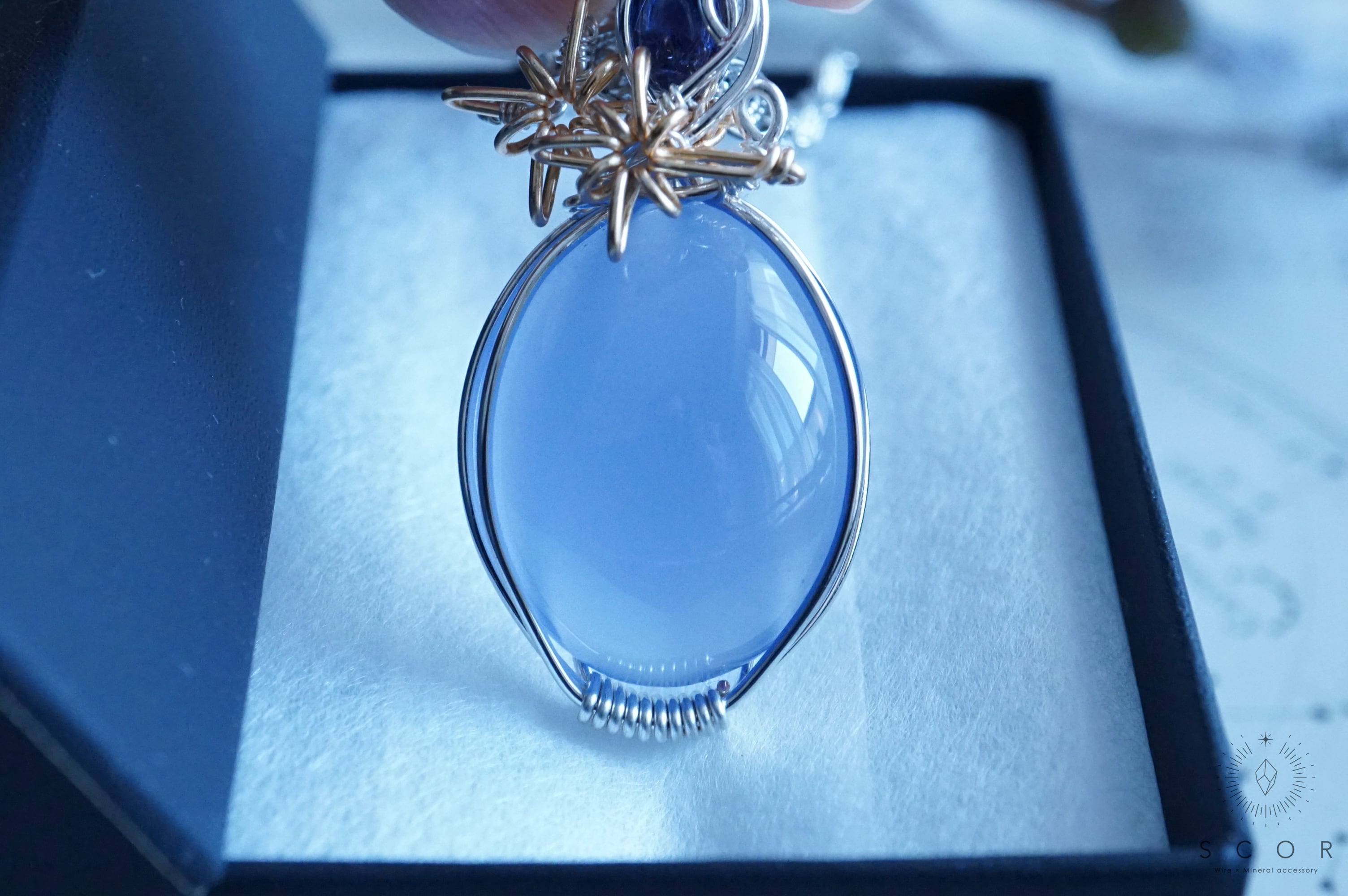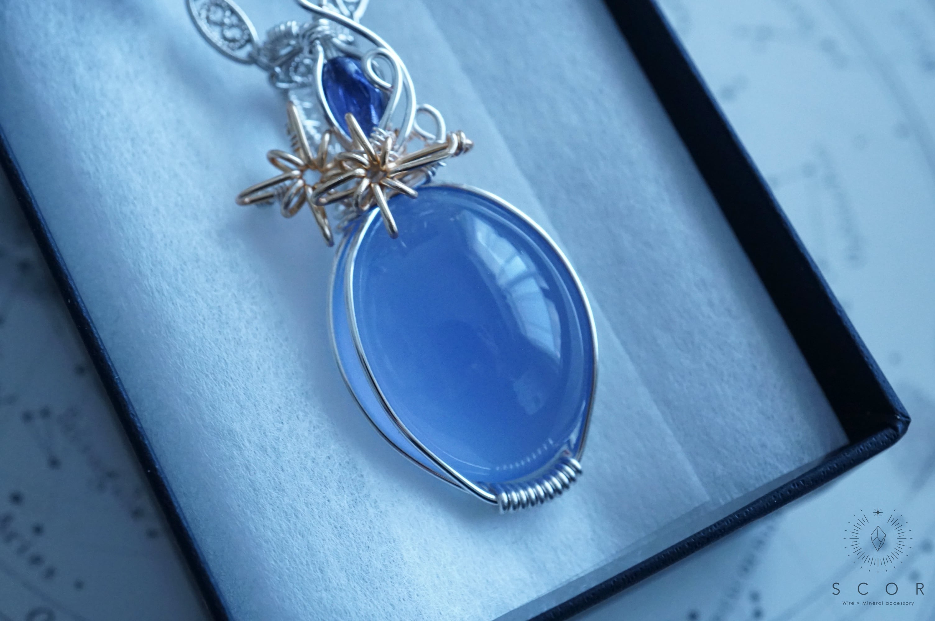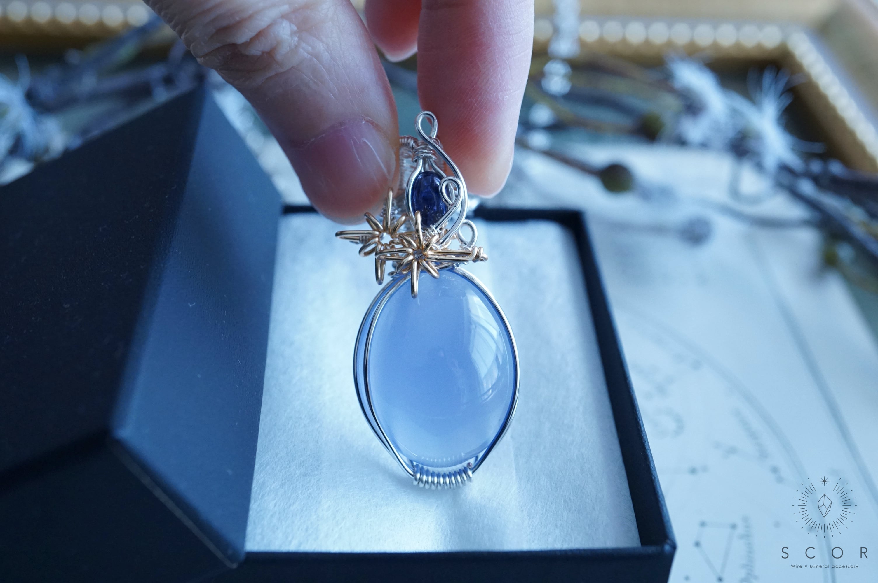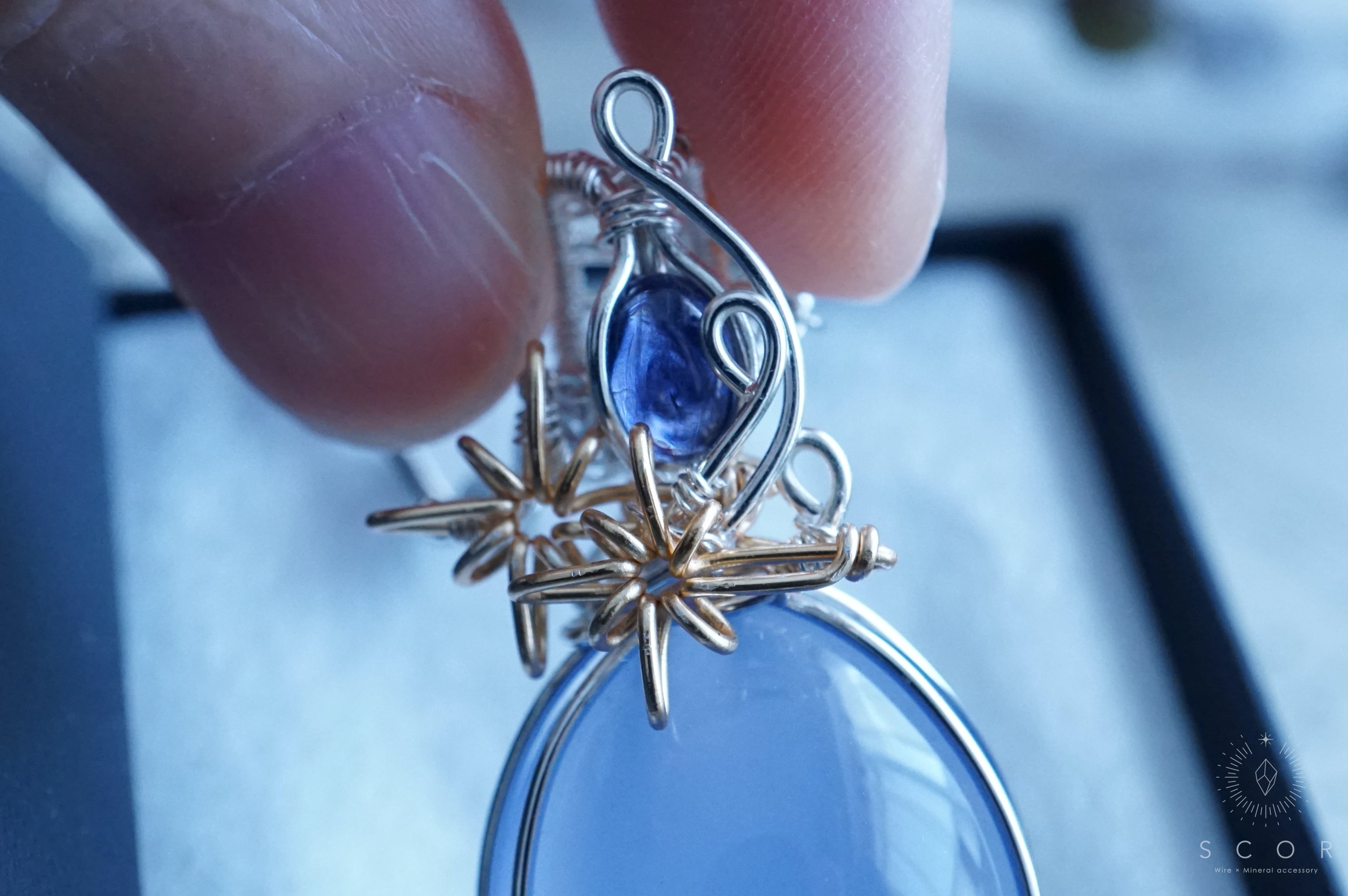 カルセドニーとアイオライトを使ったペンダントトップです。