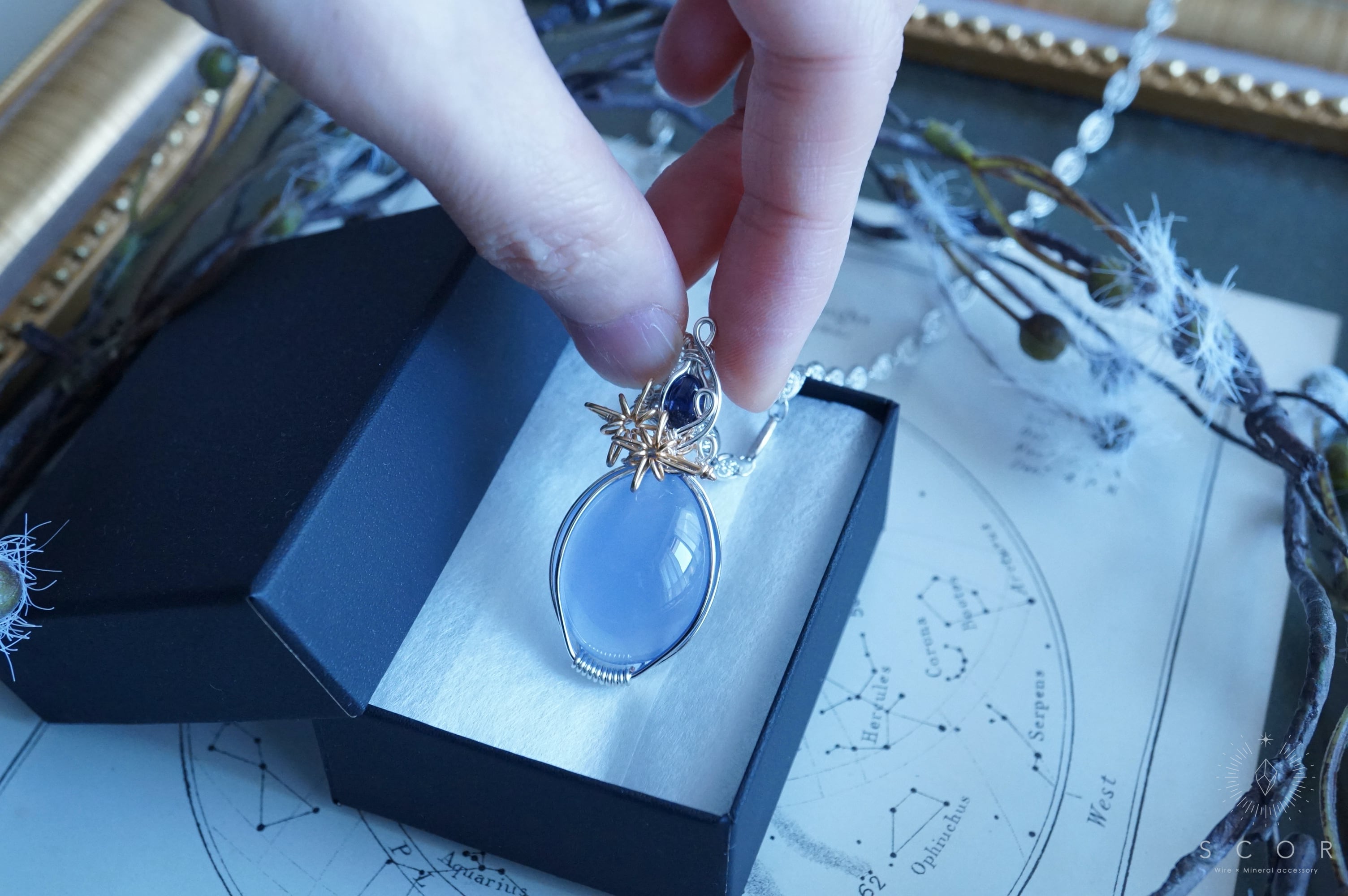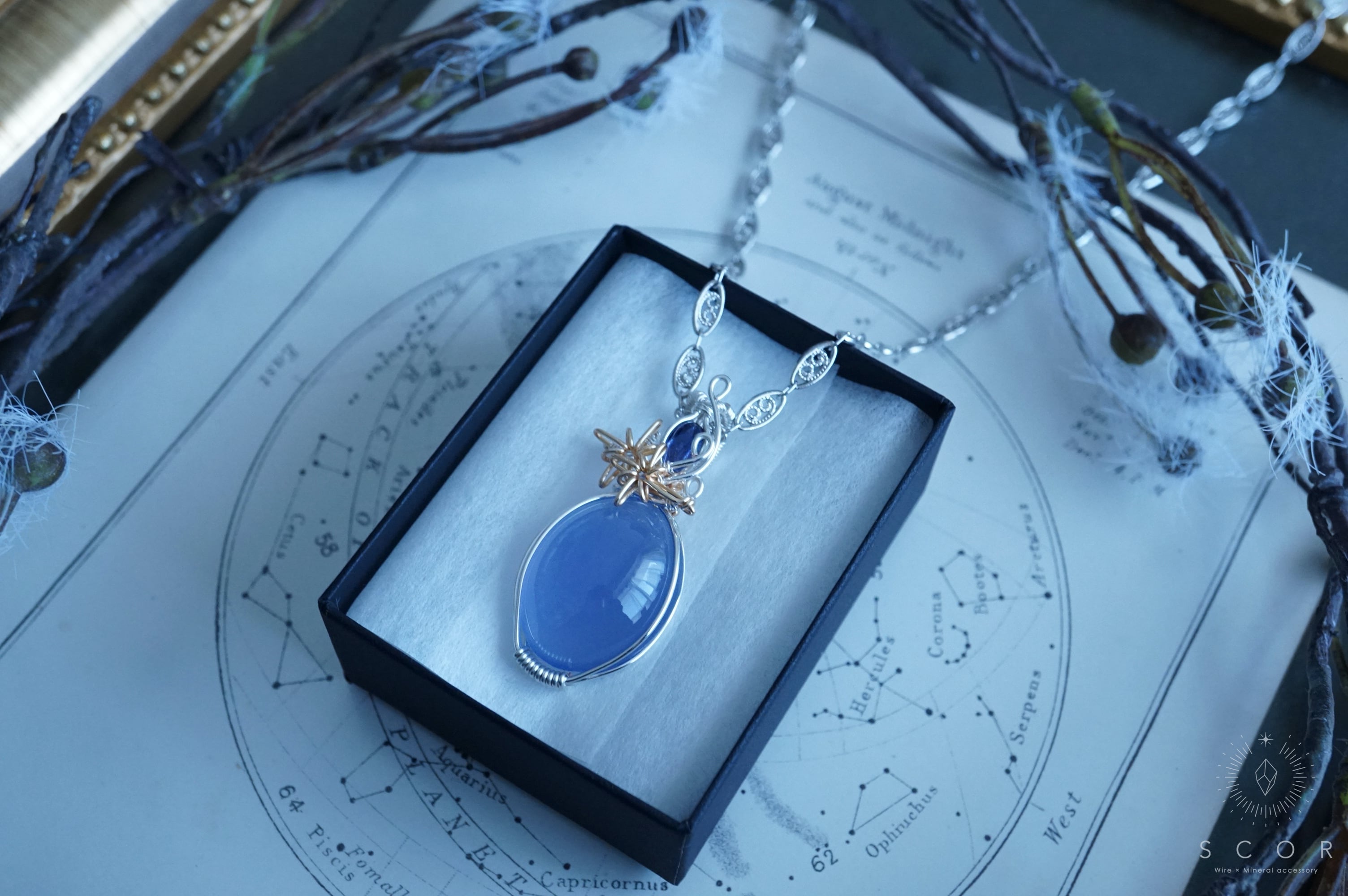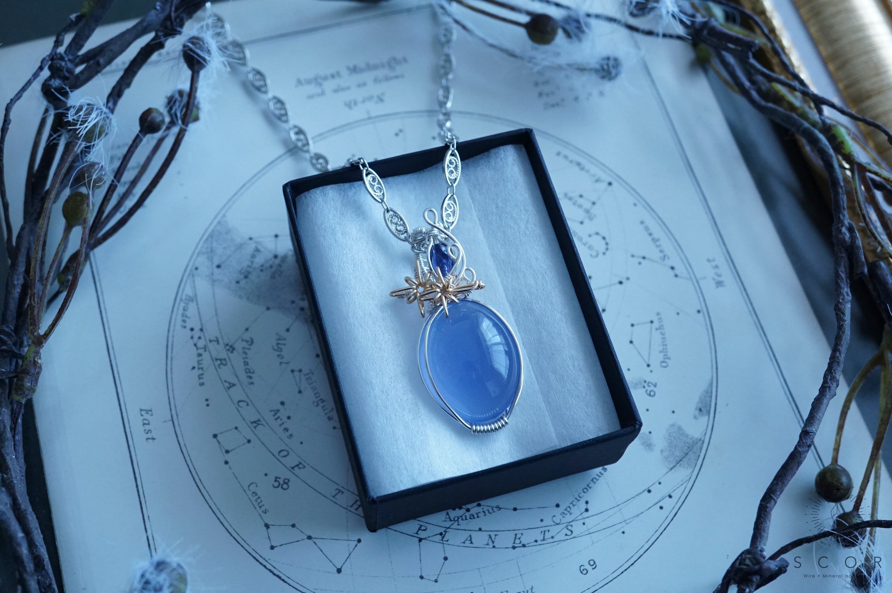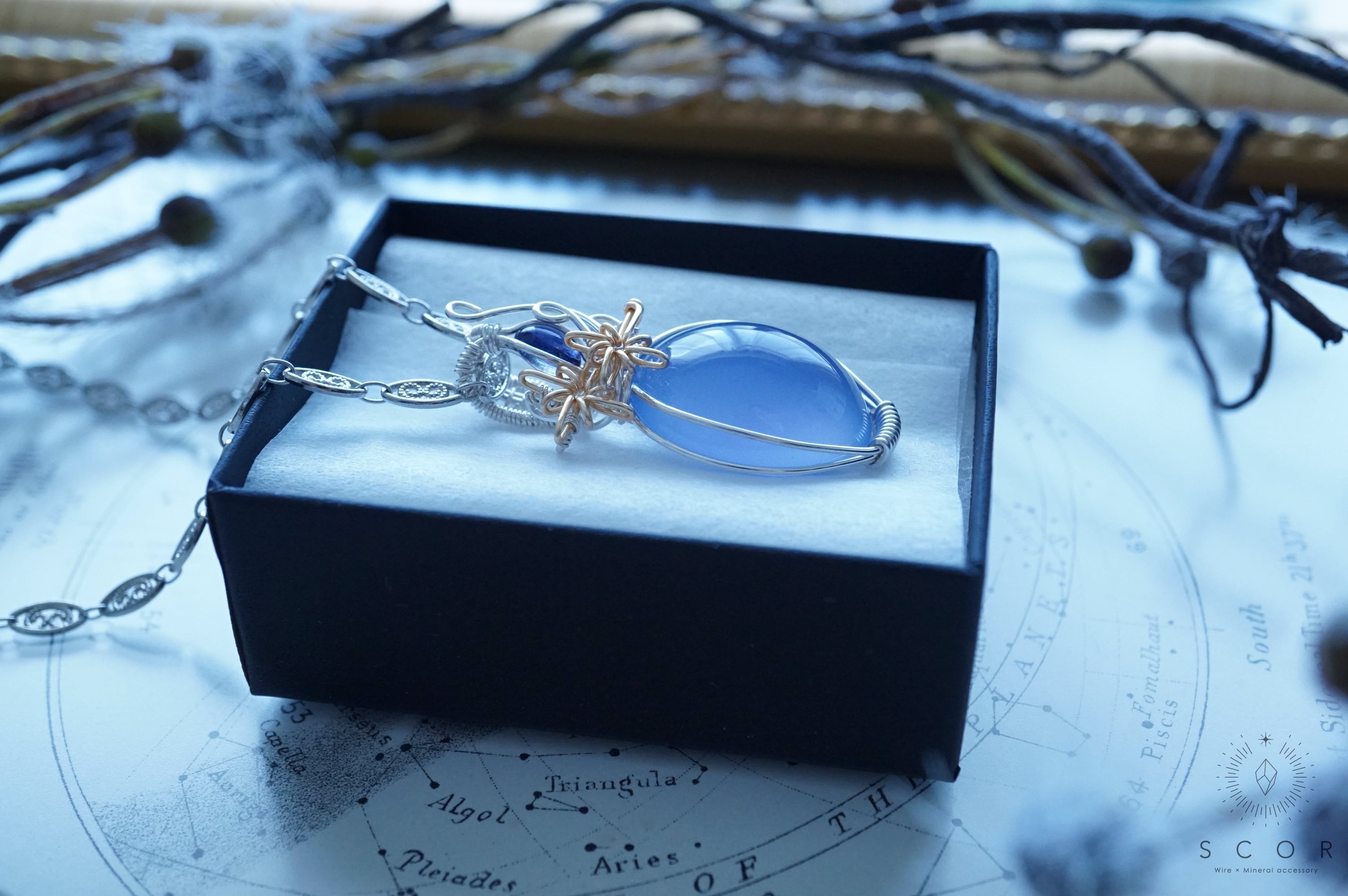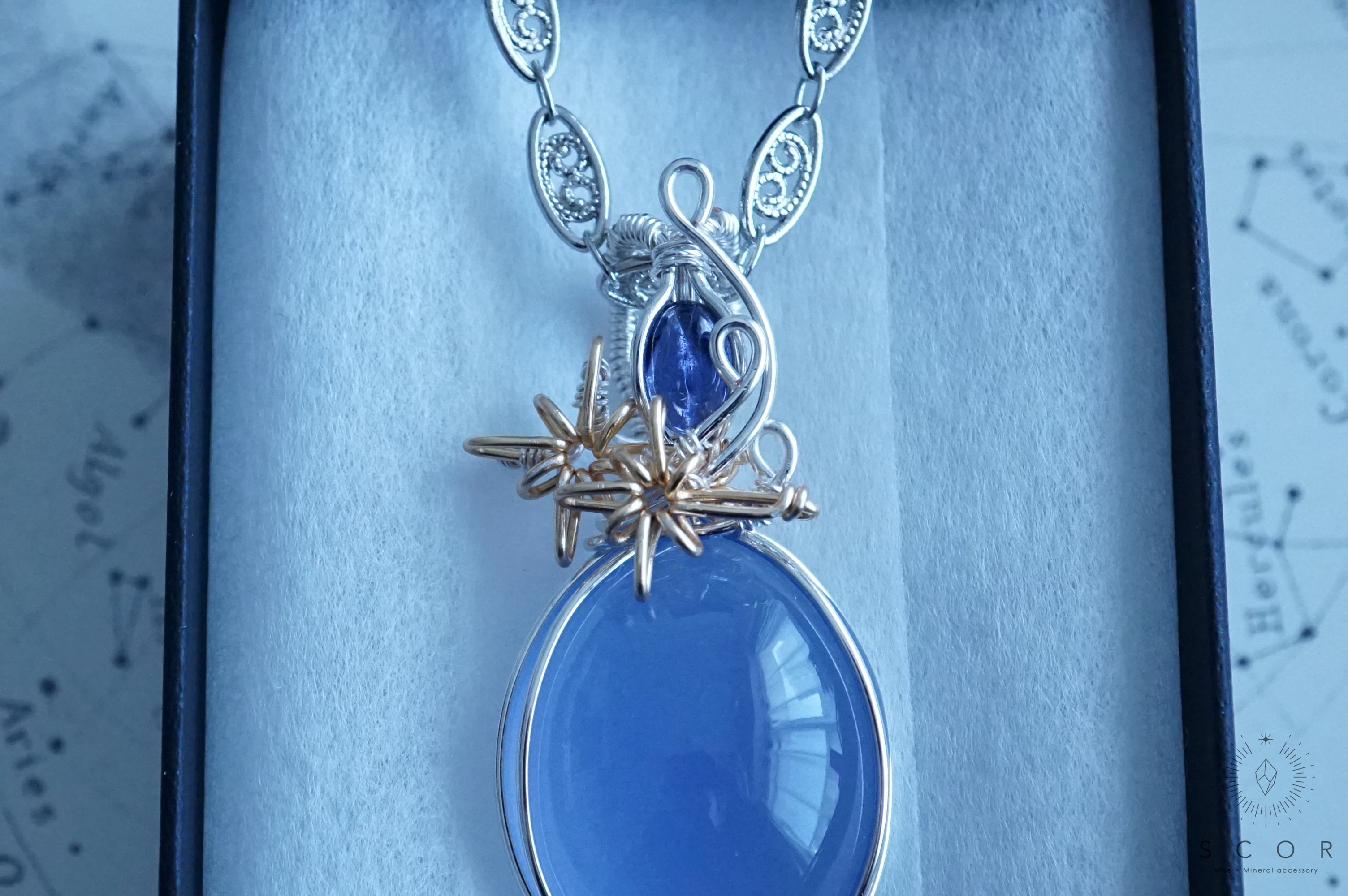 カルセドニーとアイオライトを使ったペンダントトップです。