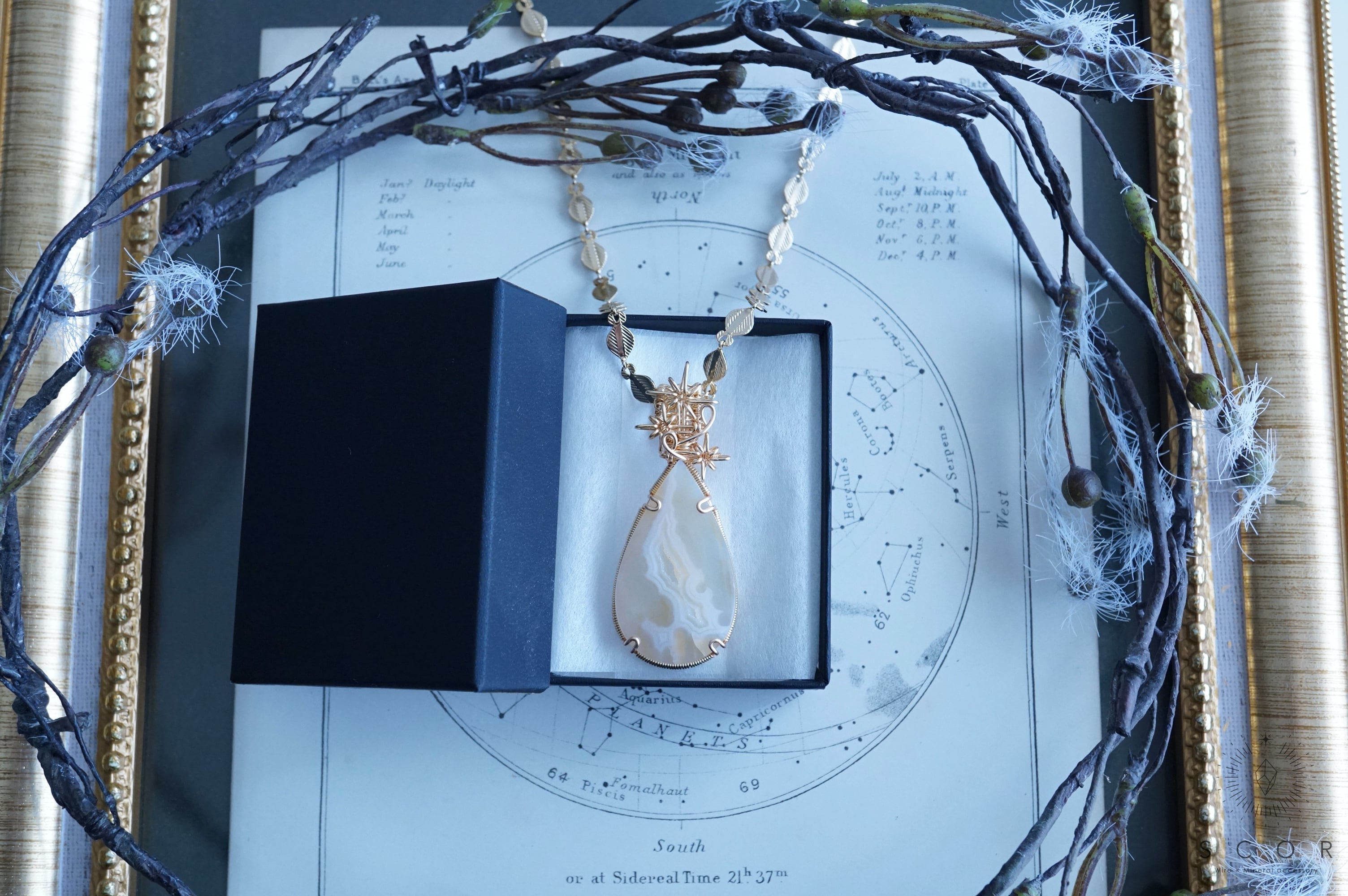 【動画あり】Ray of light - 白炎星 (pt594-p-g)(パイプアゲート ペンダントトップ)