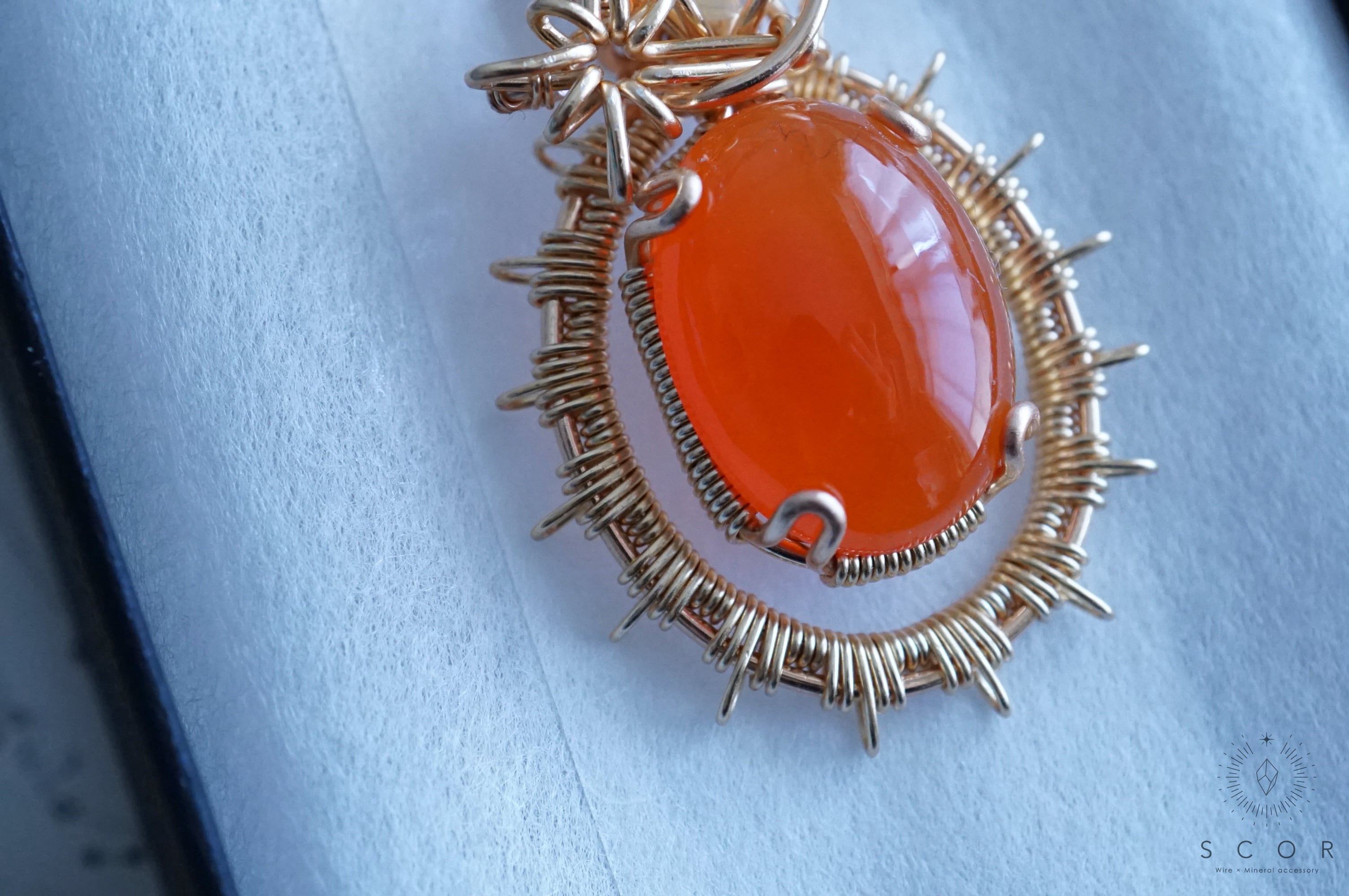 【動画あり】Halo - 甘橙星 (pt597-c-g)(カーネリアン・オパール ペンダントトップ)