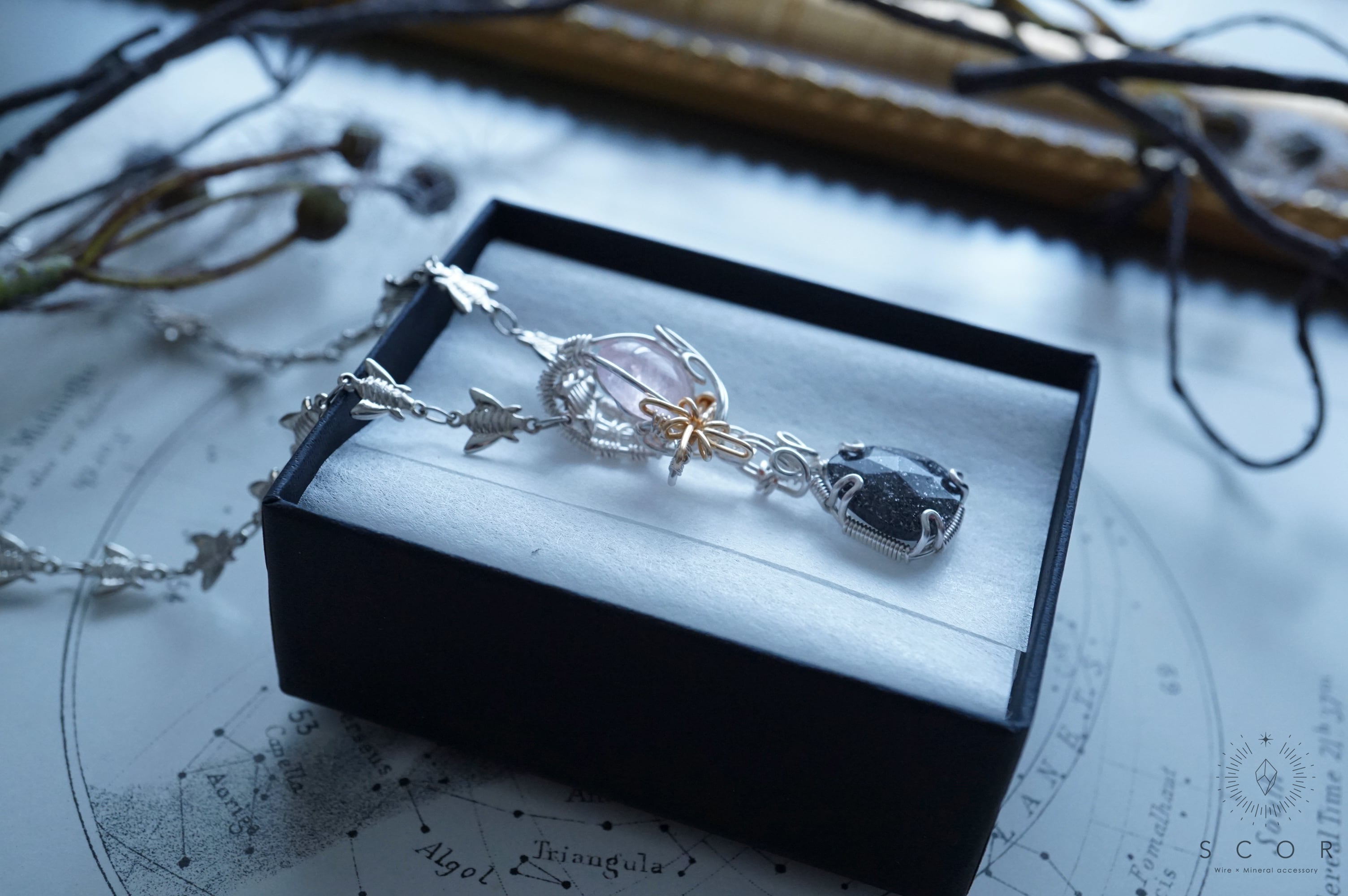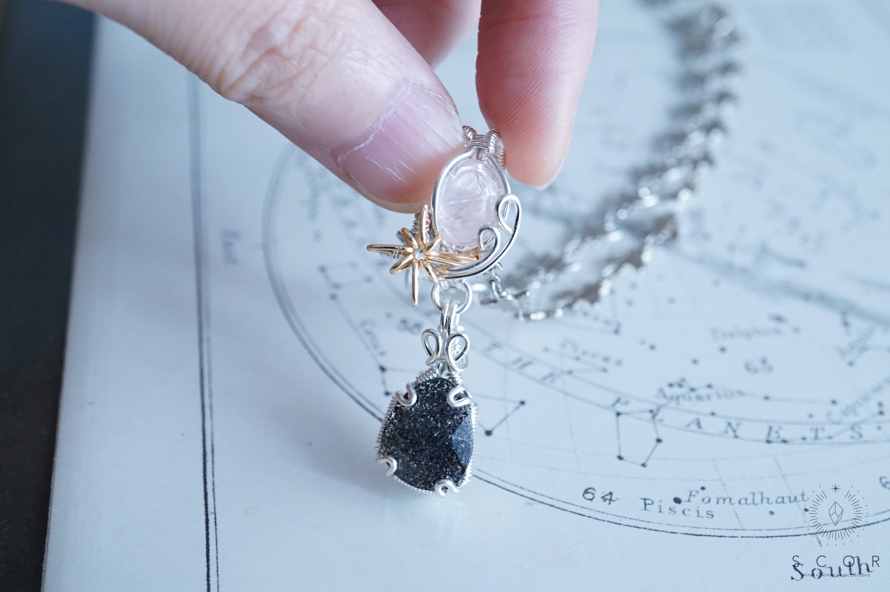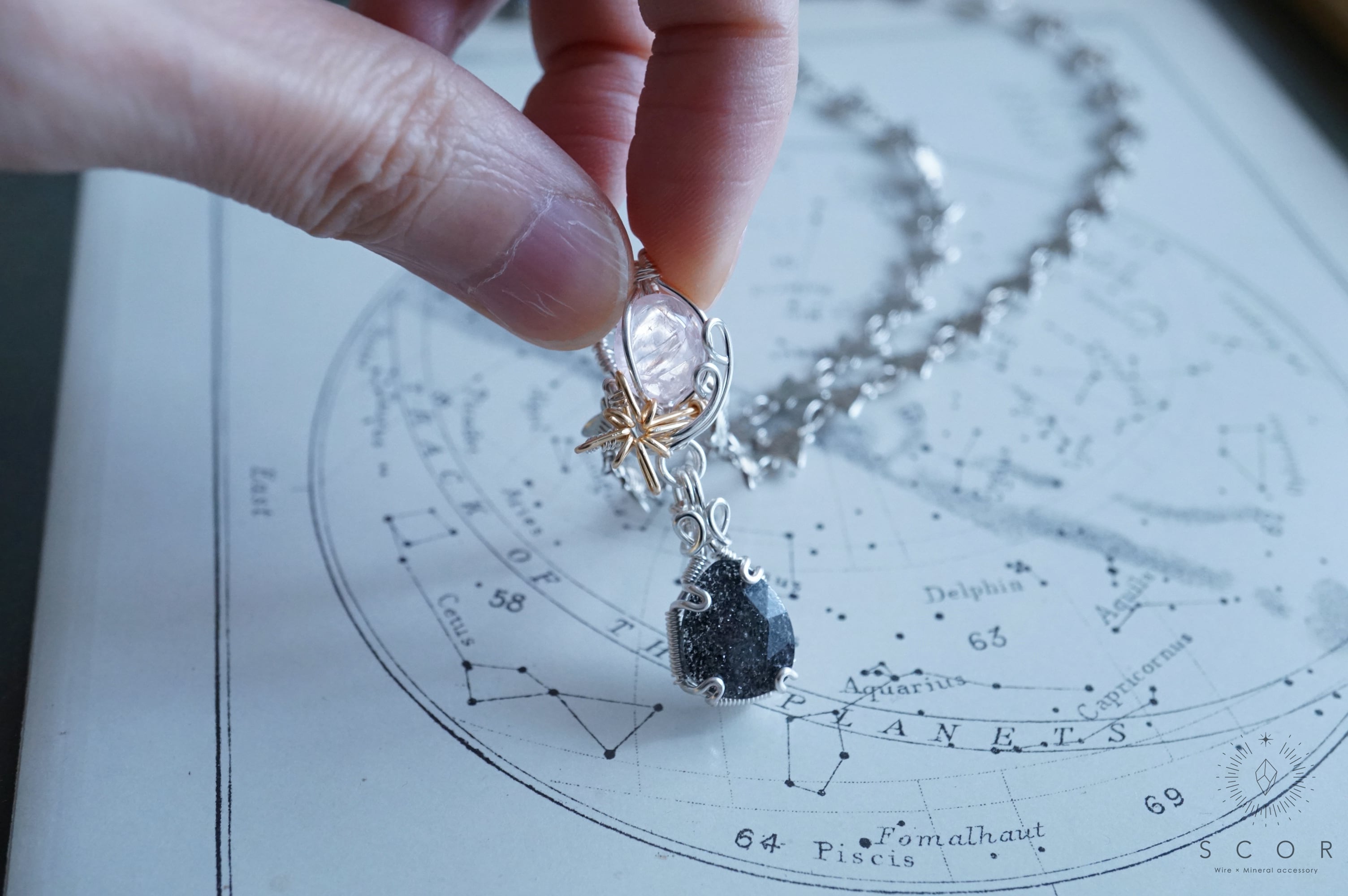 石を星に見立て、流星をワイヤー装飾で表現したShooting starシリーズ。