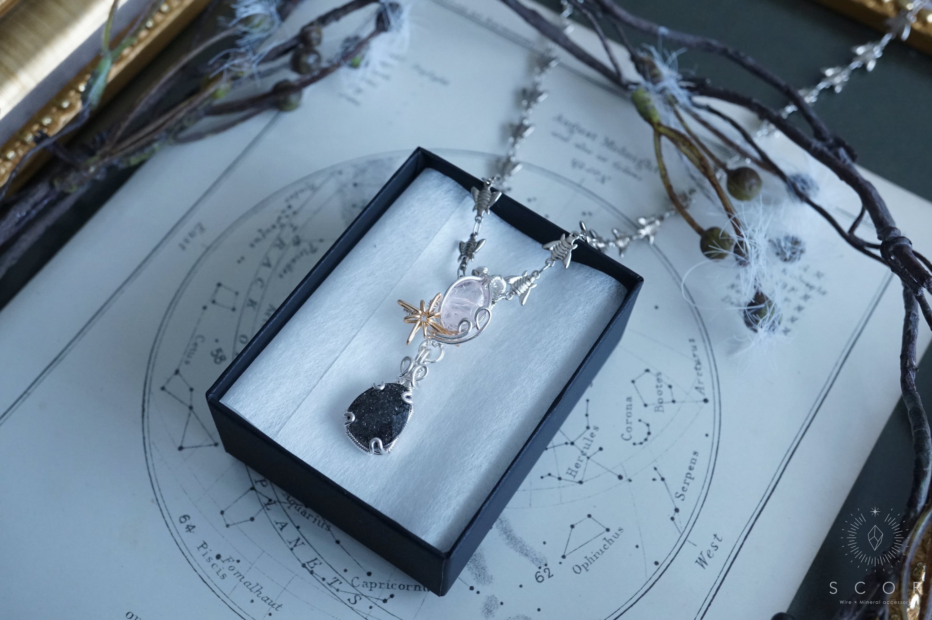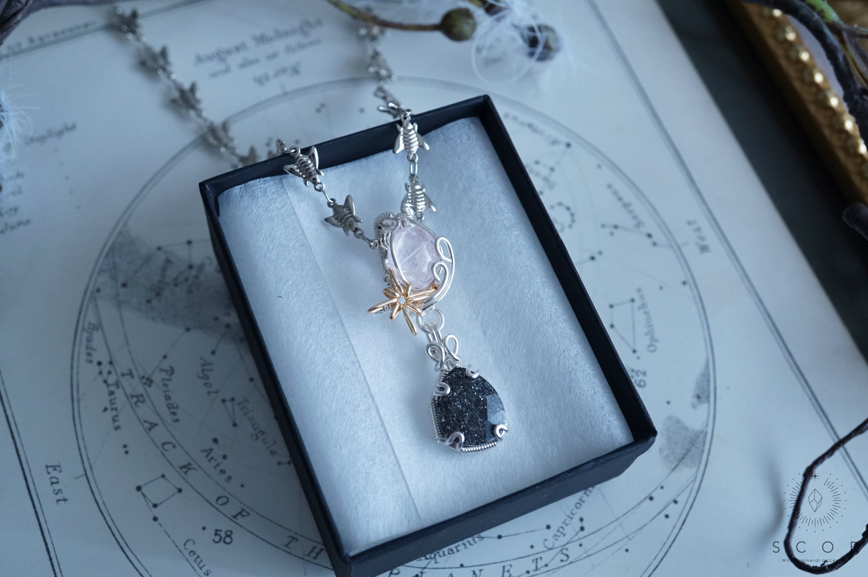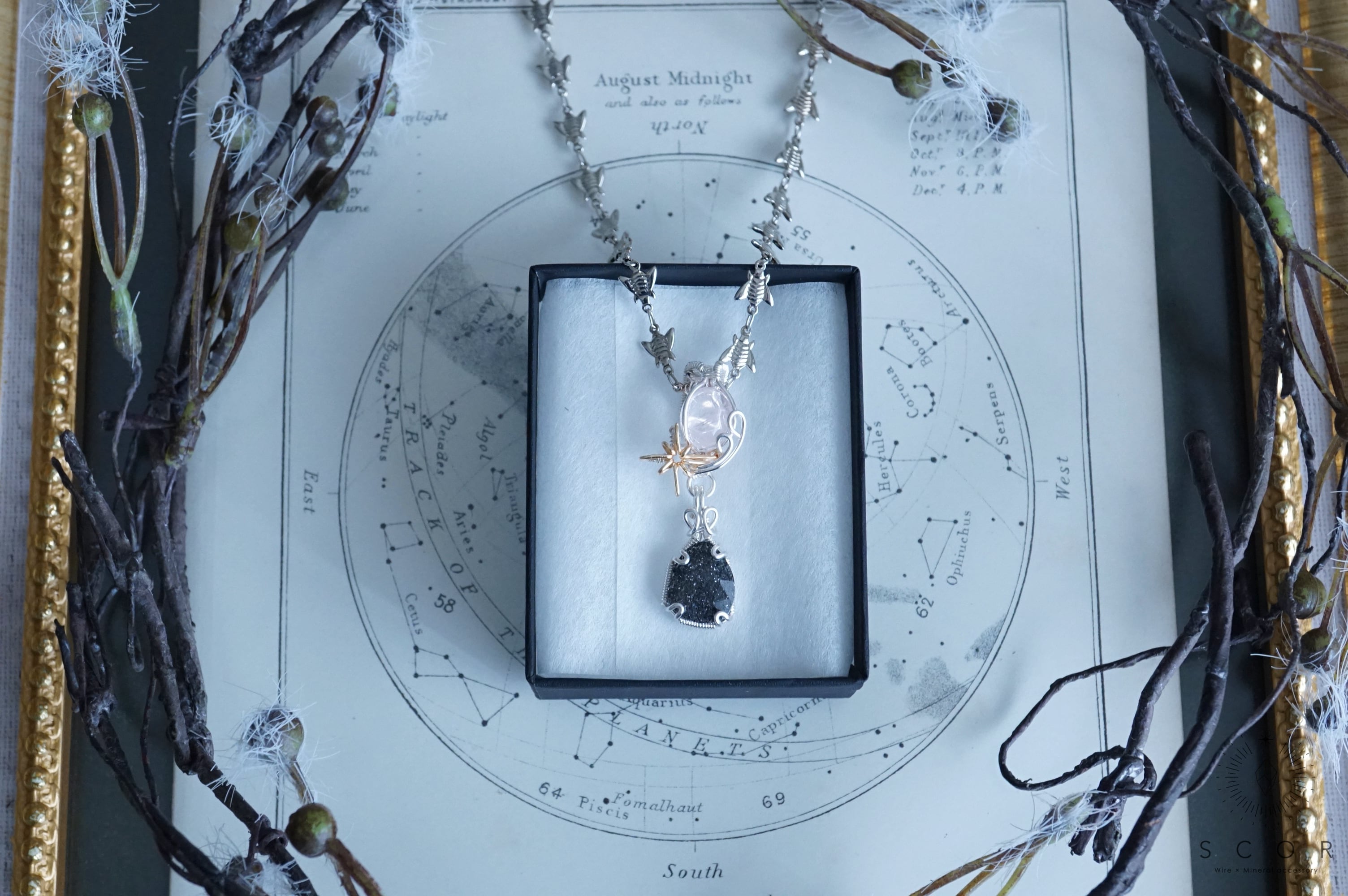 石を星に見立て、流星をワイヤー装飾で表現したShooting starシリーズ。