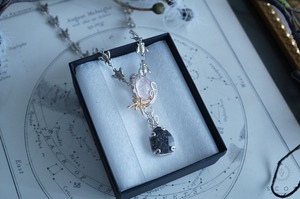 【動画あり】Shooting star - 百星の流星(pt600-gm-sg)(グラファイトインクオーツ・モルガナイト ペンダントトップ)