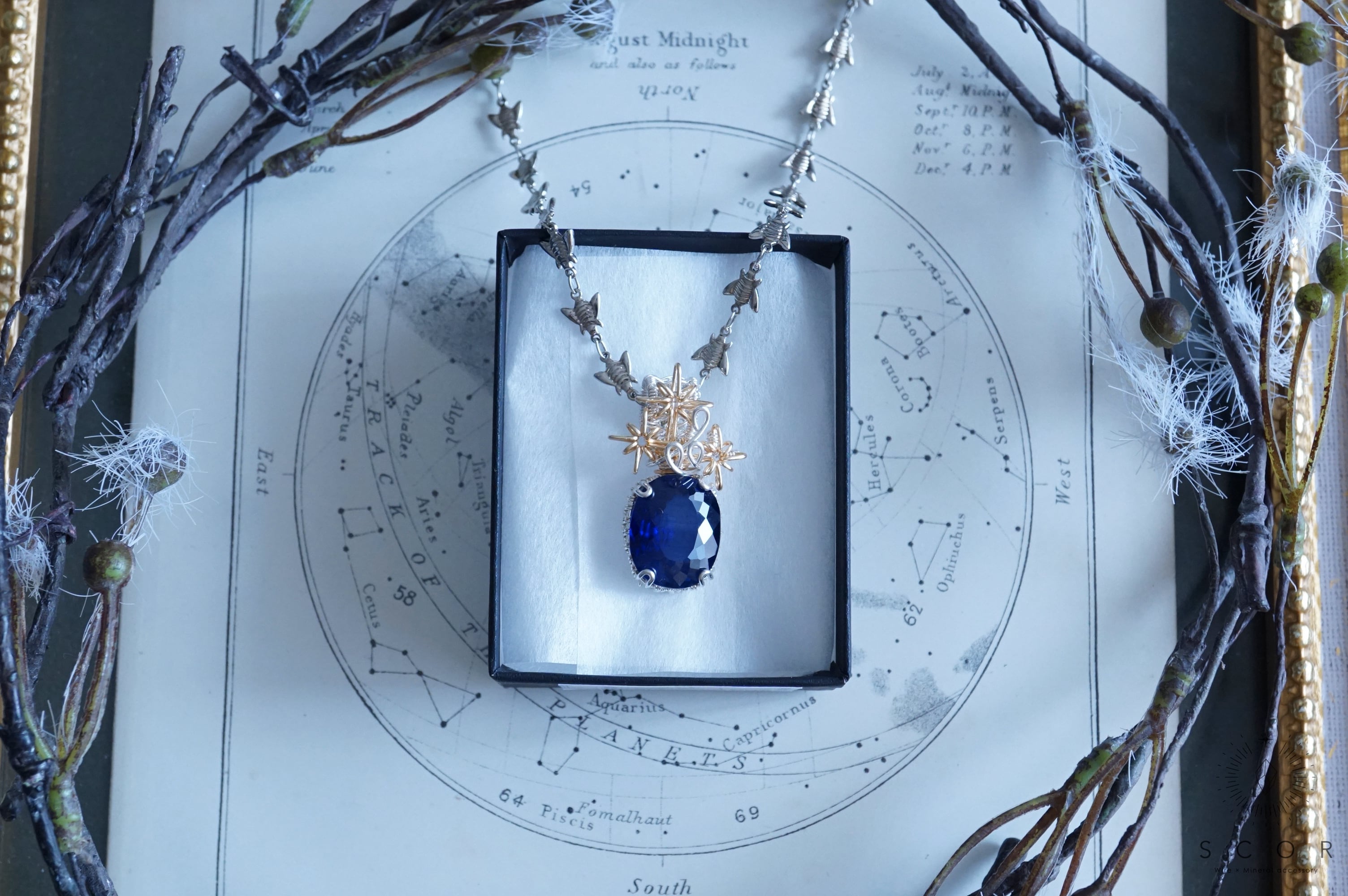 【動画あり】Ray of light - 合成のほし #12 (pt607-s-sg)(合成ブルーサファイアペンダントトップ)