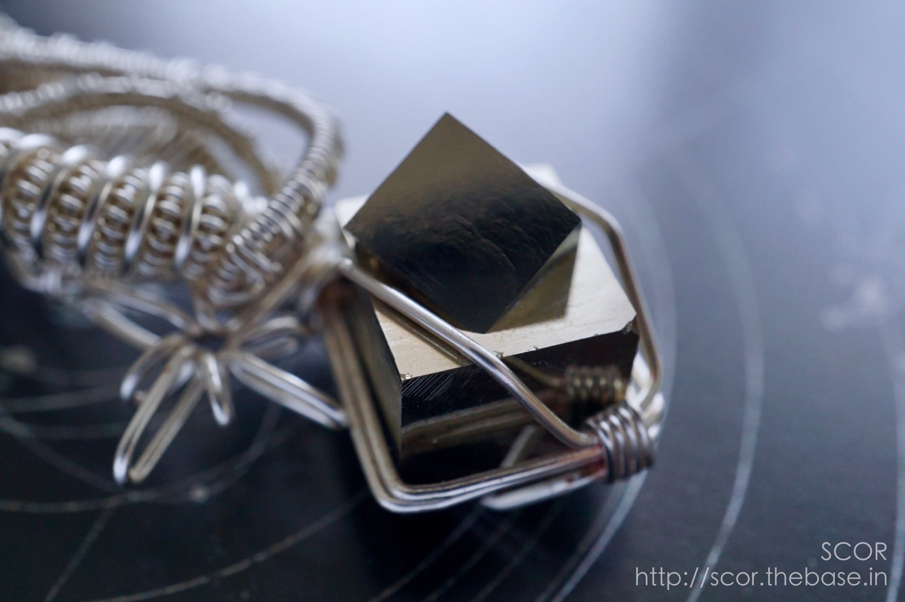 現代建築家、または現代彫刻家の前衛的な作品を思わせる、ユニークな形状のパイライト原石を使用したペンダントトップです。