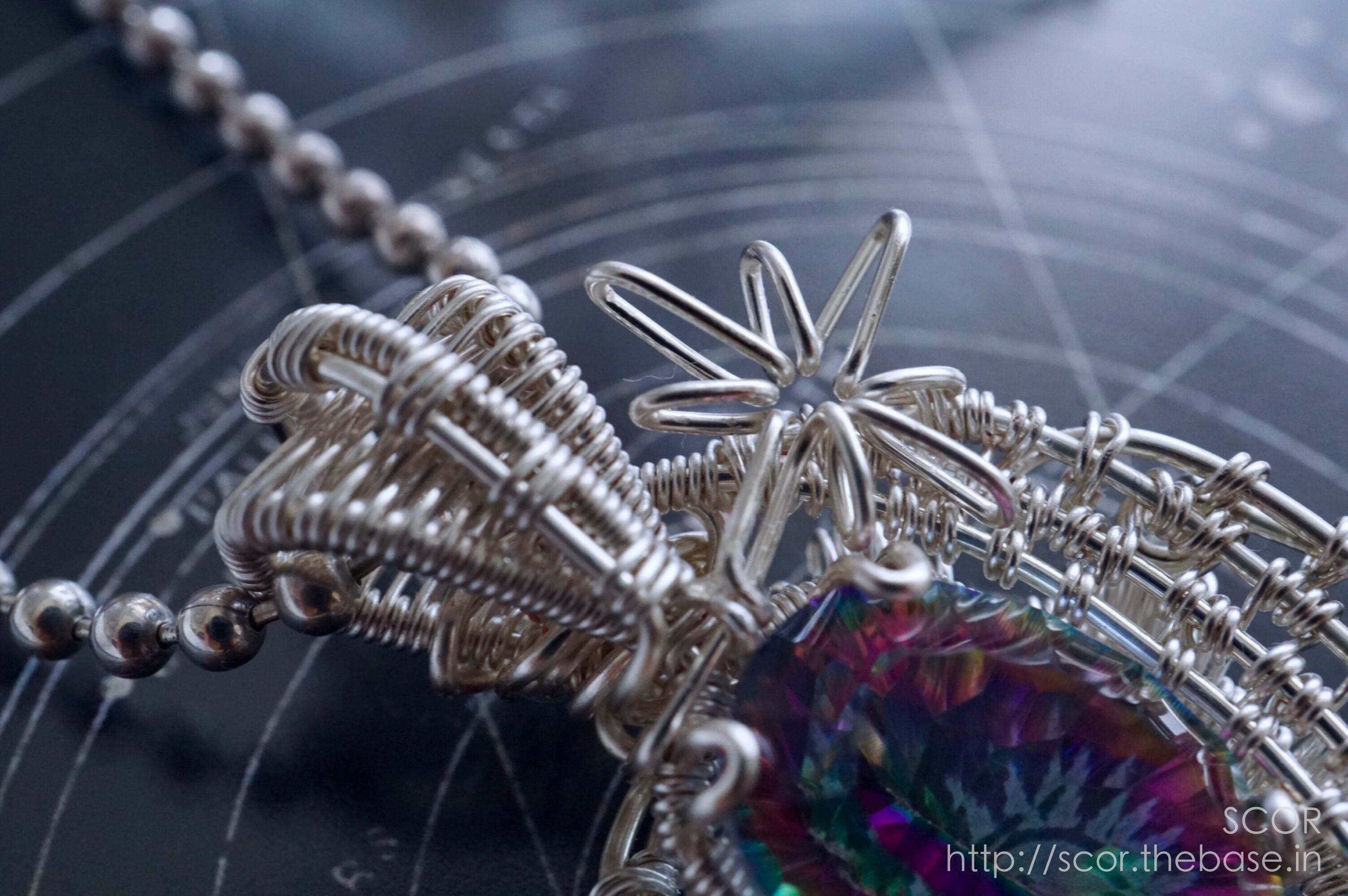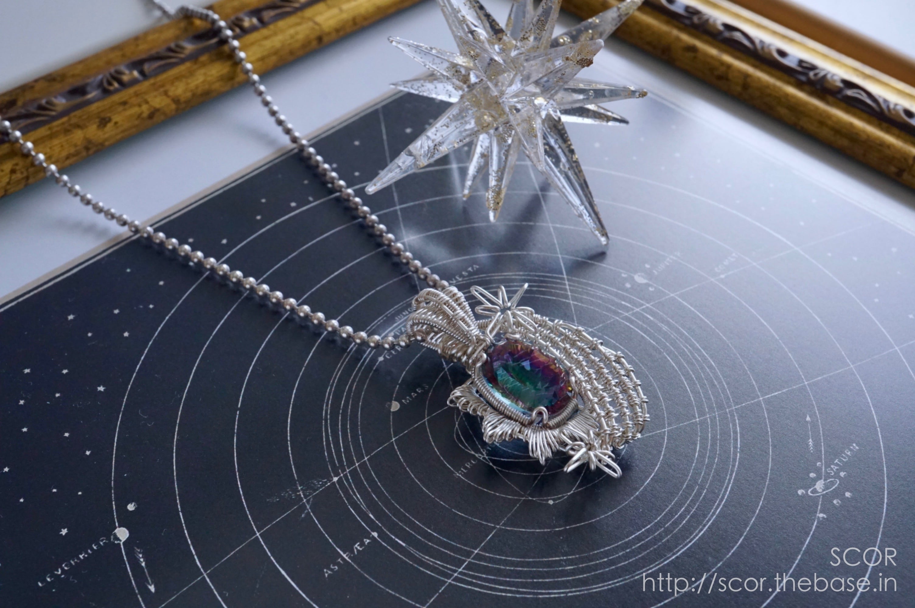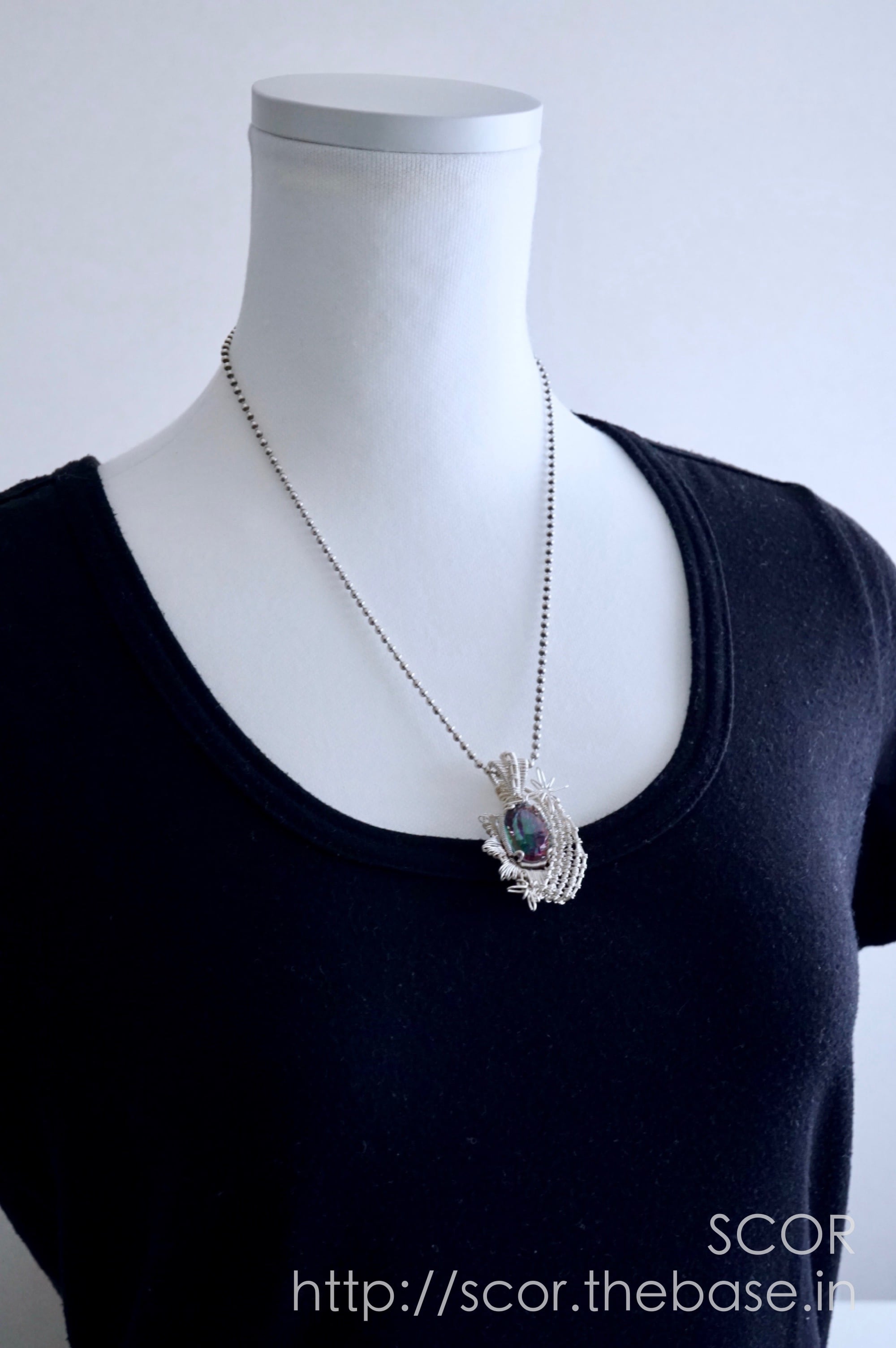 石の裏からチタンを蒸着させた、ファセットカットの水晶を使ったペンダントトップです。