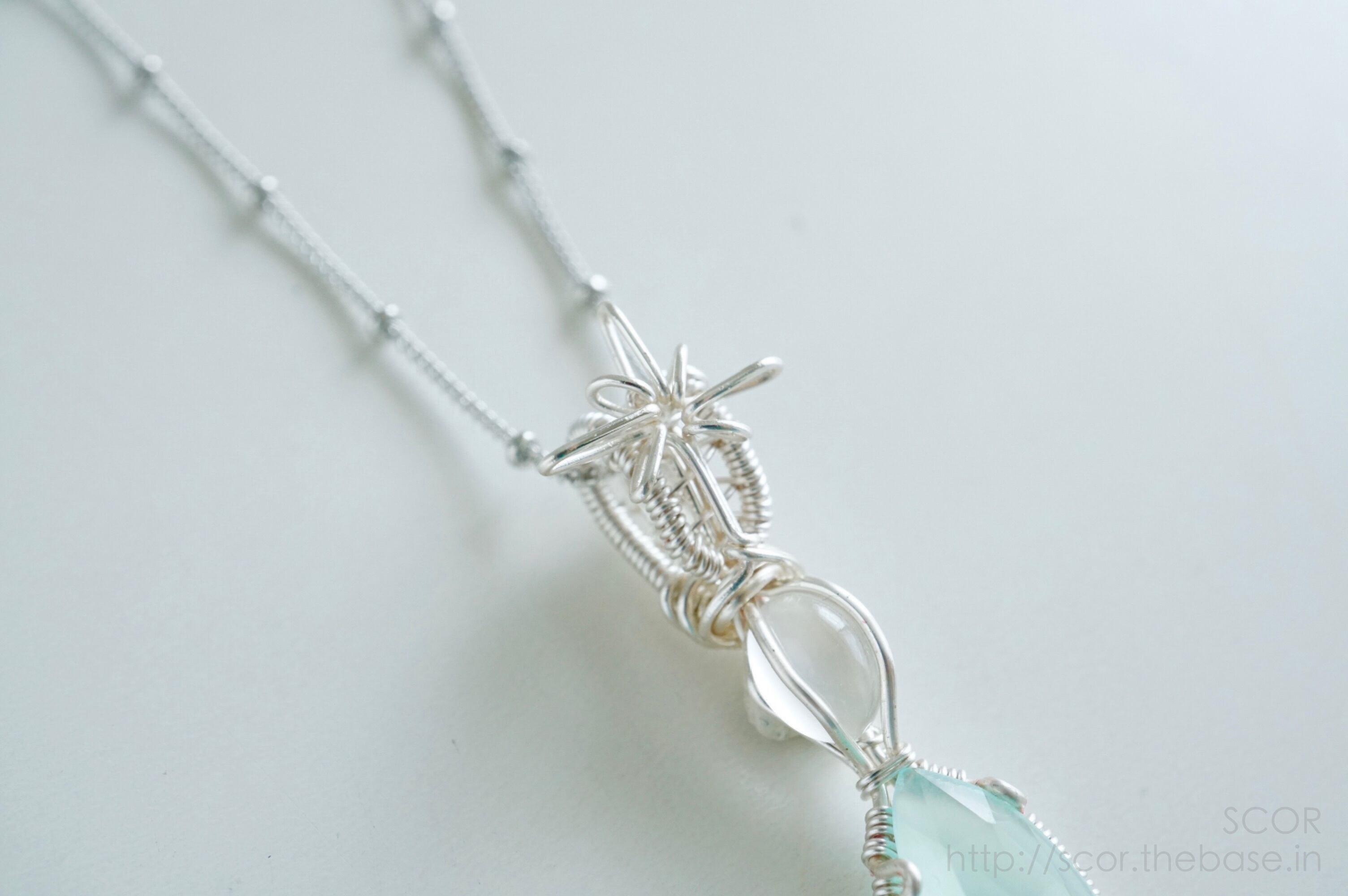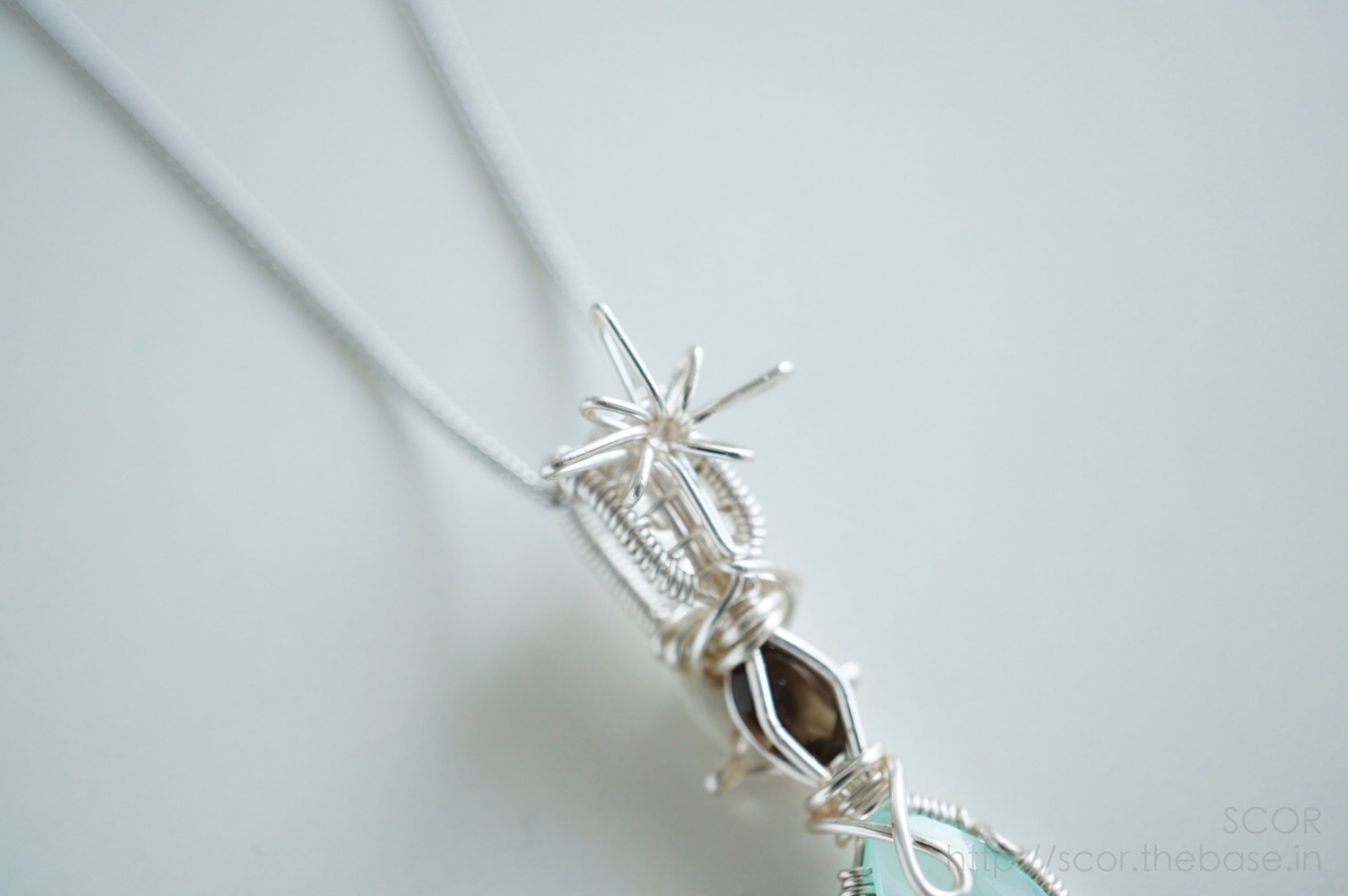 ワイヤー切断面は、なるたけ表に出ないように処理をしていますが、ストール、マフラー、レースなどと共に身につける際は、引っかかりにご注意ください。