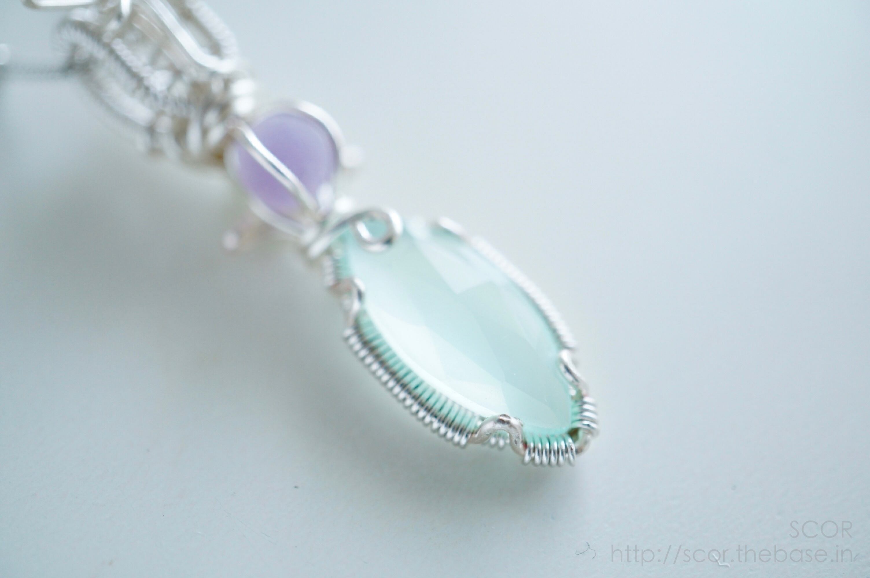 シーブルーカルセドニーに装飾石を添えたペンダントトップです。
