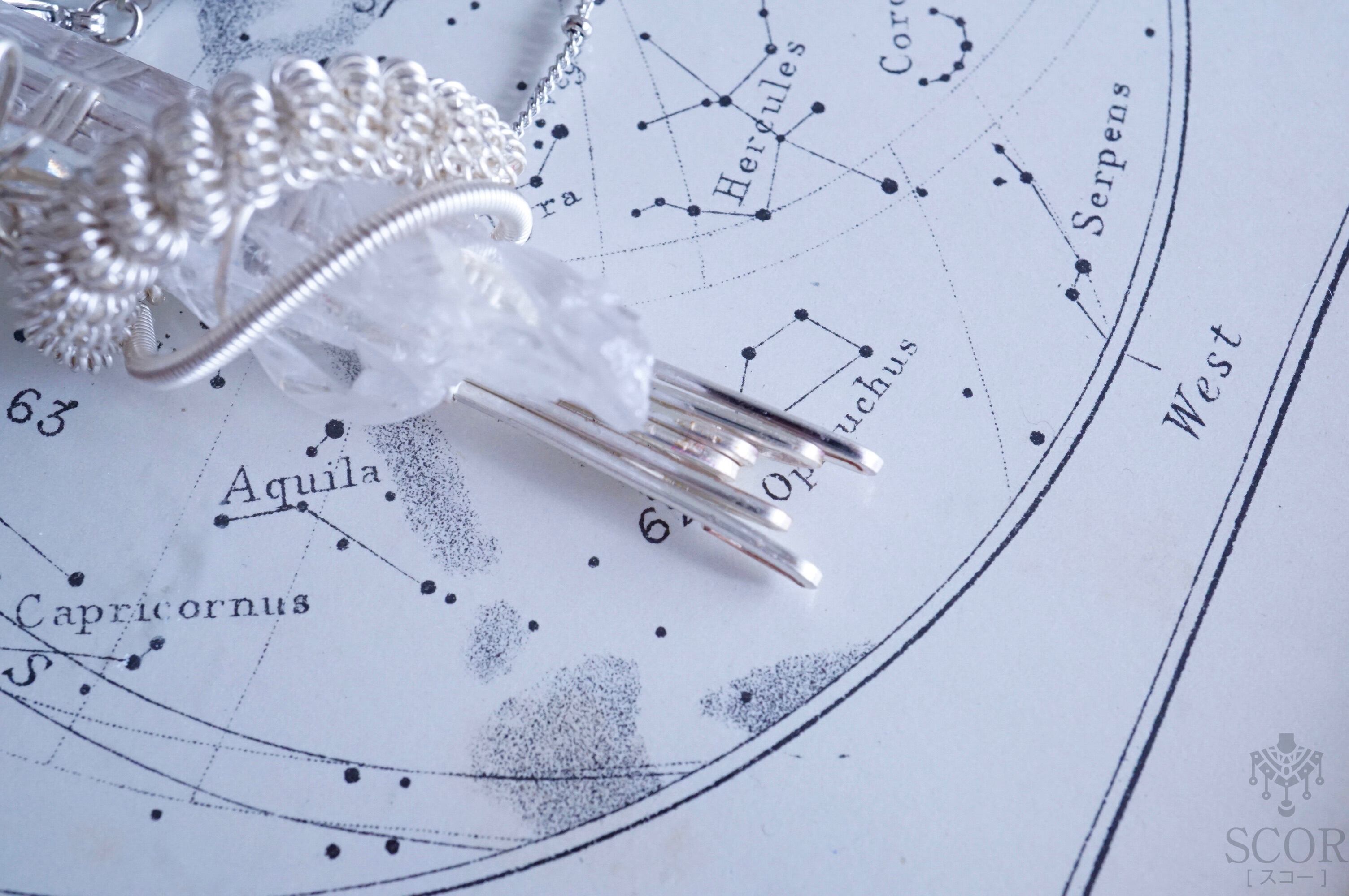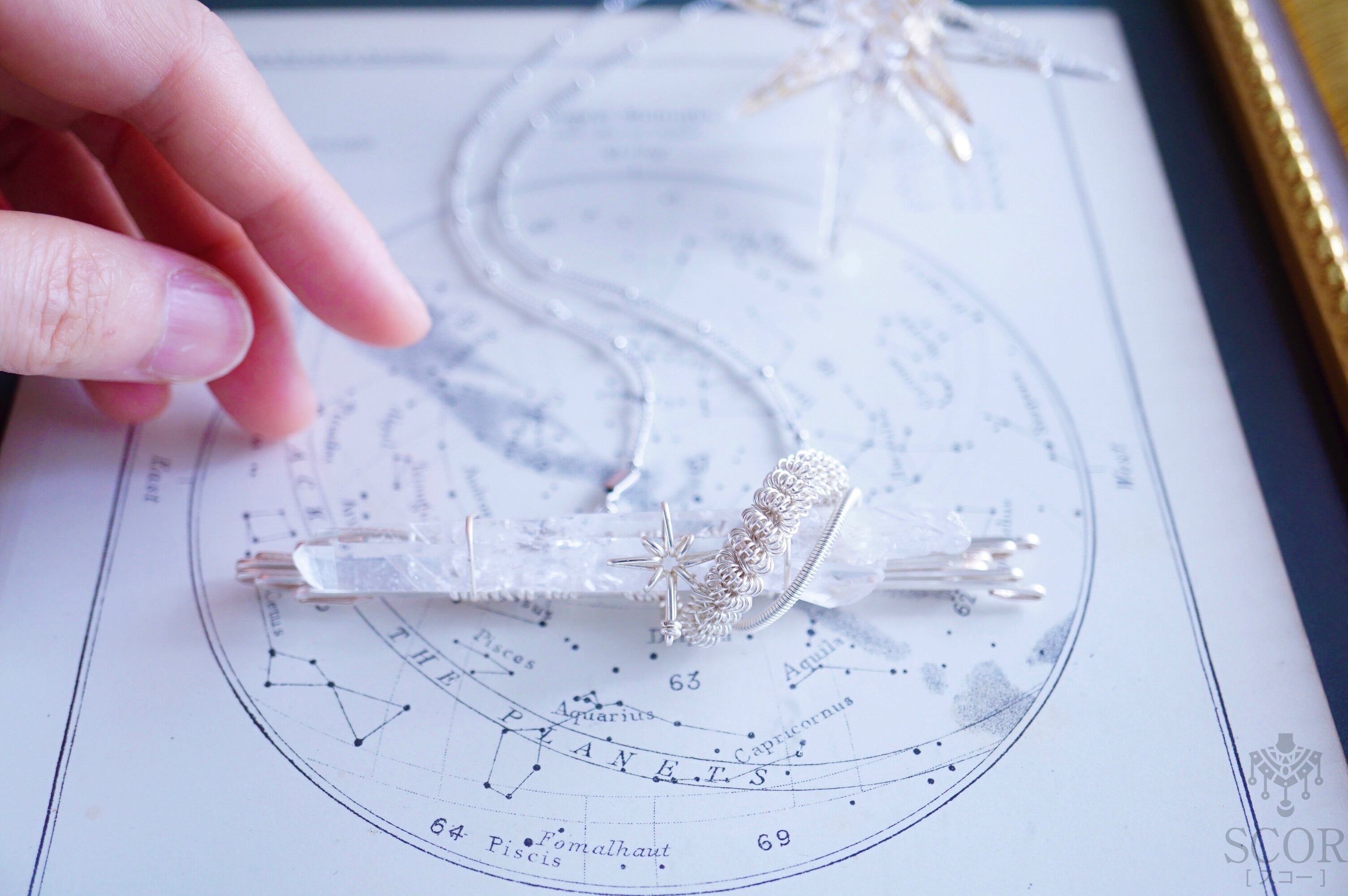 一本の結晶柱を、流星の光の軌跡に見立ててデザインしました。