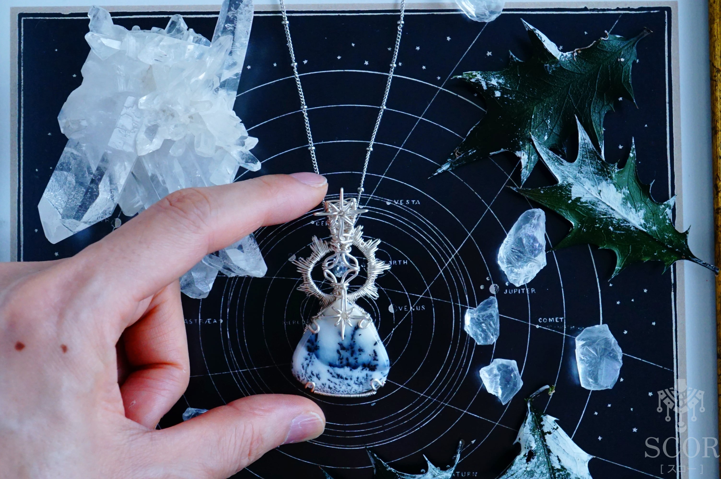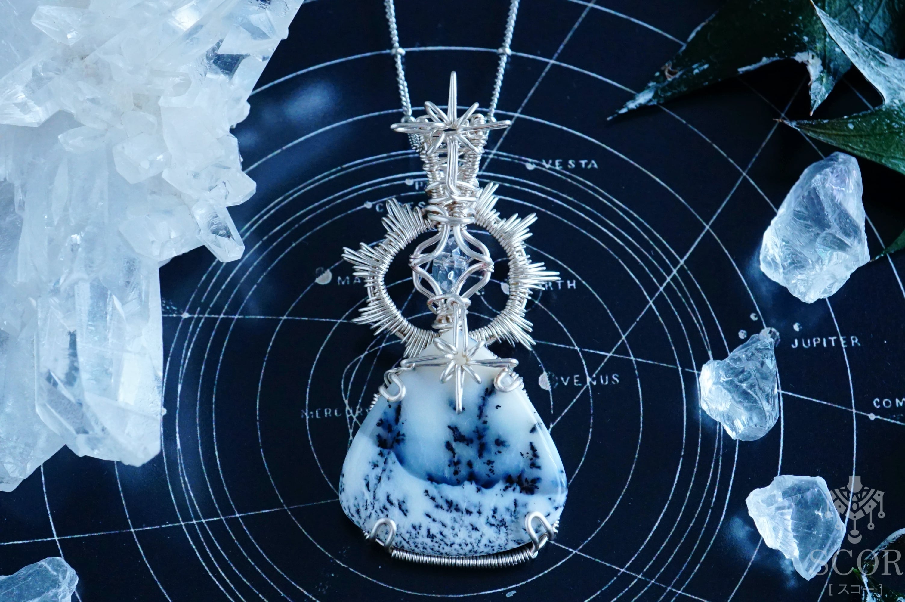 デンドリックアゲートと水晶を使ったペンダントトップです。