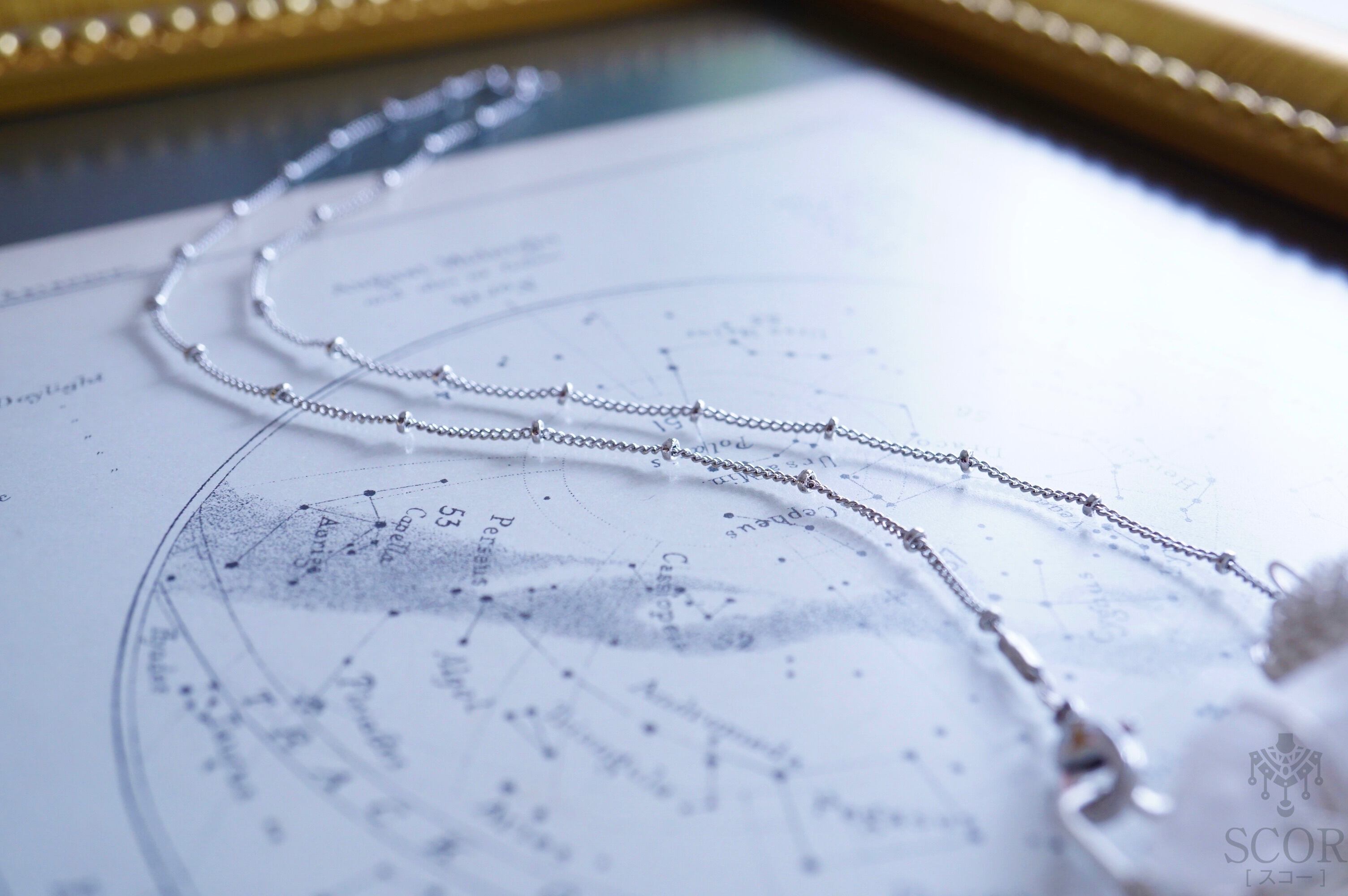 ネックレス金具が正面にあるため、つけ外しがしやすく、色合いが無彩色に近いため、コーディネイトするお洋服に色を選びません。