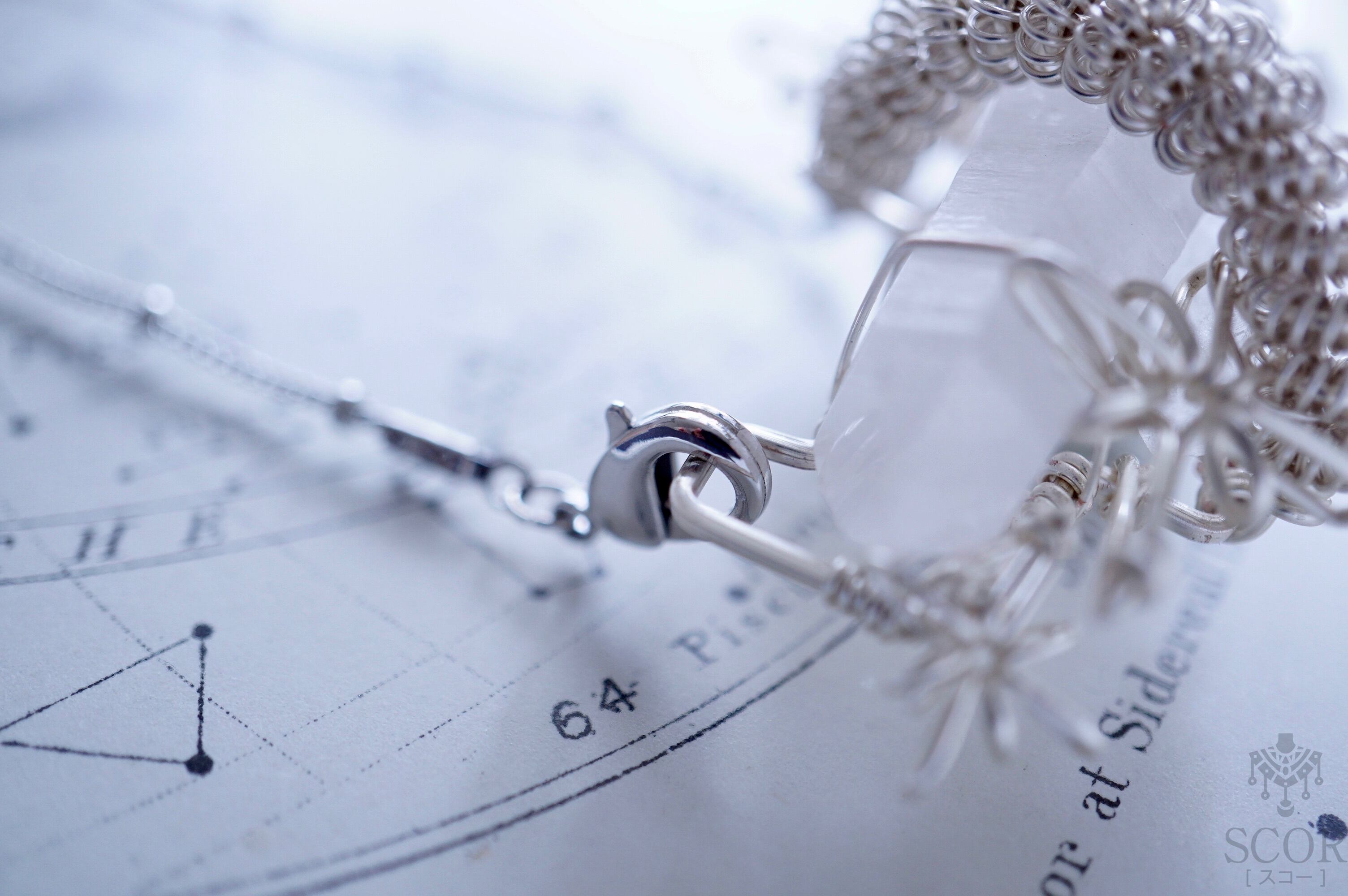 ワイヤー切断面は、なるたけ表に出ないように処理をしていますが、ストール、マフラー、レースなどと共に身につける際は、引っかかりにご注意ください。