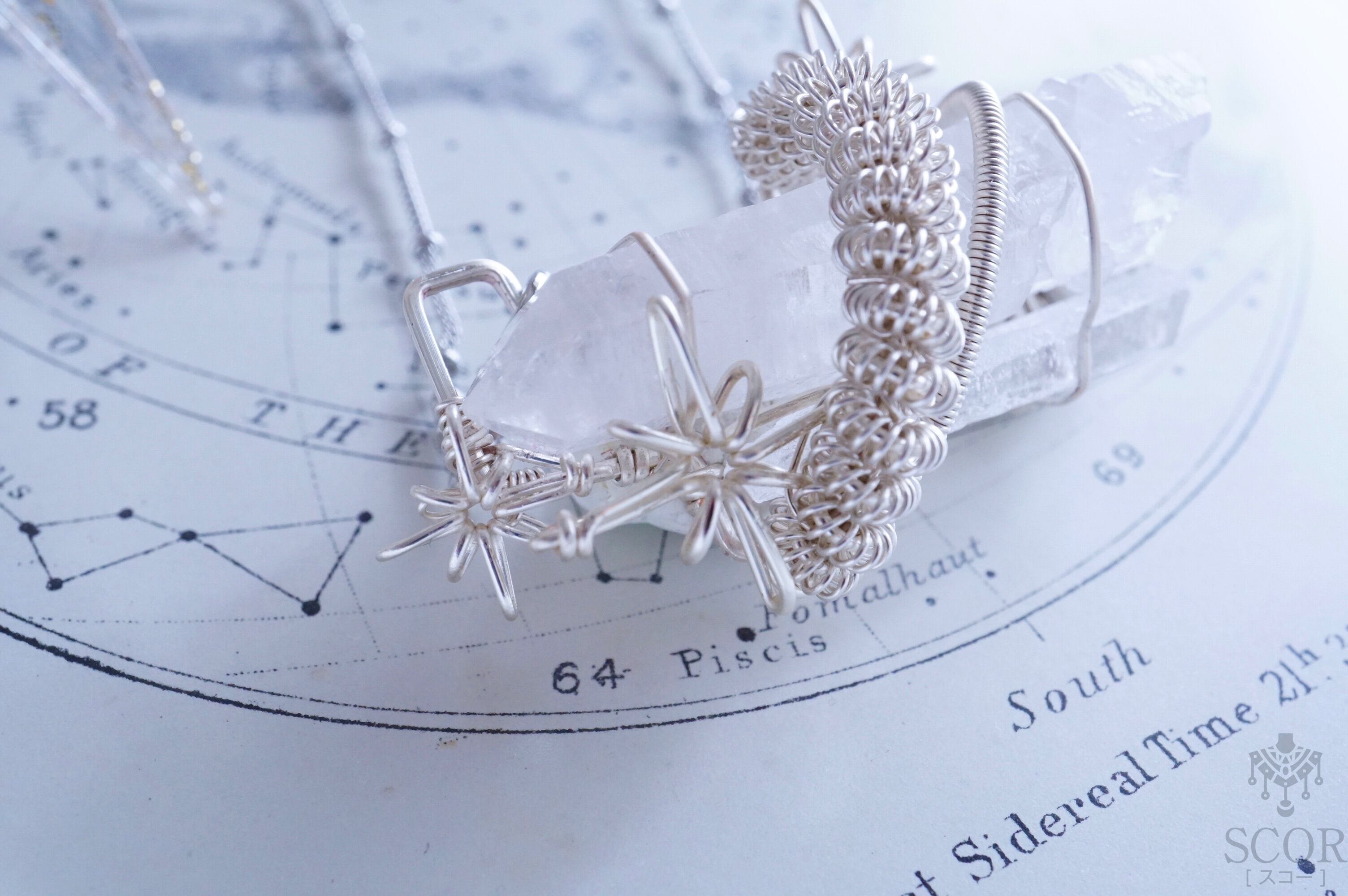 2本の結晶柱を流星の光の軌跡に見立ててデザインしました。