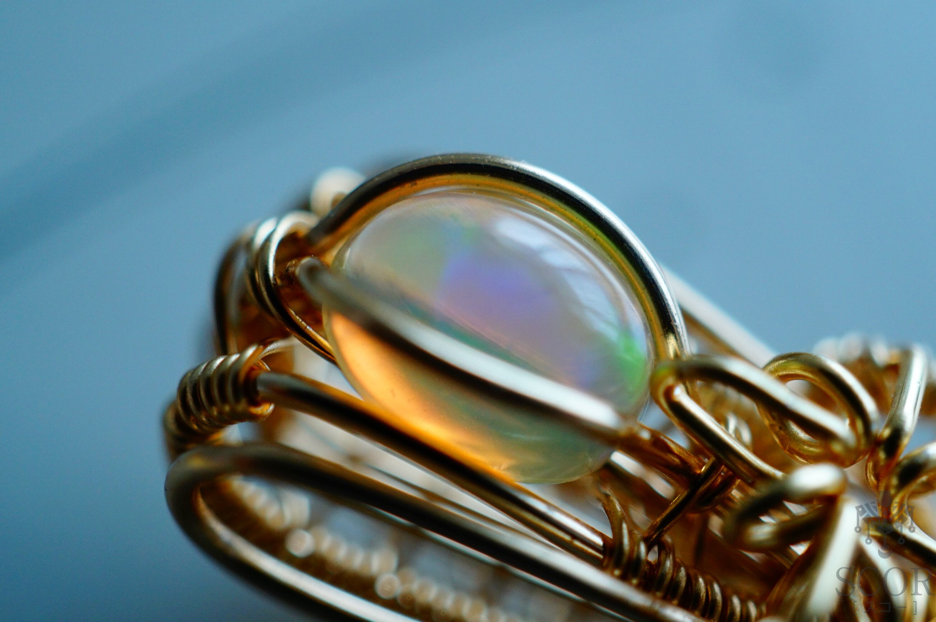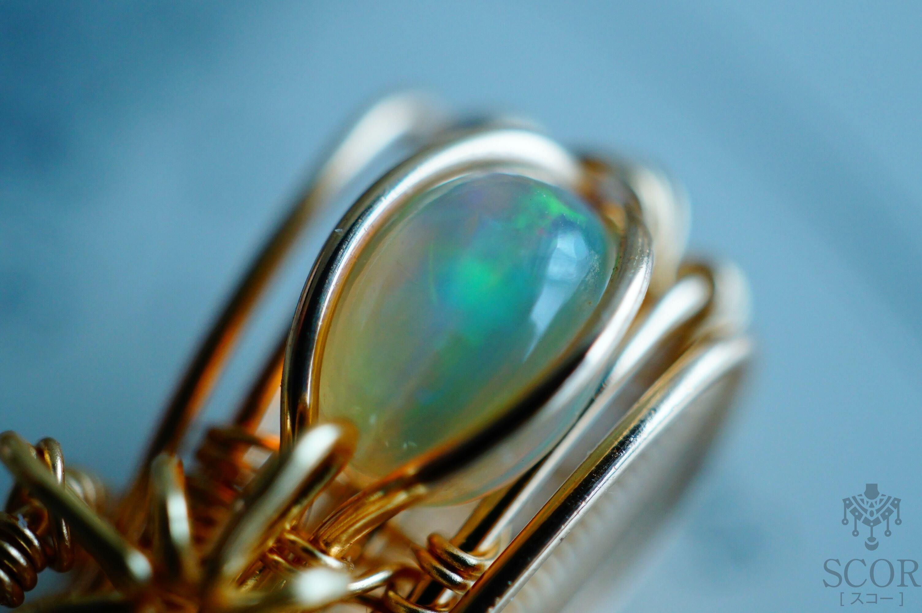 プレナイトのマスカットのような色合いに合わせて、グリーンの遊色が美しいオパールをバチカンに添えました。