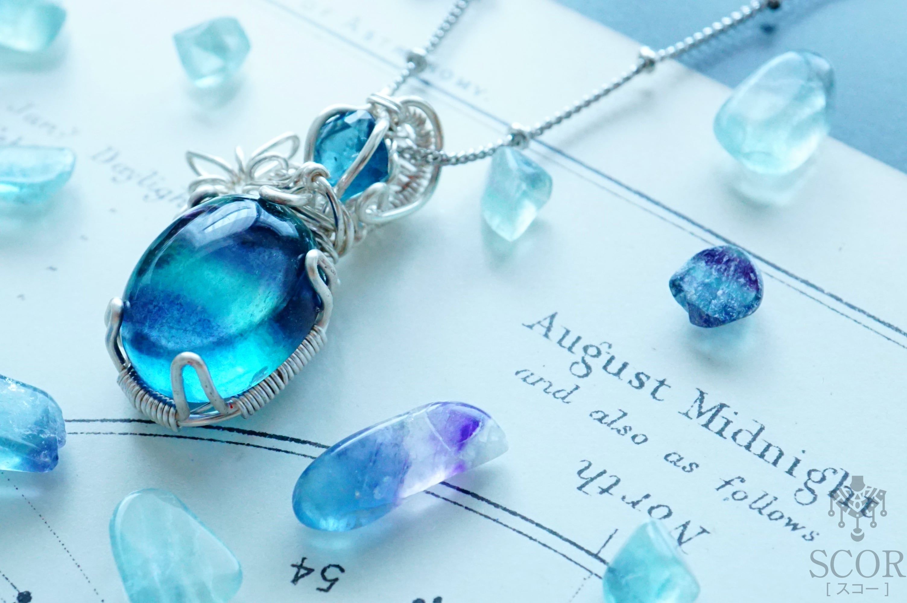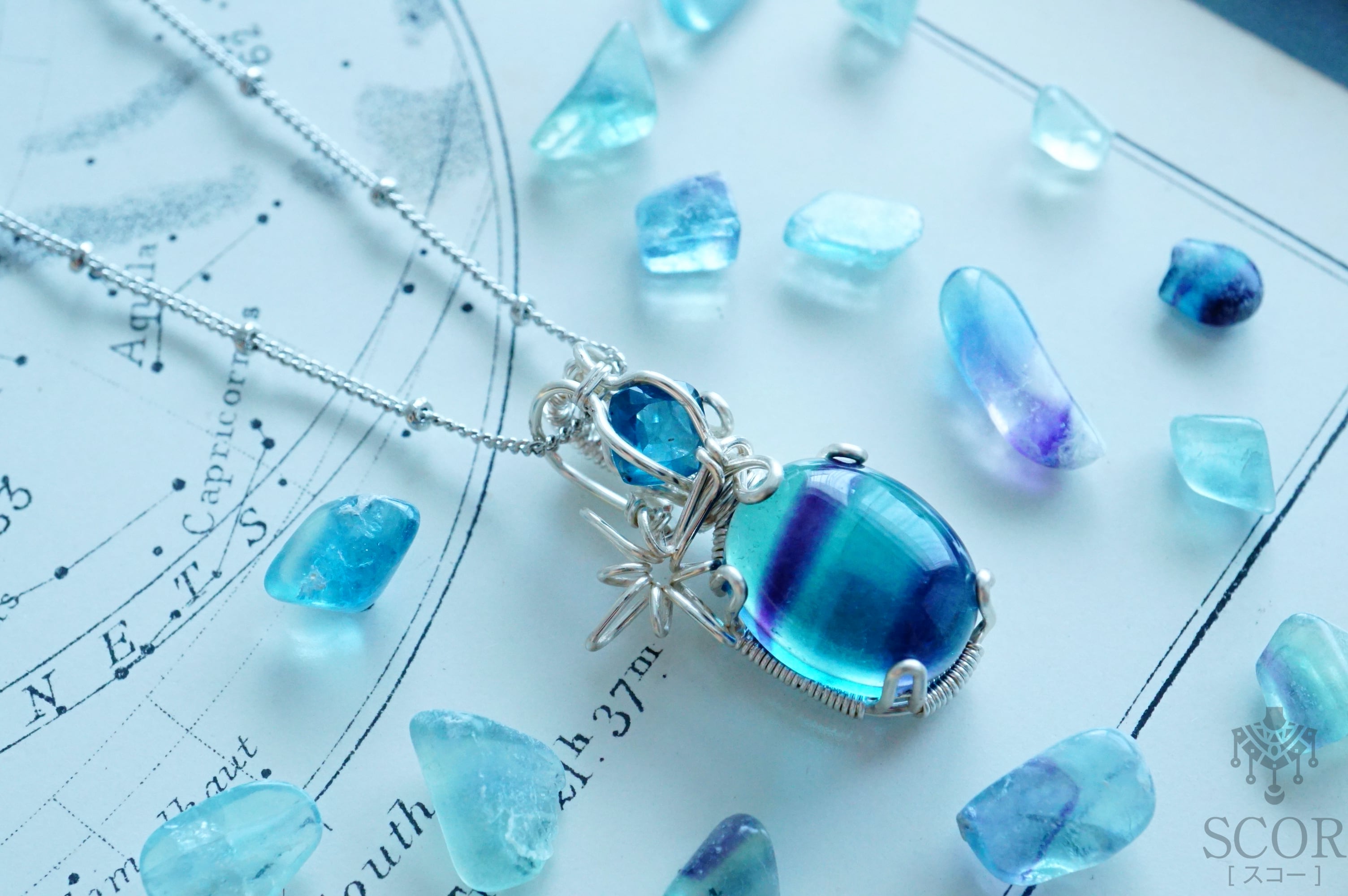 メイン石にフローライトと、装飾石にカイヤナイトを使ったペンダントトップです。