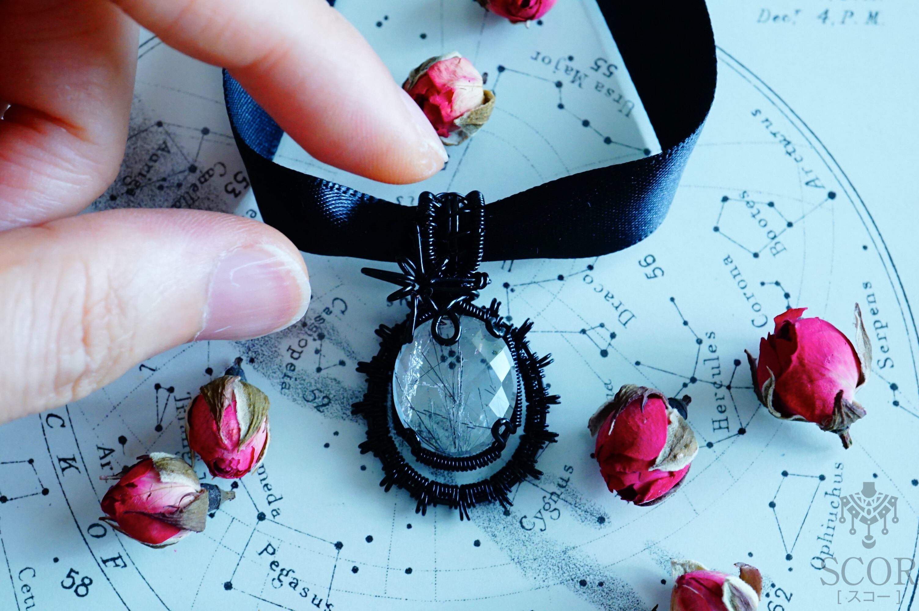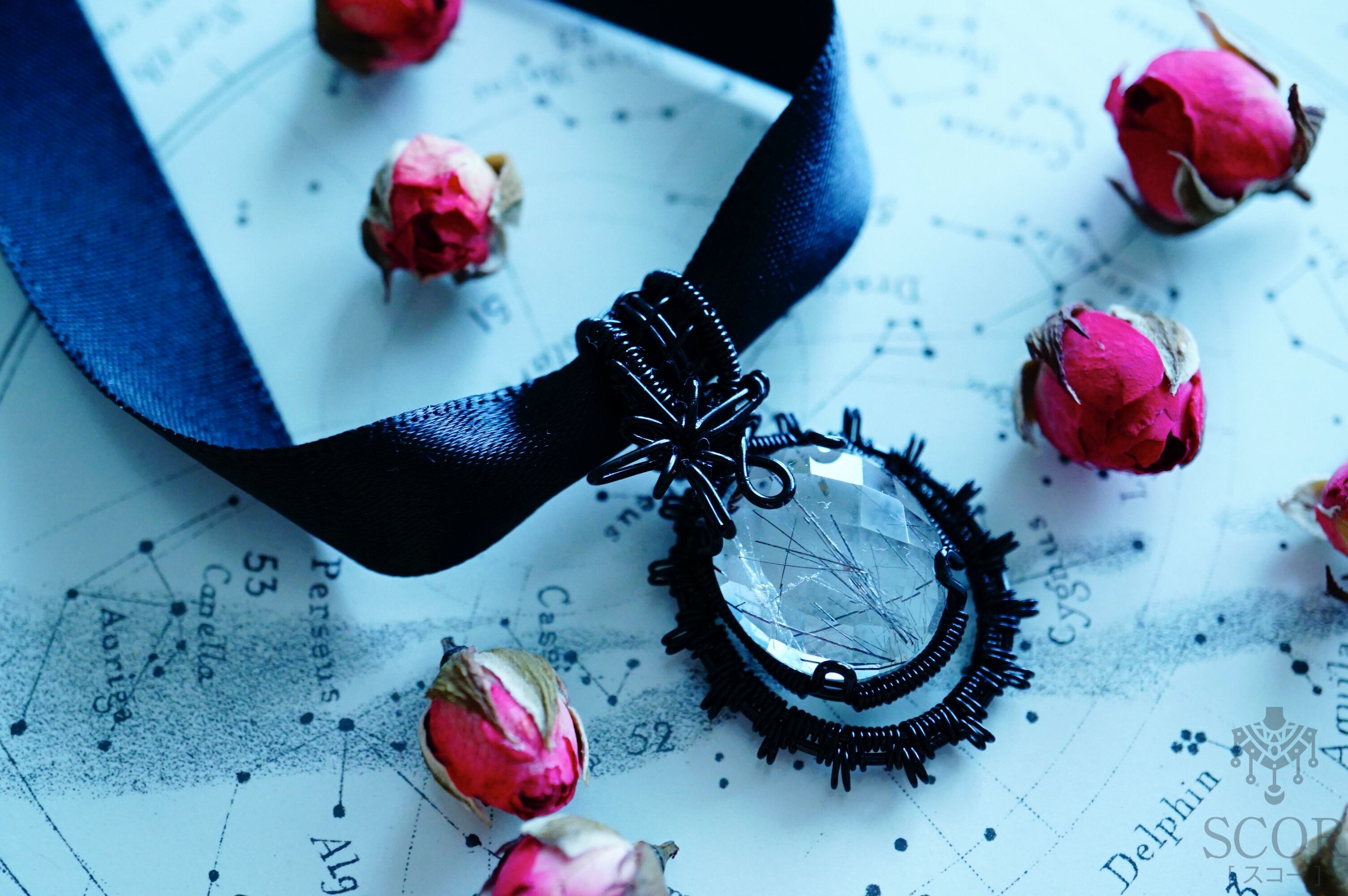 写真のように黒いリボンを通して、チョーカーのようにして付けても素敵です。