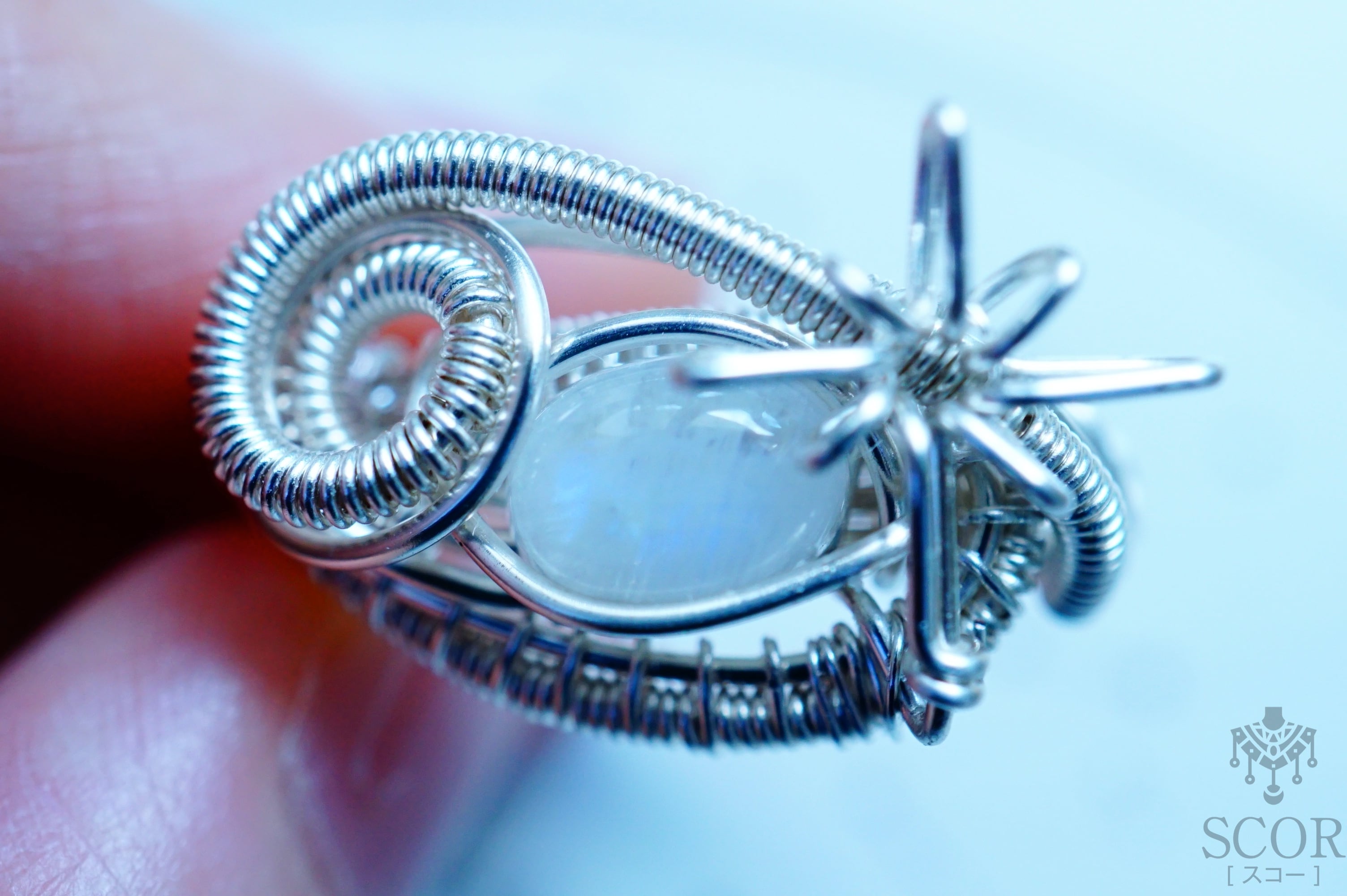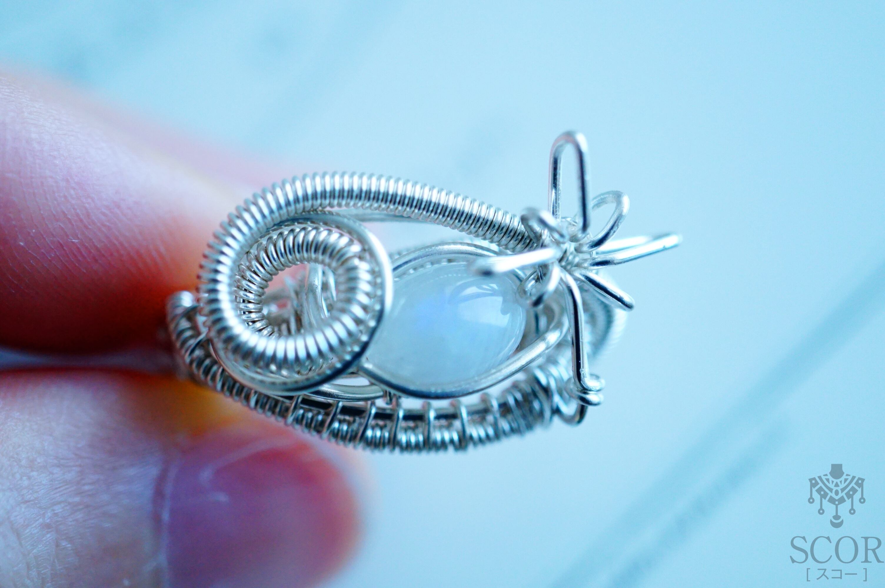 レインボームーンストーンは、青紫の光沢が見えるカボションを使用。