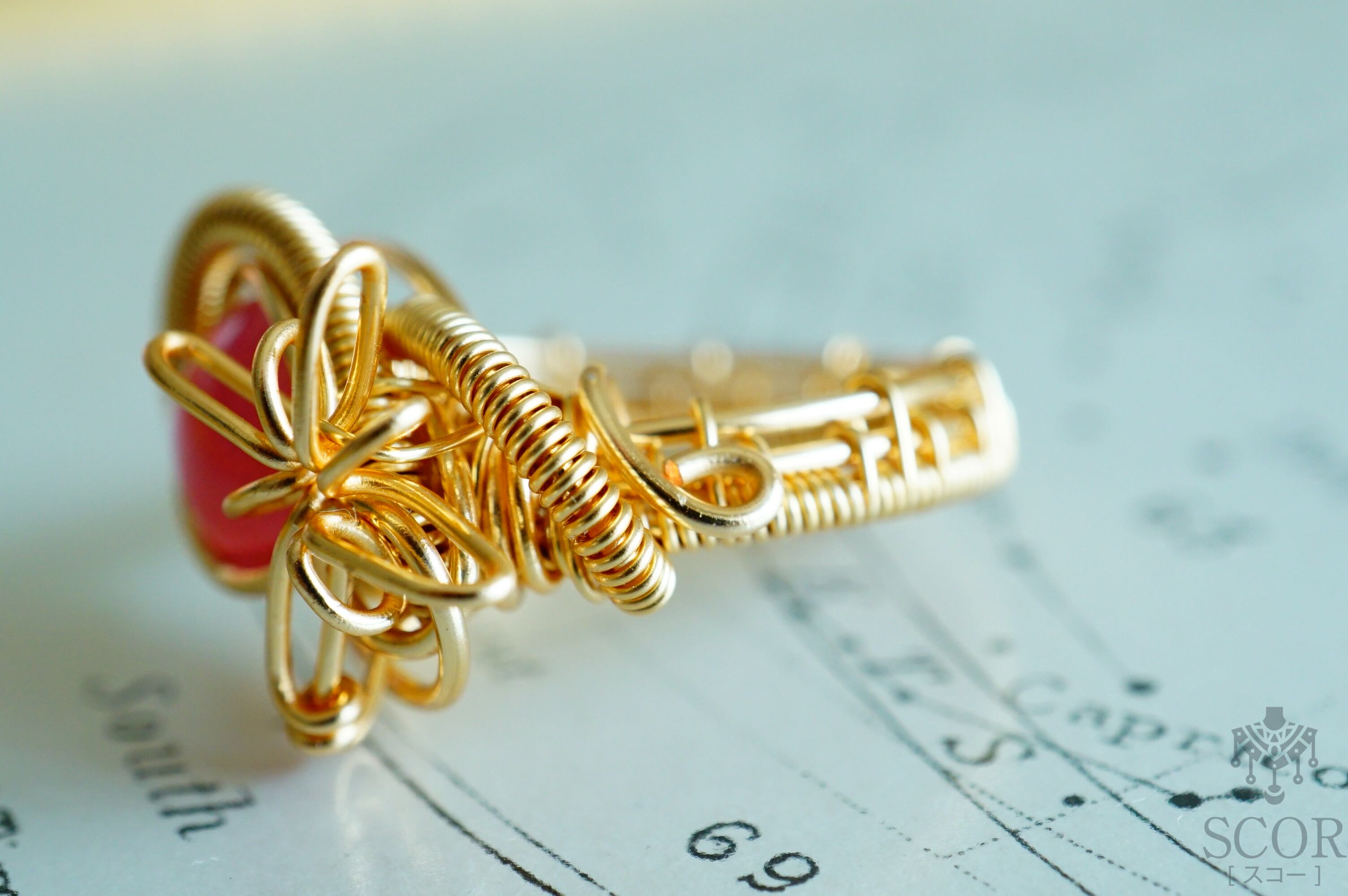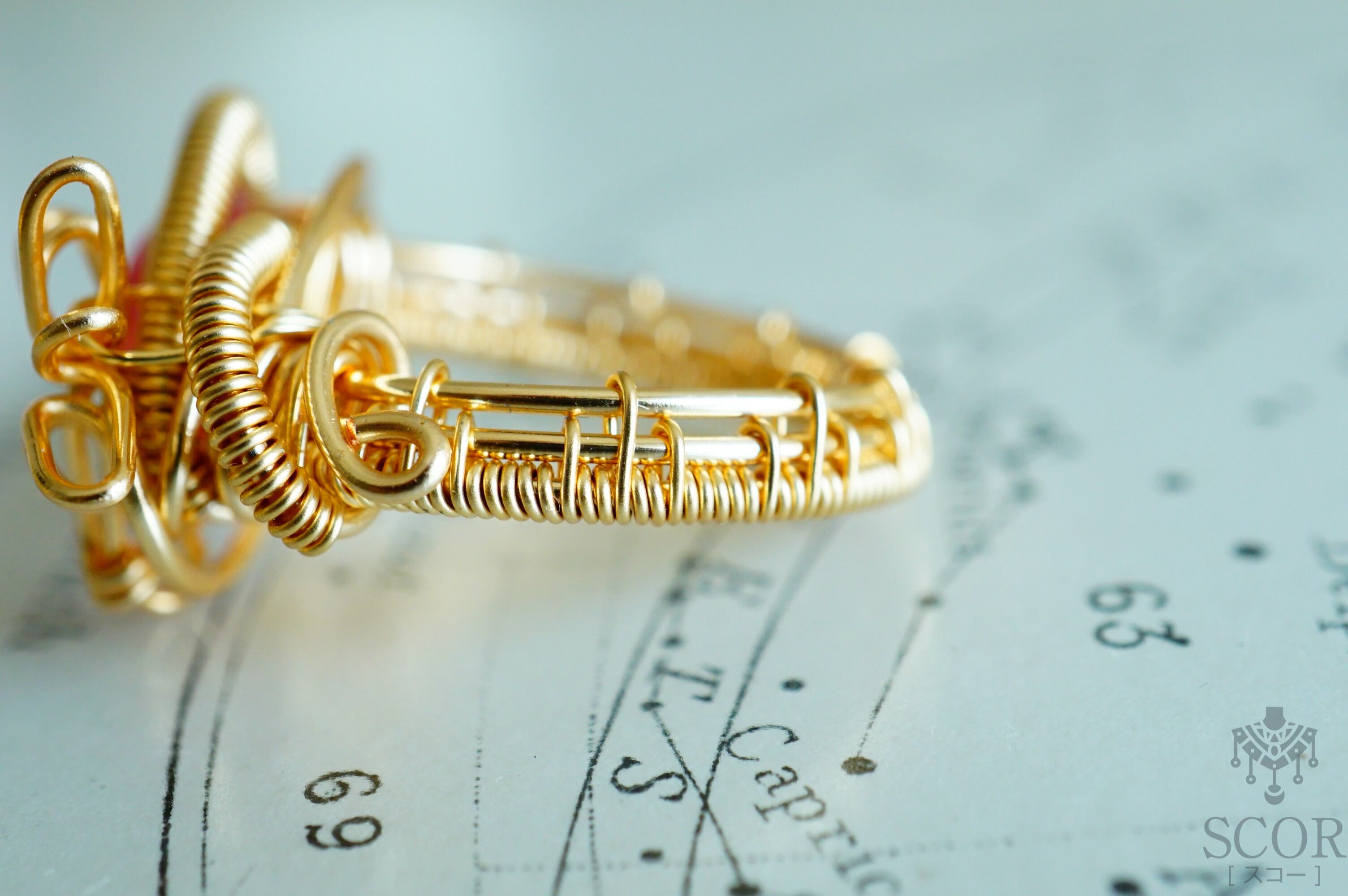 細いワイヤーで仕立てたコイルと無加工のワイヤーで、組紐のように仕立てました。