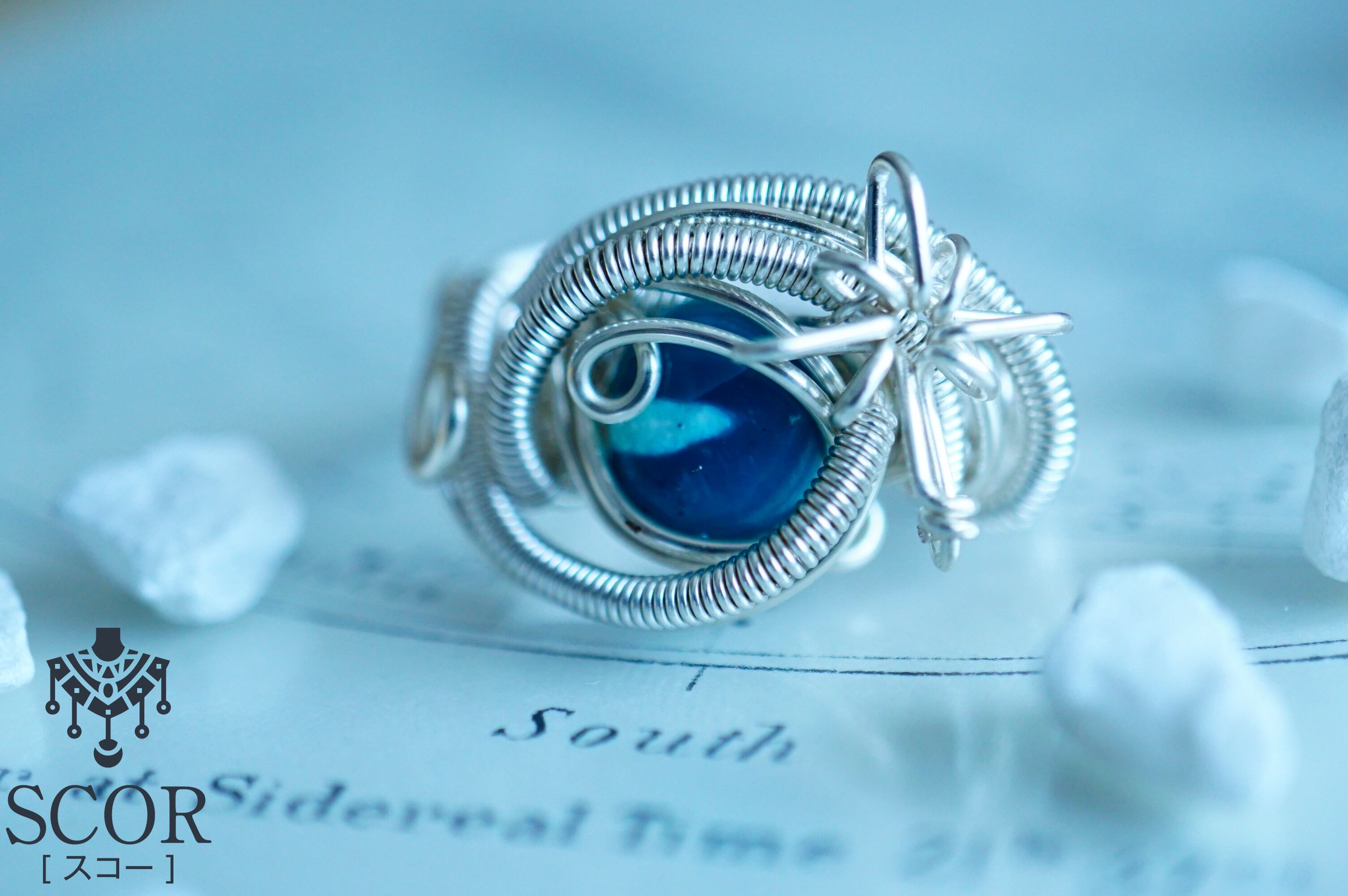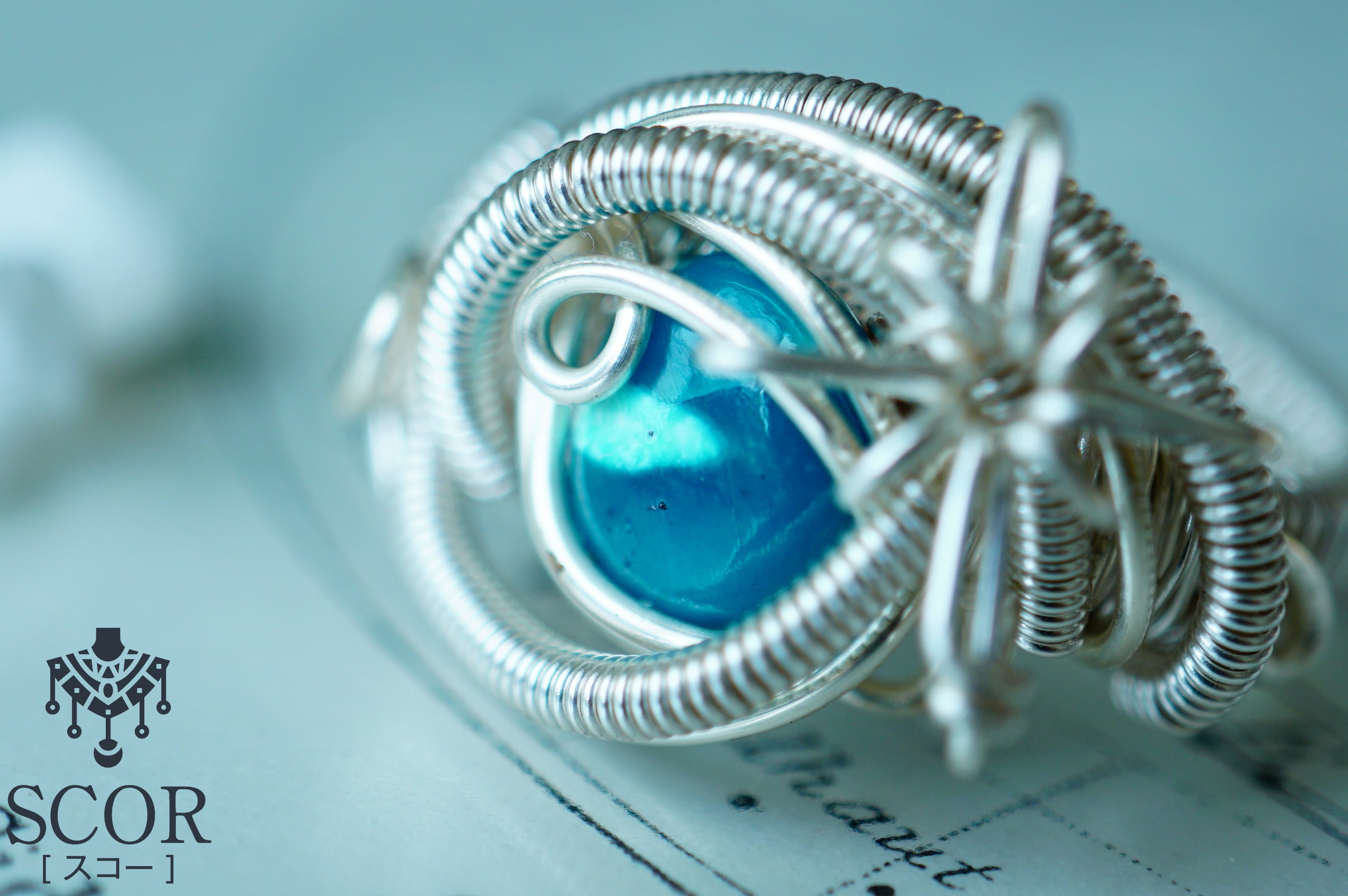 リング部分は、段差がないよう、細いワイヤーを全体に巻き締めています。
