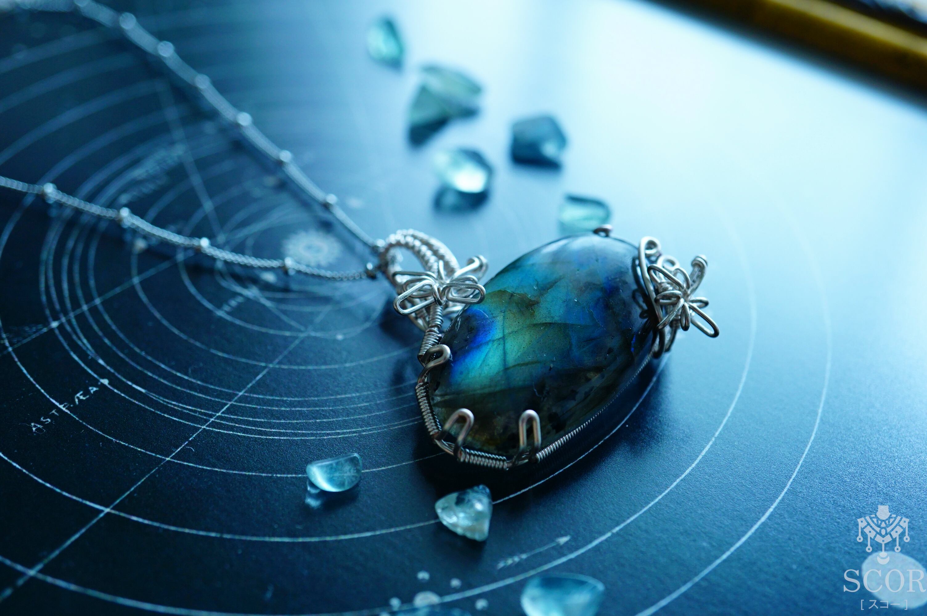 ラブラドライトは、夜空のような濃いグレーと紺がベースになったピースをチョイス。