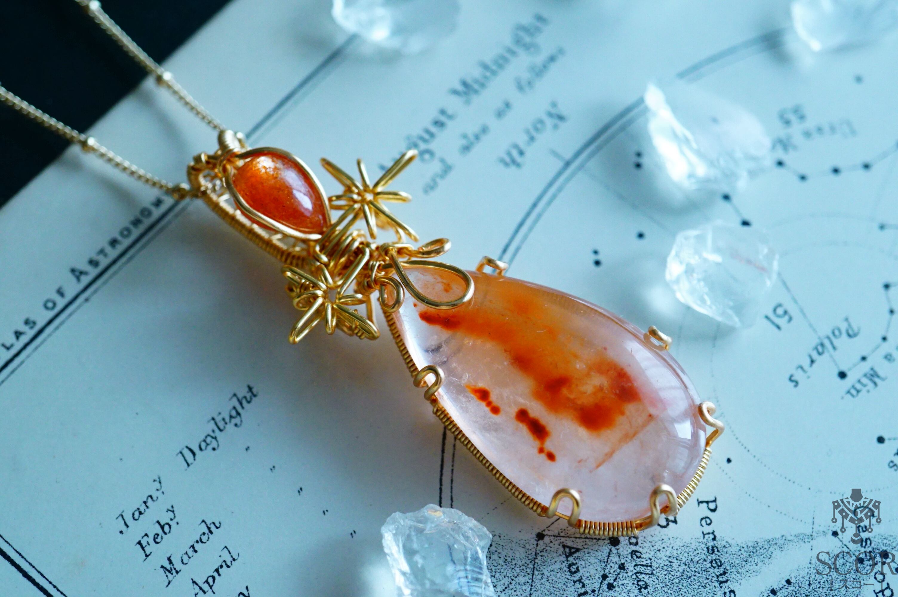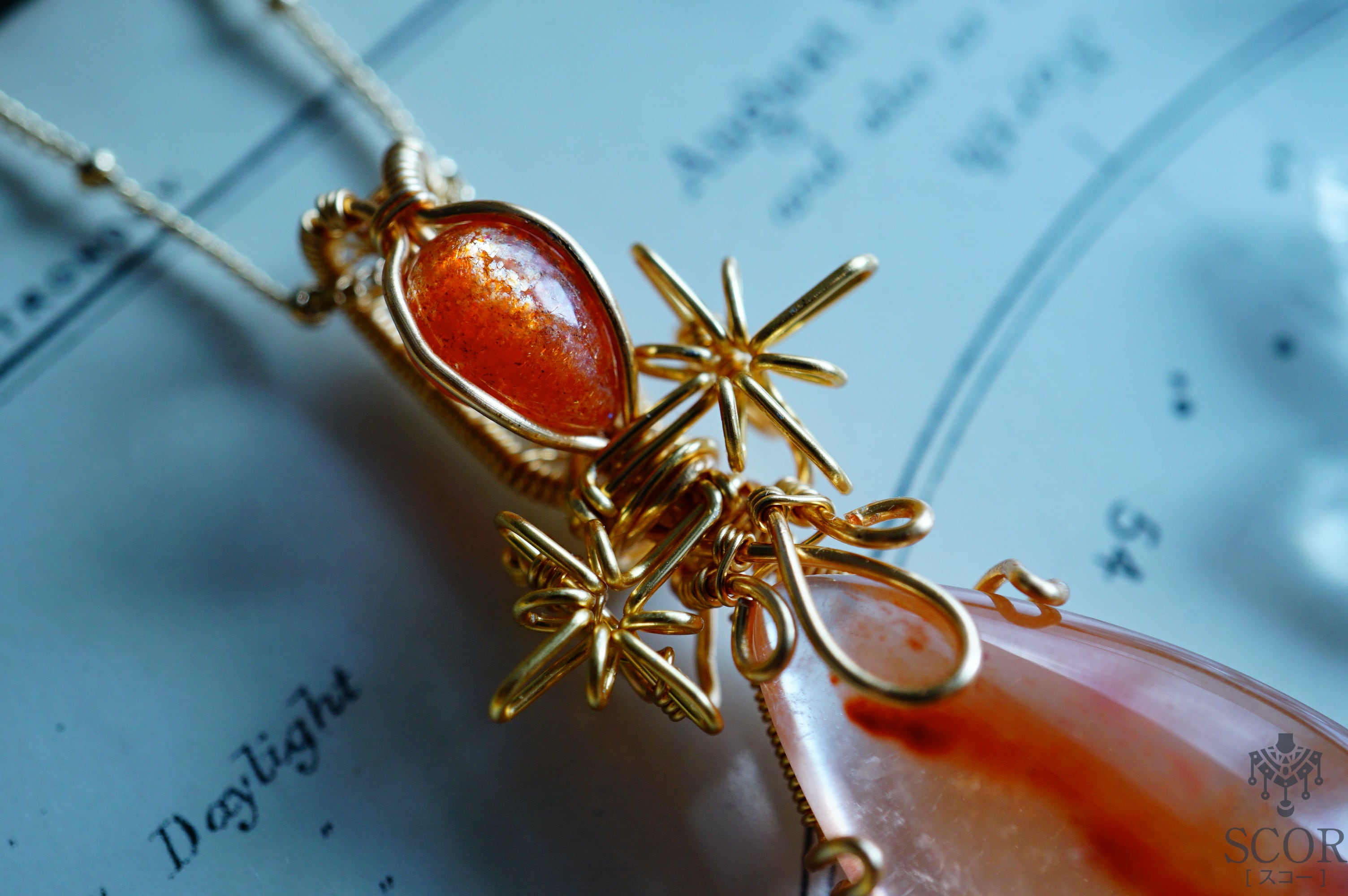 オレンジヘアクオーツとサンストーンを使ったやや大ぶりのペンダントトップです。