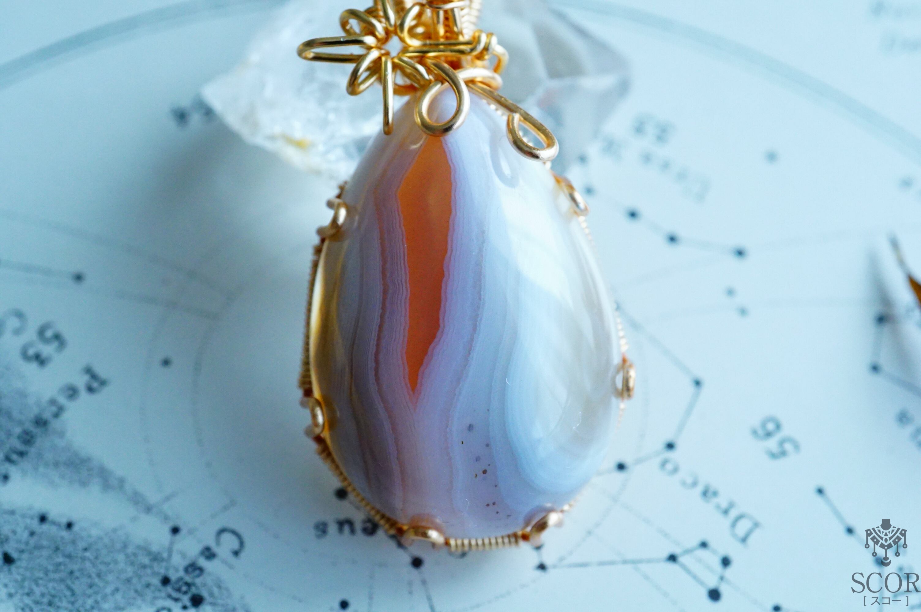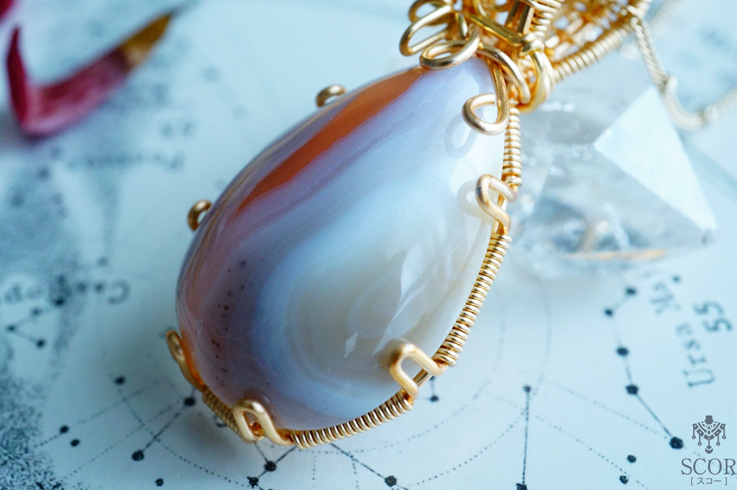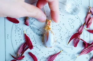 アゲート(めのう)特有の模様をデザインに生かした、鉱物好きさんにおすすめの作品です。